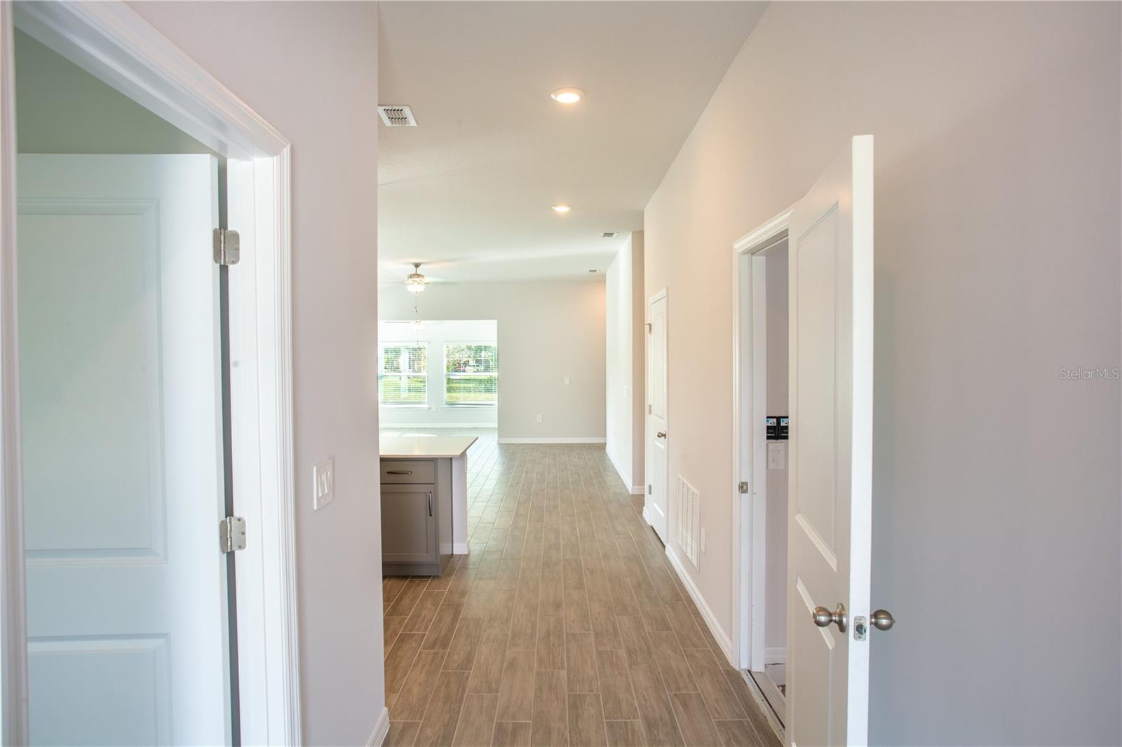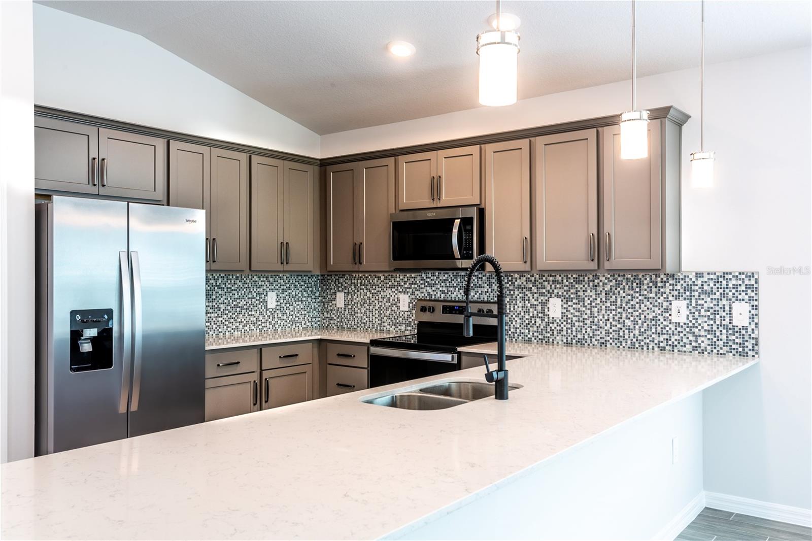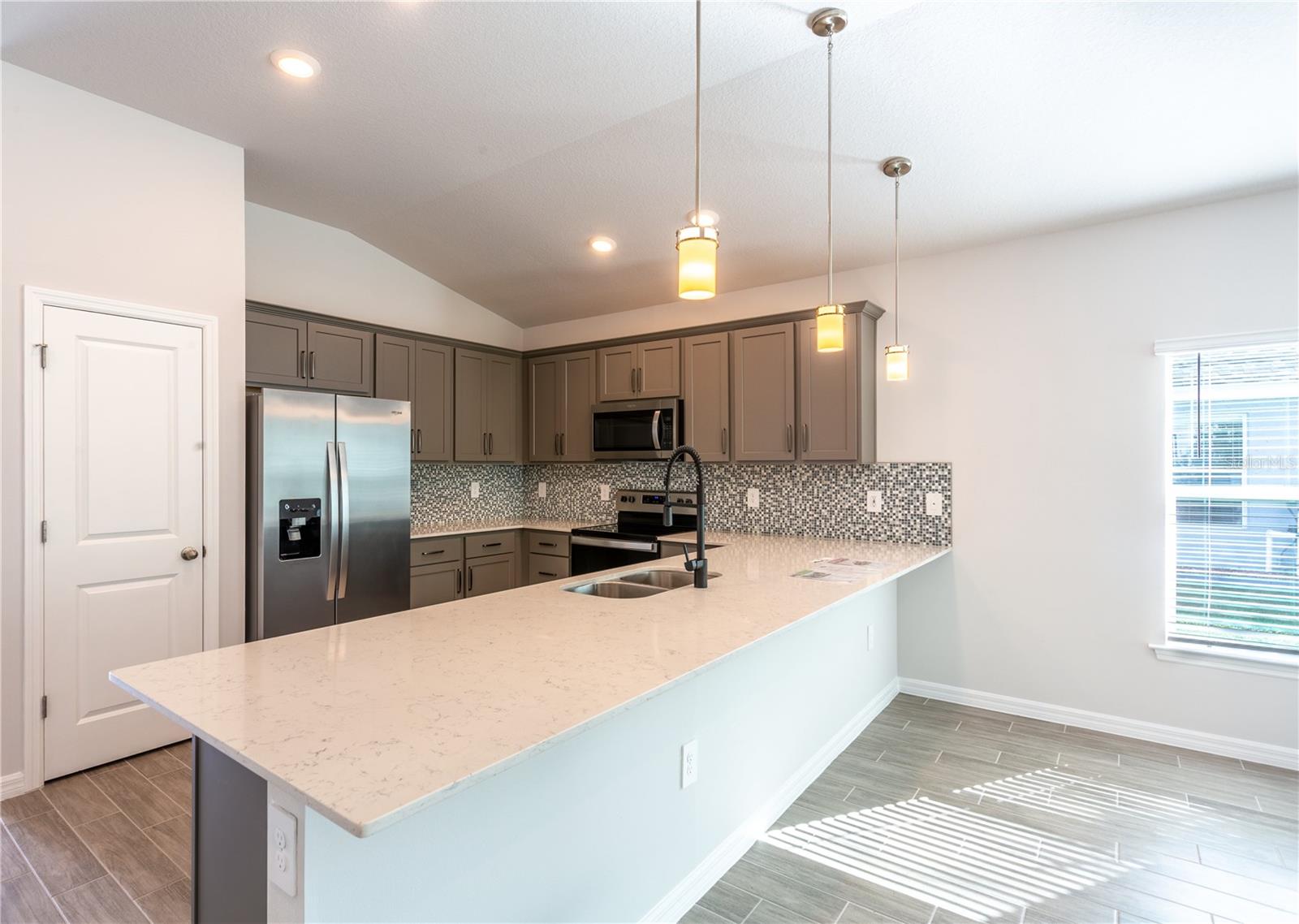 ***New construction, no wait, move in ready!* (+$15,000 FLEX CASH incentive!) Elevate your lifestyle with the opulence of the Sanibel floorplan presented by Carpenter Homes—a masterpiece within the Florida Living Series, certified by the Florida Green Building Coalition (FGBC). This one-story residence, featuring 4 bedrooms and 2 full bathrooms. This dream home is designed and built to immerse you in luxury. As you enter, a beautiful kitchen welcomes you, with an expansive, oversized island that seamlessly flows into the living and dining area, the finesse of soft-close 36" cabinets and upgraded Lyra quartz countertops. Pristine Bliss Glass & Stone 5/8x5/8 mosaic tile kitchen backsplash. An upgraded plumbing package featuring a Moen Align matte black kitchen faucet and garbage disposal. Equipped with sleek stainless steel energy efficient appliances. This home exudes sophistication with a vaulted ceiling that unveils a spacious Florida Room creating an indoor-outdoor haven. Additionally, Carpenter Homes provides an upgraded brushed nickel lighting package including pendants over the kitchen island, and vanity fixtures in both bathrooms, gorgeously accenting the overall lighting design. Ceiling fans, complete with brushed steel finish in each bedroom as well as the great room to help circulate air flow and keep you cool in the Florida weather. Complimenting the expansive living area is Glen Arbor 6x26 ceramic plank flooring. We continue our dedication to excellence to our clients with high quality blinds for the windows for privacy and to help keep the Florida sun out. The Owner's suite is a sanctuary of indulgence, showcasing dual sinks, impeccably tiled SoHo 3x6 Halo Gray walls in the shower, and a generously sized walk-in closet. The home boasts SoHo 3x6 canvas white upgraded tiled walls in in the second bath/shower, a Lyra quartz vanity, and Moen Align chrome faucets and shower/tub trim kits. The ampleness of this home continues with a utility room, and cutting-edge additions such as energy-efficient R-4.1 insulation on concrete exterior walls, Taexx tubes for pest control, and fabric hurricane shutters for every window. The meticulously landscaped yard is complemented by a state-of-the-art irrigation system with a rain sensor to help maximize efficiency. The expansive 3-car garage, complete with two garage door openers and four remotes, not only provides ample space for your everyday needs but also ensures the utmost convenience and versatility for all your storage and parking requirements. Step into a world where extravagance meets eco-conscious living—your luxurious home awaits you, a testament to timeless elegance and modern sustainability. Available to view any time!