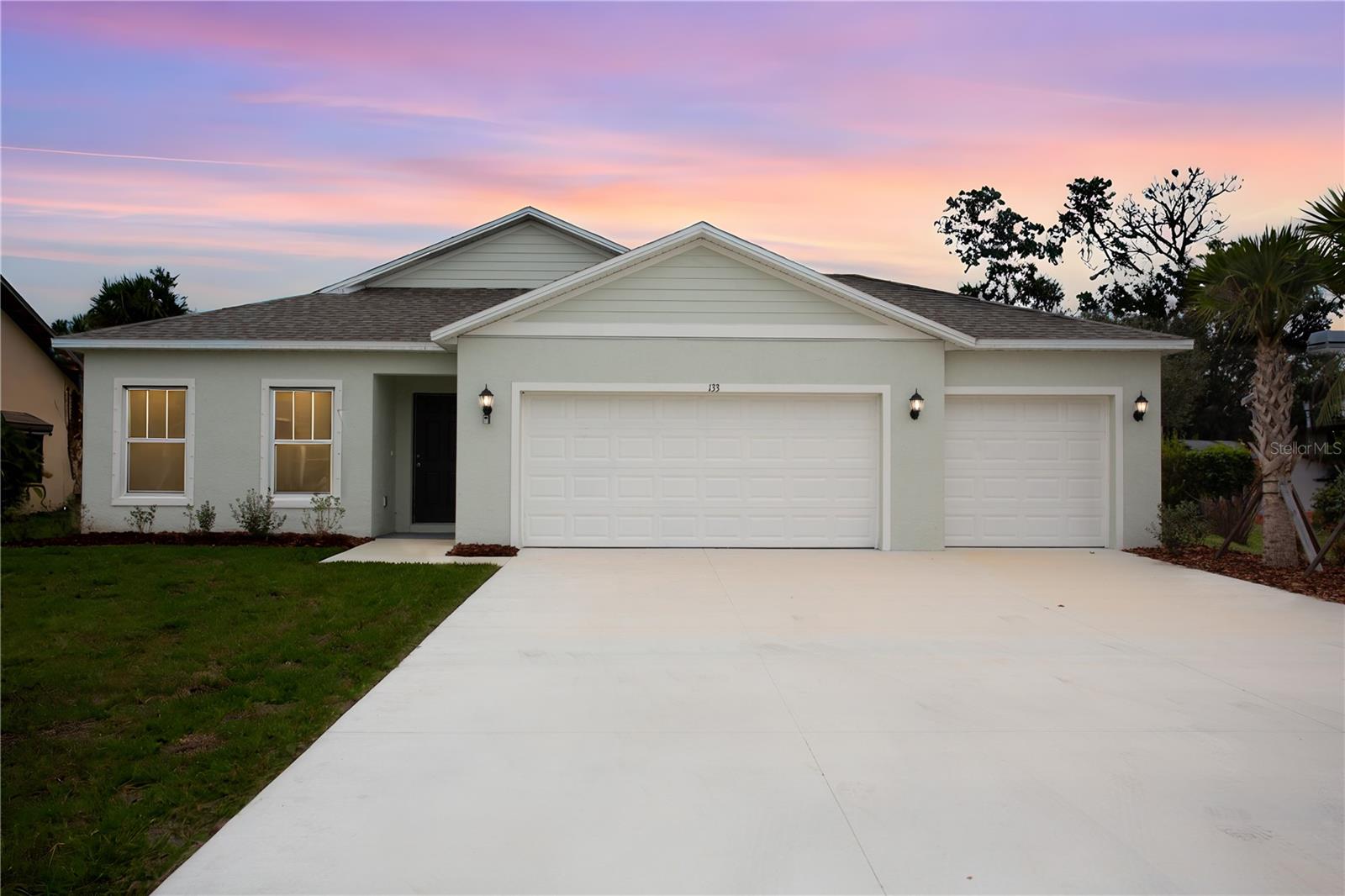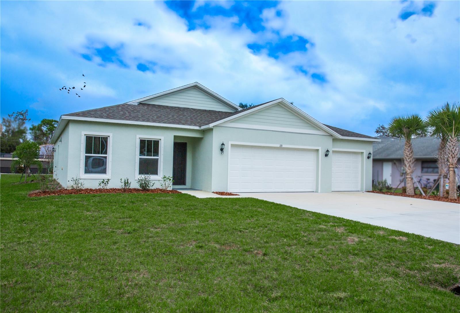 One or more photo(s) has been virtually staged. ***NEW CONSTRUCTION, NO WAIT, MOVE IN READY!*** (+$15,000 FLEX CASH incentive!) Elevate your lifestyle with the opulence of the Sanibel II floorplan presented by Carpenter Homes—a masterpiece within the Florida Living Series, certified by the Florida Green Building Coalition (FGBC). This home features 4 bedrooms and 2 full bathrooms. This dream home is designed and built to immerse you in luxury! As you enter, a beautiful kitchen welcomes you, with an expansive, oversized bar that seamlessly flows into the living and dining area. The finesse of soft-close, Painted Slate 36" cabinets, SoHo Canvas White 4x16 subway tile backsplash, and upgraded Miami White quartz countertops add a functional touch of luxury to the kitchen. Kitchen upgrades include a Moen Align matte black kitchen faucet, garbage disposal, and sleek stainless steel energy efficient appliances. This home exudes sophistication with a vaulted ceiling that unveils a spacious Florida Room, creating an indoor-outdoor haven. Additionally, Carpenter Homes provides an upgraded matte black lighting package including pendants over the kitchen bar, and vanity fixtures in both bathrooms, accenting the overall lighting design. Matte black finish ceiling fans in each bedroom, as well as the great room, helps to circulate air flow and keep you cool in the Florida weather. Complimenting the expansive living area is Magnisi Silver 18x18 ceramic tile flooring. The Owner's suite is a sanctuary of indulgence, showcasing dual sinks, impeccably tiled Magnisi Silver 8x12 walls in the shower, and a generously sized walk-in closet. The home boasts Magnisi Silver 8x12 upgraded tiled walls in in the second bath/shower, a Miami White quartz vanity top, and Moen Align matte black faucets and shower/tub trim kits. The ampleness of this home continues with a utility room, and additions such as energy-efficient R-4.1 insulation on concrete exterior walls, Taexx tubes for pest control, and fabric hurricane shutters for every window. The Florida friendly landscaped yard is complemented by an irrigation system with a rain sensor to help maximize efficiency. The expansive 3-car garage, complete with 2 garage door openers and four remotes, not only provides ample space for your everyday needs but also ensures the utmost convenience and versatility for all your storage and parking requirements. Step into a world where extravagance meets eco-conscious living—your forever home awaits, a testament to timeless elegance and modern sustainability. Available to view any time!