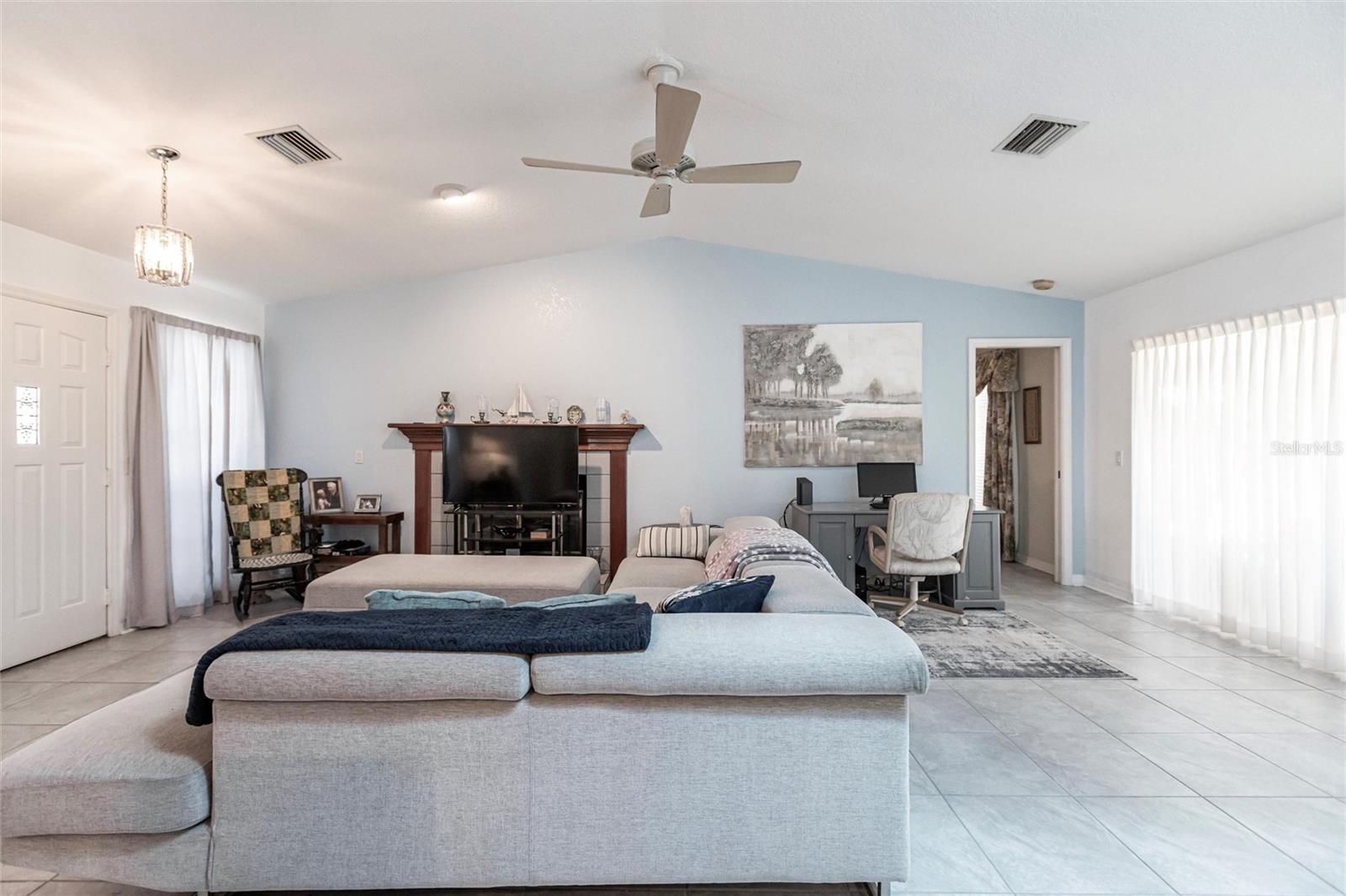 Indulge in the ultimate blend of elegance and comfort with this stunning 3-bedroom + DEN, 2-bathroom residence, featuring a spacious family room, all serviced by city water and sewer—no flood zone worries here! This exquisite Fero home boasts top-notch craftsmanship and a thoughtfully designed split floorplan. Property Highlights: Gourmet Kitchen: A chef's delight with premium appliances and ample counter space. Expansive Living Room: Enjoy seamless indoor-outdoor living with stackable sliding doors in the living room, master bedroom, and DEN. Luxurious Master Suite: Relax in your master bedroom, complete with two generous walk-in closets. Oversized 2-Car Garage: Perfect for a small workshop or extra storage, with plenty of room to spare. Serene Outdoor Space: An impressive, beautifully landscaped yard backing up to a buffer zone ensures privacy and tranquility—no future construction in sight. Recent Upgrades: New Roof (2023) Water Heater (2019) Refrigerator (2016) Stove (2018) Microwave (2023) Nestled in one of Punta Gorda’s most sought-after locations, this home is close to all amenities, making it perfect for a luxurious lifestyle. Call now to secure this dreamy home before it’s gone!