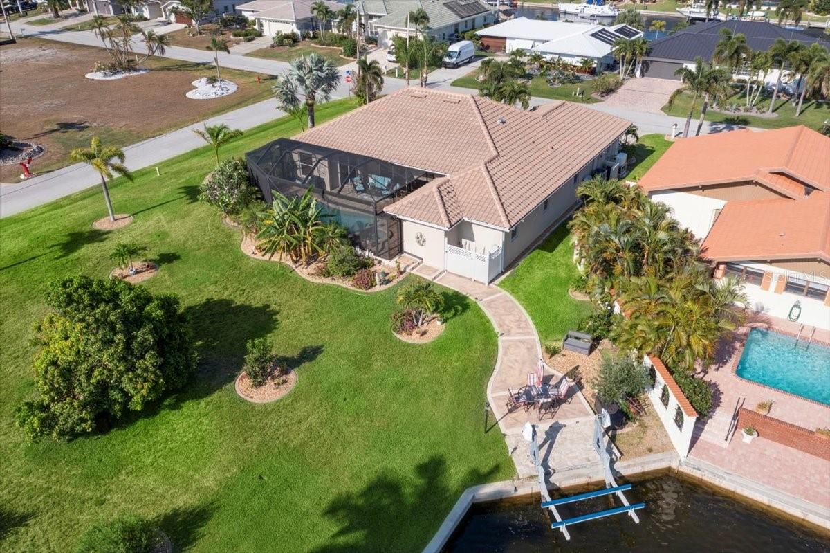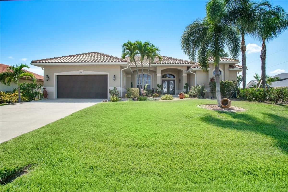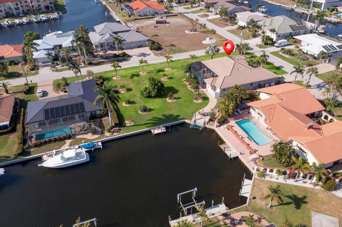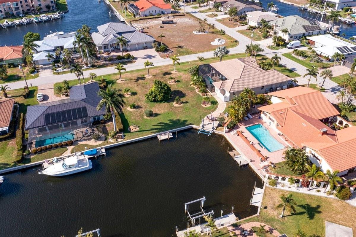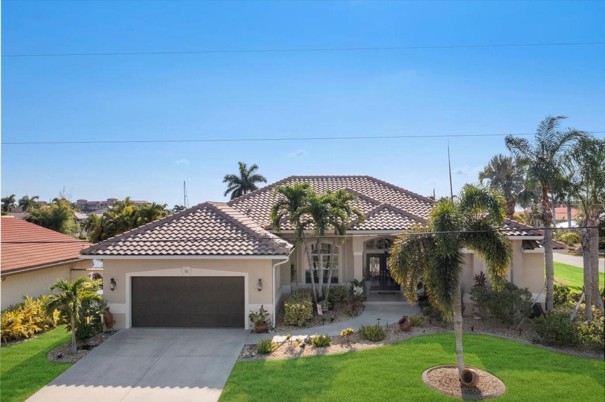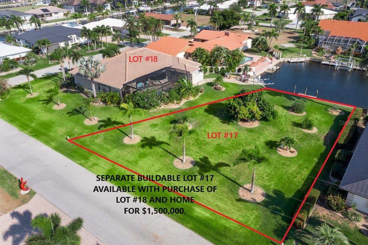 THiS LISTING IS FOR LOT #18 AND THE HOUSE. THE OWNER IS WILLING TO SELL THE ADJOINING BUILDABLE LOT #17 TOGETHER FOR $1,500,000. The parcels will be separated prior to sale if not purchasing both together. Discover the allure of 33 Hibiscus Dr, a luxurious waterfront retreat nestled in the serene beauty of Punta Gorda Isles, FL 33950. This captivating estate spans over 2600 sq ft and boasts 3 bedrooms, 3 bathrooms, and a 2-car garage. Enjoy unparalleled access to the open waters of Charlotte Harbor and the Gulf of Mexico, just 5 lots away, with quick sailboat access. Boating enthusiasts will appreciate the convenience of a 10,000 lb boat lift, complete with a dock and city-maintained concrete seawall. Step into luxury as you're greeted by lush curb appeal, featuring tropical landscaping and a large covered, tiled front entryway with rich double leaded glass doors. Inside, soaring high ceilings, crown molding, and arched entryways create an atmosphere of elegance. The main living areas showcase large tiled flooring throughout, with picturesque aquarium glass in the breakfast nook, rounded corners, and an abundance of natural light. The heart of the home is the gourmet kitchen, equipped with granite counters, stainless appliances, a closet pantry, large breakfast bar, and recessed lighting. Entertain effortlessly in the formal living room, family room, formal dining room, and dinette. Pocket sliders in the master bedroom, living room, and Florida room seamlessly blend indoor and outdoor living, leading to the heated pebble-tech pool with spa and stylish brick paver deck. The pool area features an ambient waterfall feature and ample covered space for entertaining. Furnishings are optional with an acceptable offer. Recent upgrades add to the allure of this exquisite residence, including a NEW barrel tile ROOF(2023), a NEW 5-ton HVAC system with WiFi thermostat (2022), NEW pool patio lanai with panoramic screens, and a sealed paver pool patio (2023). Stay prepared with a whole-house 24 KW Generac on-demand generator, fueled by a 500-gallon underground propane tank, installed in 2022. Additional features include electric storm shutters, a NEW garage door opener motor (2023), and whole-house surge protection (2022). Experience the epitome of Florida waterfront living at 33 Hibiscus Dr. Situated in a prime location, just minutes from Fisherman's Village and downtown Punta Gorda, with easy access to Ponce de Leon Park and miles of bike paths along Charlotte Harbor. Don't miss out on this rare opportunity to own a slice of paradise with all the bells and whistles! Schedule your showing today.