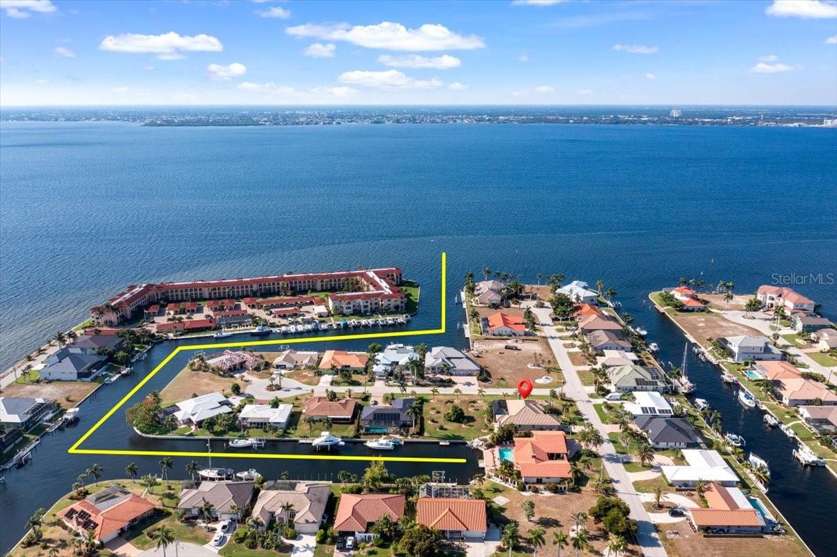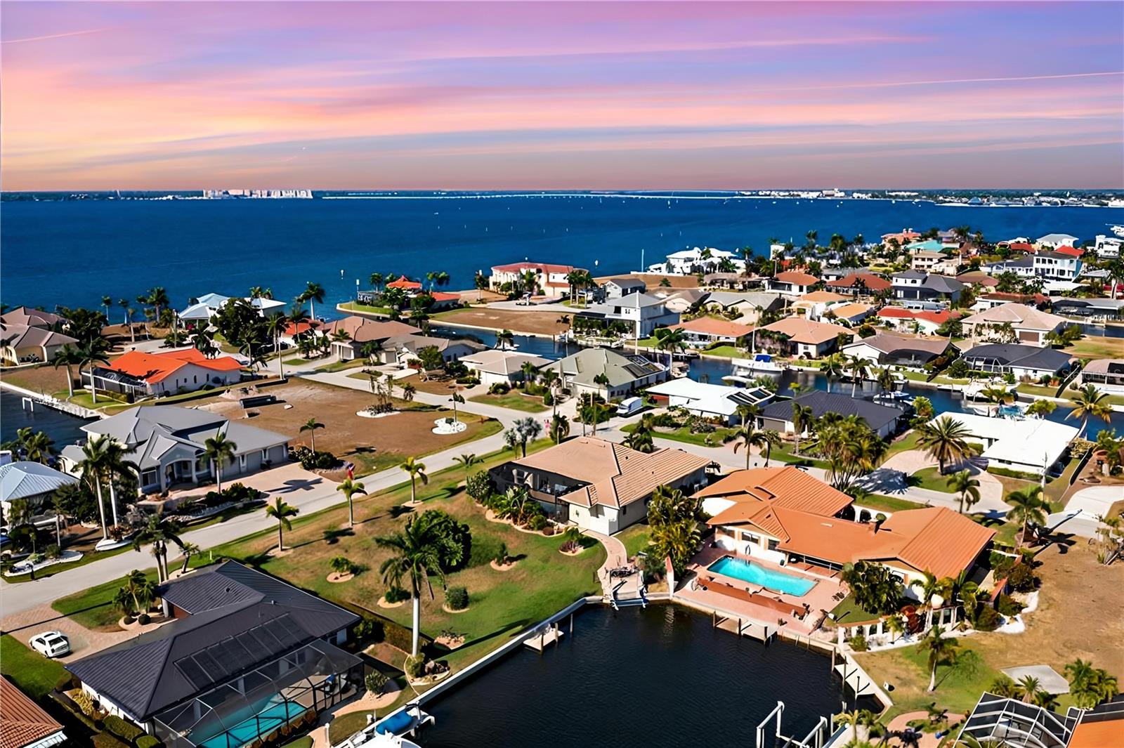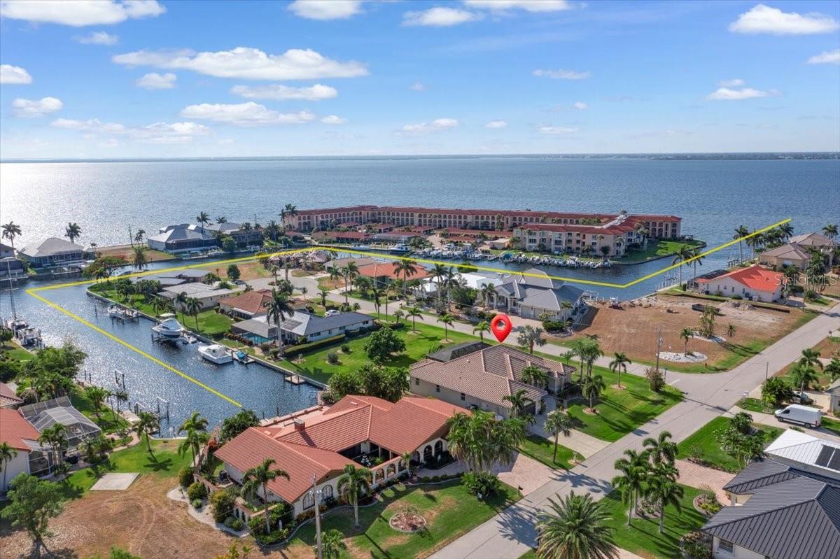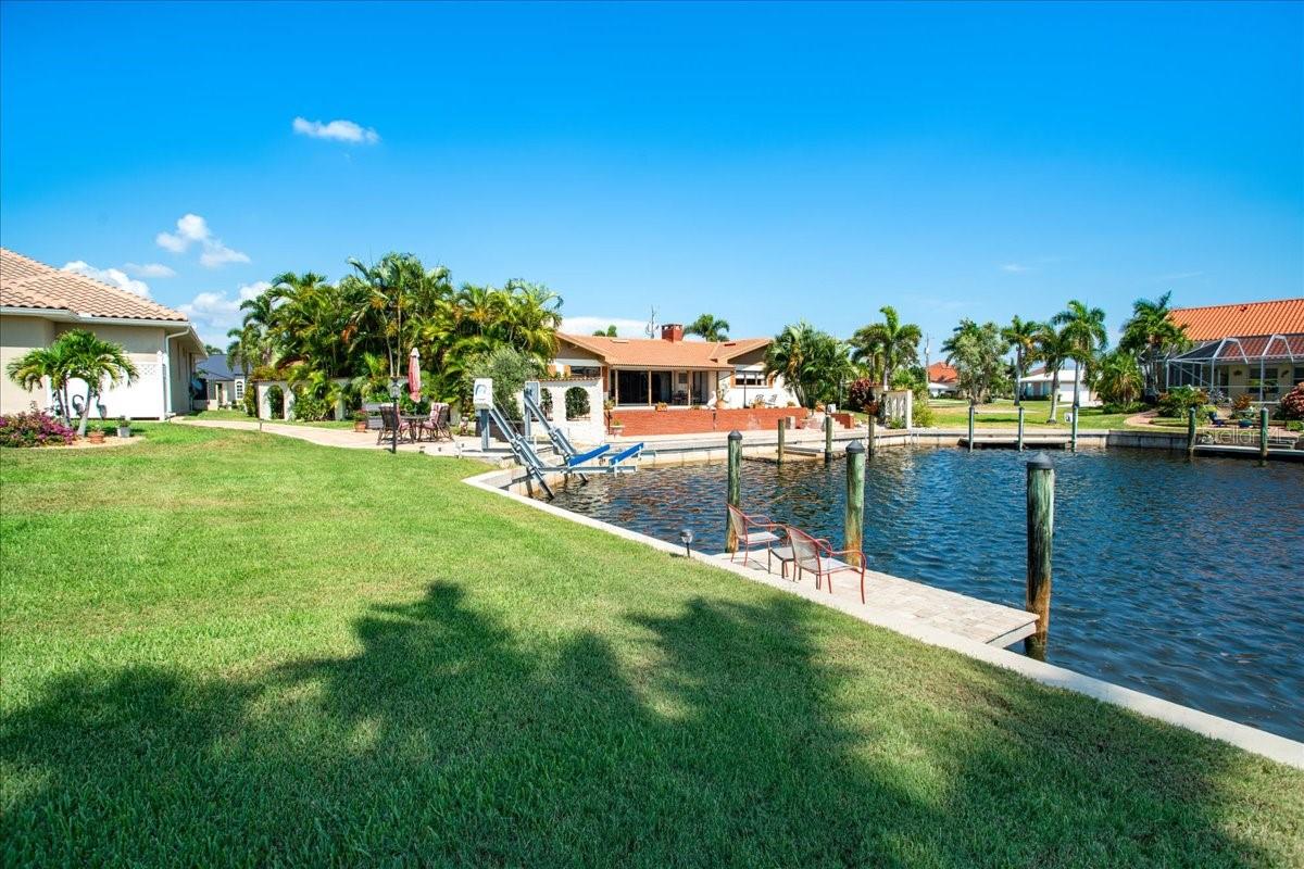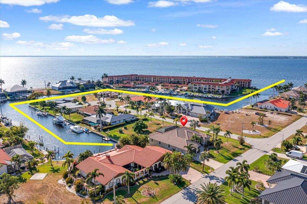THiS LISTING IS FOR LOT #18 AND THE HOUSE. THE OWNER IS WILLING TO SELL THE ADJOINING BUILDABLE LOT #17 TOGETHER FOR $1,500,000. The parcels will be separated prior to sale if not purchasing both together. Discover the allure of 33 Hibiscus Dr, a luxurious waterfront retreat nestled in the serene beauty of Punta Gorda Isles, FL 33950. This captivating estate spans over 2600 sq ft and boasts 3 bedrooms, 3 bathrooms, and a 2-car garage. Enjoy unparalleled access to the open waters of Charlotte Harbor and the Gulf of Mexico, just 5 lots away, with quick sailboat access. Boating enthusiasts will appreciate the convenience of a 10,000 lb boat lift, complete with a dock and city-maintained concrete seawall. Step into luxury as you're greeted by lush curb appeal, featuring tropical landscaping and a large covered, tiled front entryway with rich double leaded glass doors. Inside, soaring high ceilings, crown molding, and arched entryways create an atmosphere of elegance. The main living areas showcase large tiled flooring throughout, with picturesque aquarium glass in the breakfast nook, rounded corners, and an abundance of natural light. The heart of the home is the gourmet kitchen, equipped with granite counters, stainless appliances, a closet pantry, large breakfast bar, and recessed lighting. Entertain effortlessly in the formal living room, family room, formal dining room, and dinette. Pocket sliders in the master bedroom, living room, and Florida room seamlessly blend indoor and outdoor living, leading to the heated pebble-tech pool with spa and stylish brick paver deck. The pool area features an ambient waterfall feature and ample covered space for entertaining. Furnishings are optional with an acceptable offer. Recent upgrades add to the allure of this exquisite residence, including a NEW barrel tile ROOF(2023), a NEW 5-ton HVAC system with WiFi thermostat (2022), NEW pool patio lanai with panoramic screens, and a sealed paver pool patio (2023). Stay prepared with a whole-house 24 KW Generac on-demand generator, fueled by a 500-gallon underground propane tank, installed in 2022. Additional features include electric storm shutters, a NEW garage door opener motor (2023), and whole-house surge protection (2022). Experience the epitome of Florida waterfront living at 33 Hibiscus Dr. Situated in a prime location, just minutes from Fisherman's Village and downtown Punta Gorda, with easy access to Ponce de Leon Park and miles of bike paths along Charlotte Harbor. Don't miss out on this rare opportunity to own a slice of paradise with all the bells and whistles! Schedule your showing today.