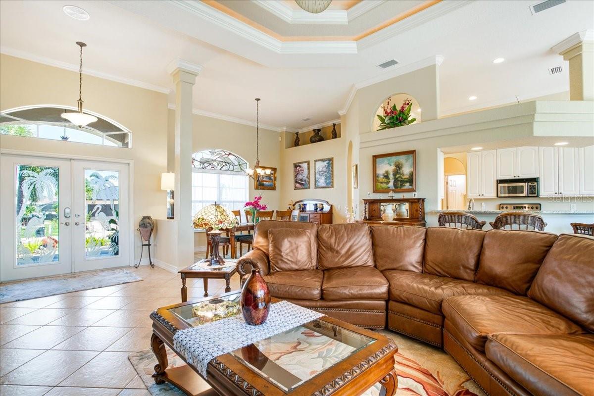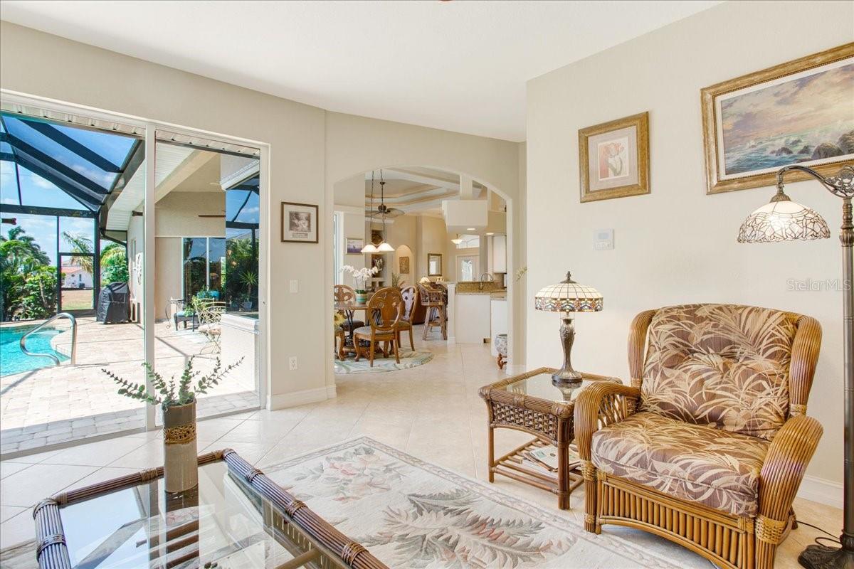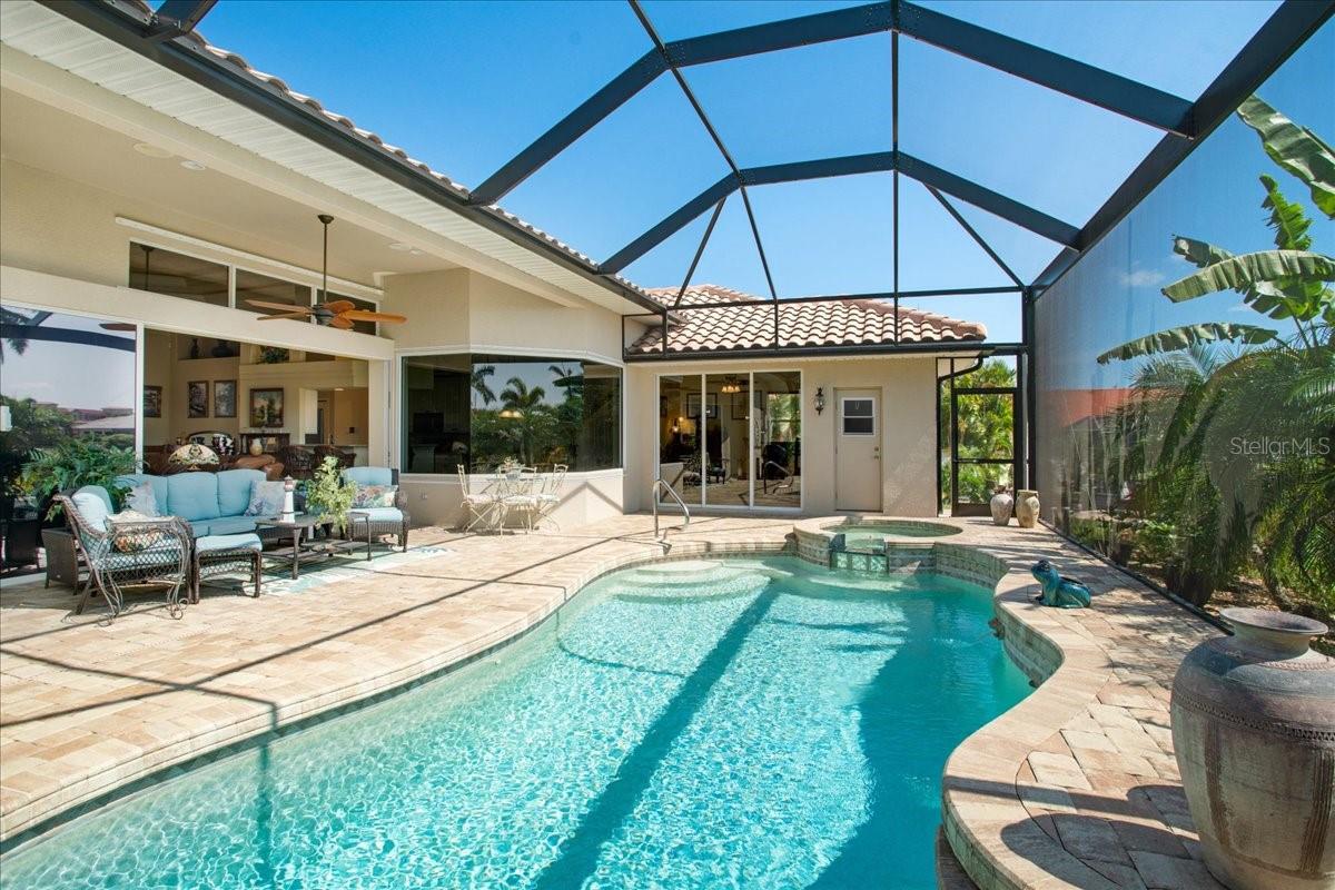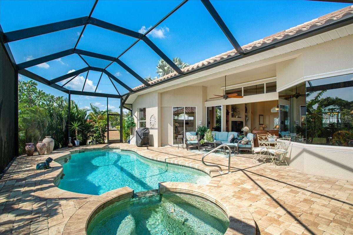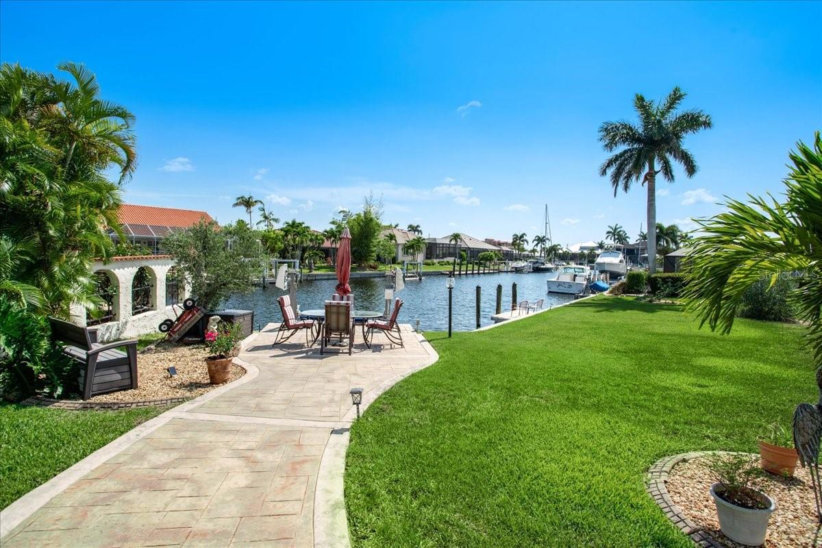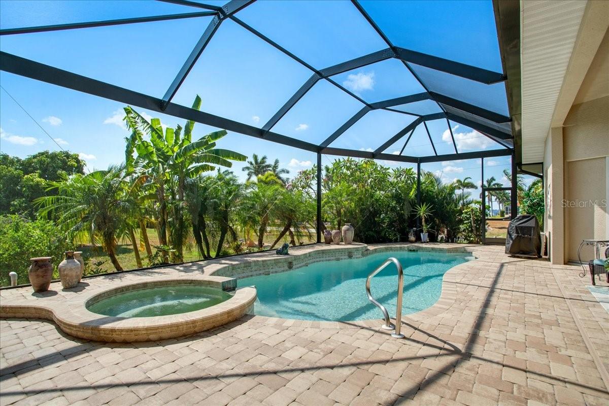 THiS LISTING IS FOR LOT #18 AND THE HOUSE. THE OWNER IS WILLING TO SELL THE ADJOINING BUILDABLE LOT #17 TOGETHER FOR $1,500,000. The parcels will be separated prior to sale if not purchasing both together. Discover the allure of 33 Hibiscus Dr, a luxurious waterfront retreat nestled in the serene beauty of Punta Gorda Isles, FL 33950. This captivating estate spans over 2600 sq ft and boasts 3 bedrooms, 3 bathrooms, and a 2-car garage. Enjoy unparalleled access to the open waters of Charlotte Harbor and the Gulf of Mexico, just 5 lots away, with quick sailboat access. Boating enthusiasts will appreciate the convenience of a 10,000 lb boat lift, complete with a dock and city-maintained concrete seawall. Step into luxury as you're greeted by lush curb appeal, featuring tropical landscaping and a large covered, tiled front entryway with rich double leaded glass doors. Inside, soaring high ceilings, crown molding, and arched entryways create an atmosphere of elegance. The main living areas showcase large tiled flooring throughout, with picturesque aquarium glass in the breakfast nook, rounded corners, and an abundance of natural light. The heart of the home is the gourmet kitchen, equipped with granite counters, stainless appliances, a closet pantry, large breakfast bar, and recessed lighting. Entertain effortlessly in the formal living room, family room, formal dining room, and dinette. Pocket sliders in the master bedroom, living room, and Florida room seamlessly blend indoor and outdoor living, leading to the heated pebble-tech pool with spa and stylish brick paver deck. The pool area features an ambient waterfall feature and ample covered space for entertaining. Furnishings are optional with an acceptable offer. Recent upgrades add to the allure of this exquisite residence, including a NEW barrel tile ROOF(2023), a NEW 5-ton HVAC system with WiFi thermostat (2022), NEW pool patio lanai with panoramic screens, and a sealed paver pool patio (2023). Stay prepared with a whole-house 24 KW Generac on-demand generator, fueled by a 500-gallon underground propane tank, installed in 2022. Additional features include electric storm shutters, a NEW garage door opener motor (2023), and whole-house surge protection (2022). Experience the epitome of Florida waterfront living at 33 Hibiscus Dr. Situated in a prime location, just minutes from Fisherman's Village and downtown Punta Gorda, with easy access to Ponce de Leon Park and miles of bike paths along Charlotte Harbor. Don't miss out on this rare opportunity to own a slice of paradise with all the bells and whistles! Schedule your showing today.