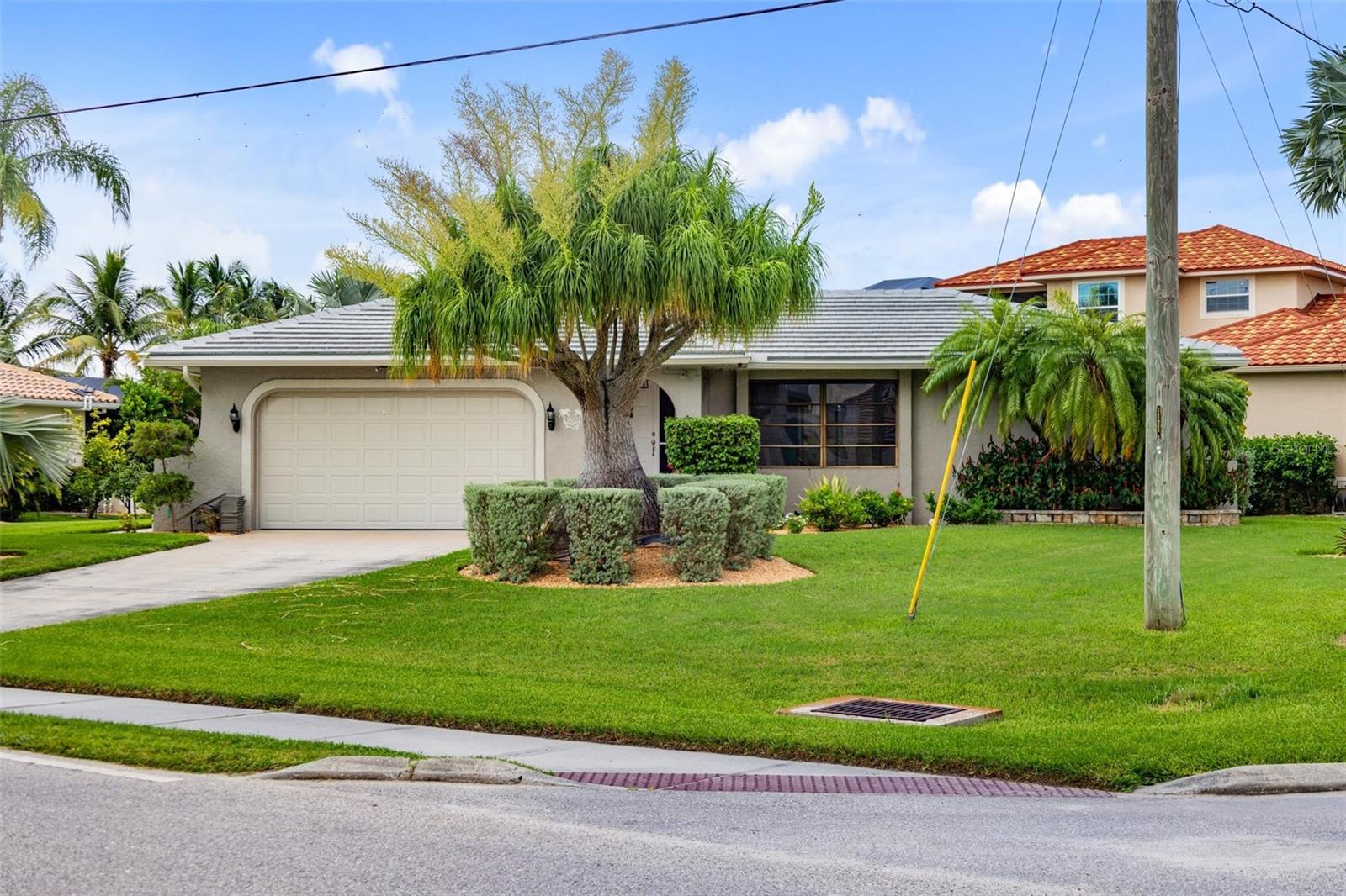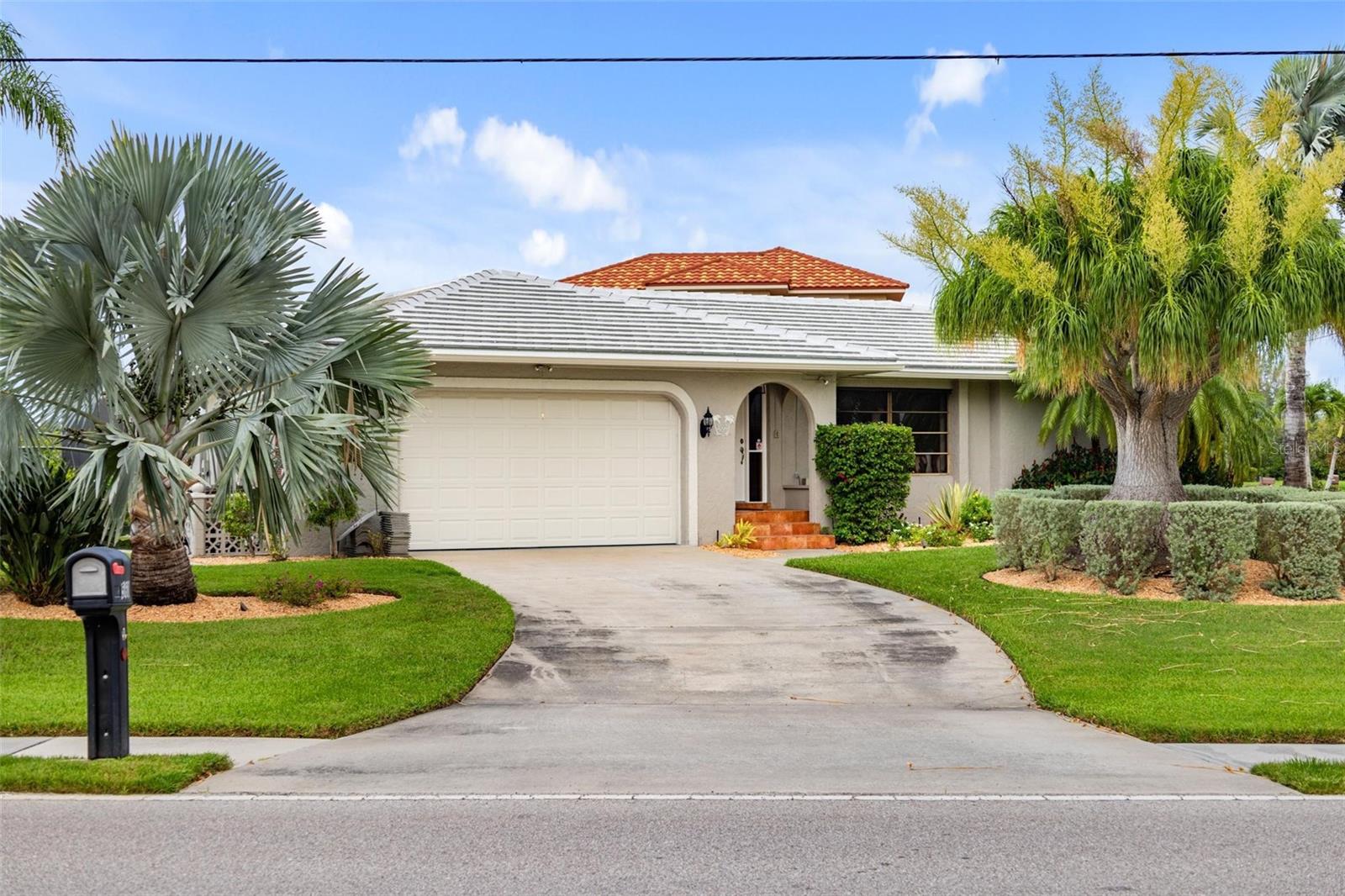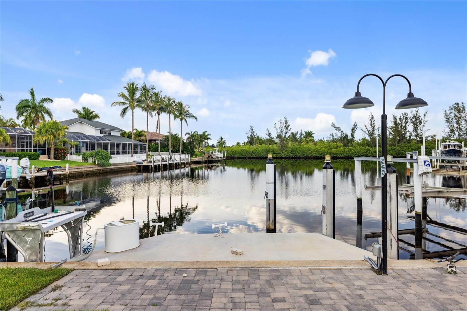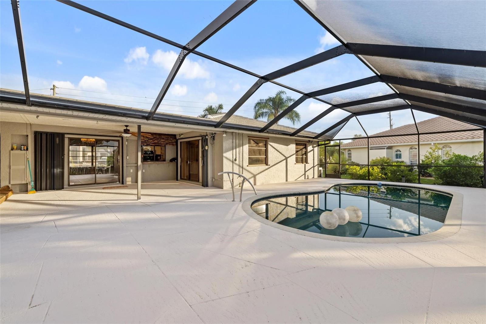 Welcome to a stunning waterfront home nestled in the highly sought-after Burnt Store Isles neighborhood of Punta Gorda. This exceptional home offers sailboat access, providing a direct route to the Gulf of Mexico, perfect for boating enthusiasts. Situated on a spacious corner lot, this meticulously maintained home features two bedrooms, two bathrooms, and a two-car garage. The highlight of this residence is the heated swimming pool, with a new screen enclosure ideal for year-round enjoyment. The concrete dock is equipped with electric and water connections and offers a great place to fish. Step inside to discover a bright and inviting living space with updates and a comfortable layout. A built-in desk area for those that need a home office and three pocket sliding glass doors overlooking the backyard and swimming pool. The primary bedroom offers its own ensuite with a walk-in shower, tub, spacious walk-in closet, and sliding glass doors leading out to the large screened-in porch and pool area. The newly installed concrete roof adds to the home's durability and curb appeal. The beautiful landscaping, including a historic ponytail palm in the front yard, enhances the property's charm and character. Location is everything, and this home delivers! You’ll find yourself central to downtown Punta Gorda, the popular Fisherman's Village, world-class golf courses, and the vibrant Sun Seekers Resort. Whether you’re looking for a peaceful retreat or a base for adventure, this property has it all. Don’t miss your chance to own a piece of paradise in Punta Gorda. Schedule your private showing today and experience the best of waterfront living!