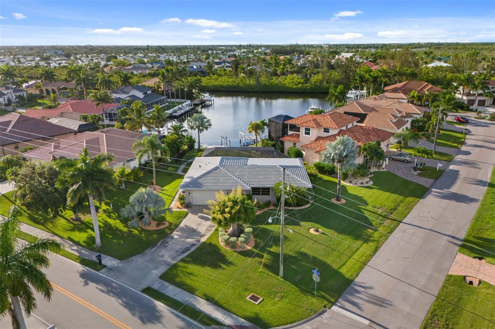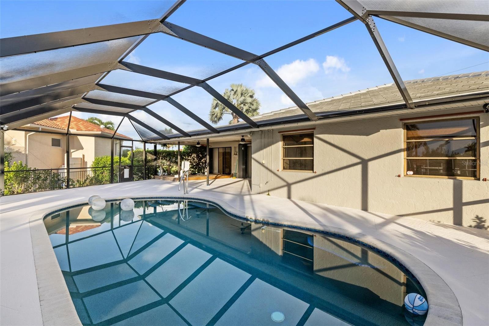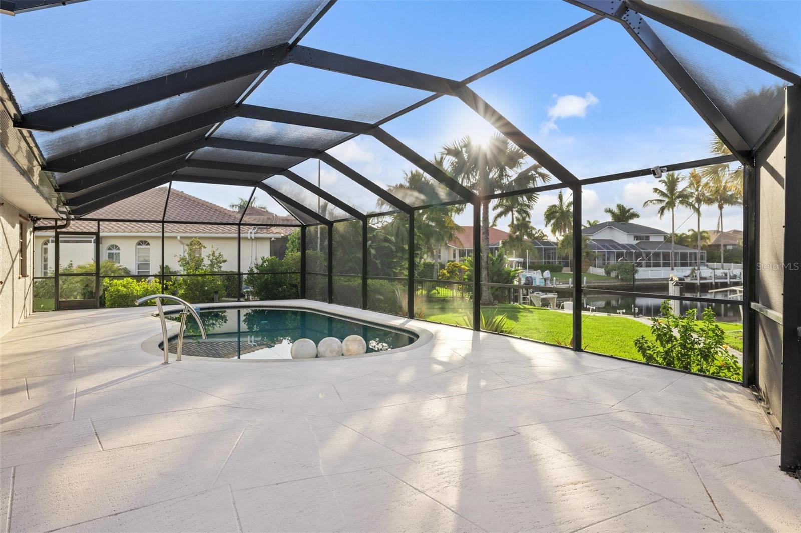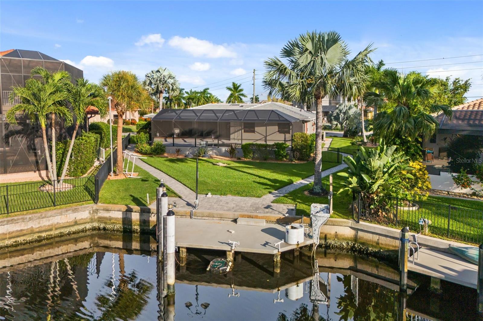 Welcome to a stunning waterfront home nestled in the highly sought-after Burnt Store Isles neighborhood of Punta Gorda. This exceptional home offers sailboat access, providing a direct route to the Gulf of Mexico, perfect for boating enthusiasts. Situated on a spacious corner lot, this meticulously maintained home features two bedrooms, two bathrooms, and a two-car garage. The highlight of this residence is the heated swimming pool, with a new screen enclosure ideal for year-round enjoyment. The concrete dock is equipped with electric and water connections and offers a great place to fish. Step inside to discover a bright and inviting living space with updates and a comfortable layout. A built-in desk area for those that need a home office and three pocket sliding glass doors overlooking the backyard and swimming pool. The primary bedroom offers its own ensuite with a walk-in shower, tub, spacious walk-in closet, and sliding glass doors leading out to the large screened-in porch and pool area. The newly installed concrete roof adds to the home's durability and curb appeal. The beautiful landscaping, including a historic ponytail palm in the front yard, enhances the property's charm and character. Location is everything, and this home delivers! You’ll find yourself central to downtown Punta Gorda, the popular Fisherman's Village, world-class golf courses, and the vibrant Sun Seekers Resort. Whether you’re looking for a peaceful retreat or a base for adventure, this property has it all. Don’t miss your chance to own a piece of paradise in Punta Gorda. Schedule your private showing today and experience the best of waterfront living!