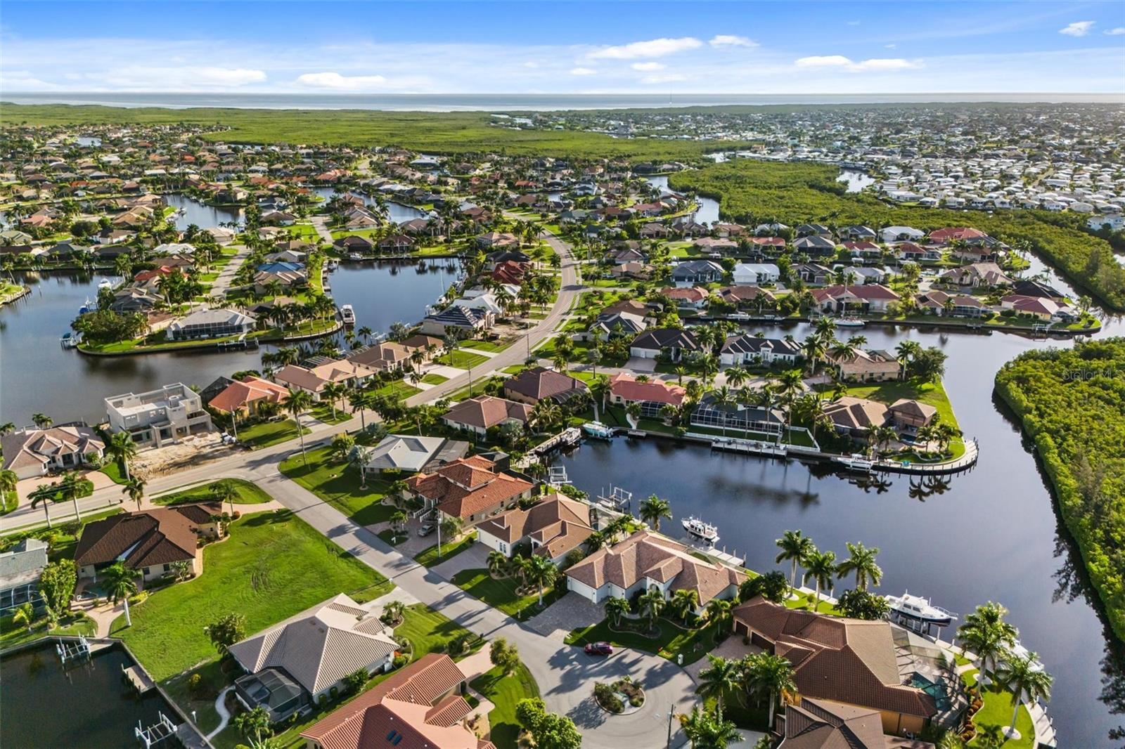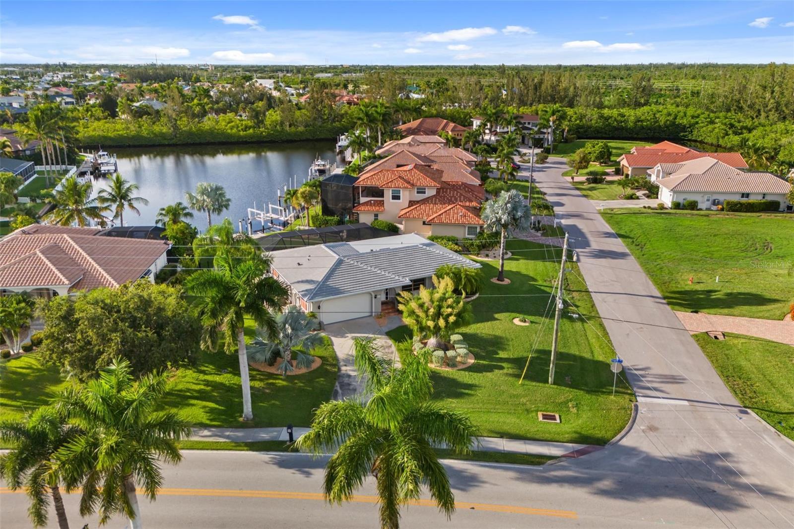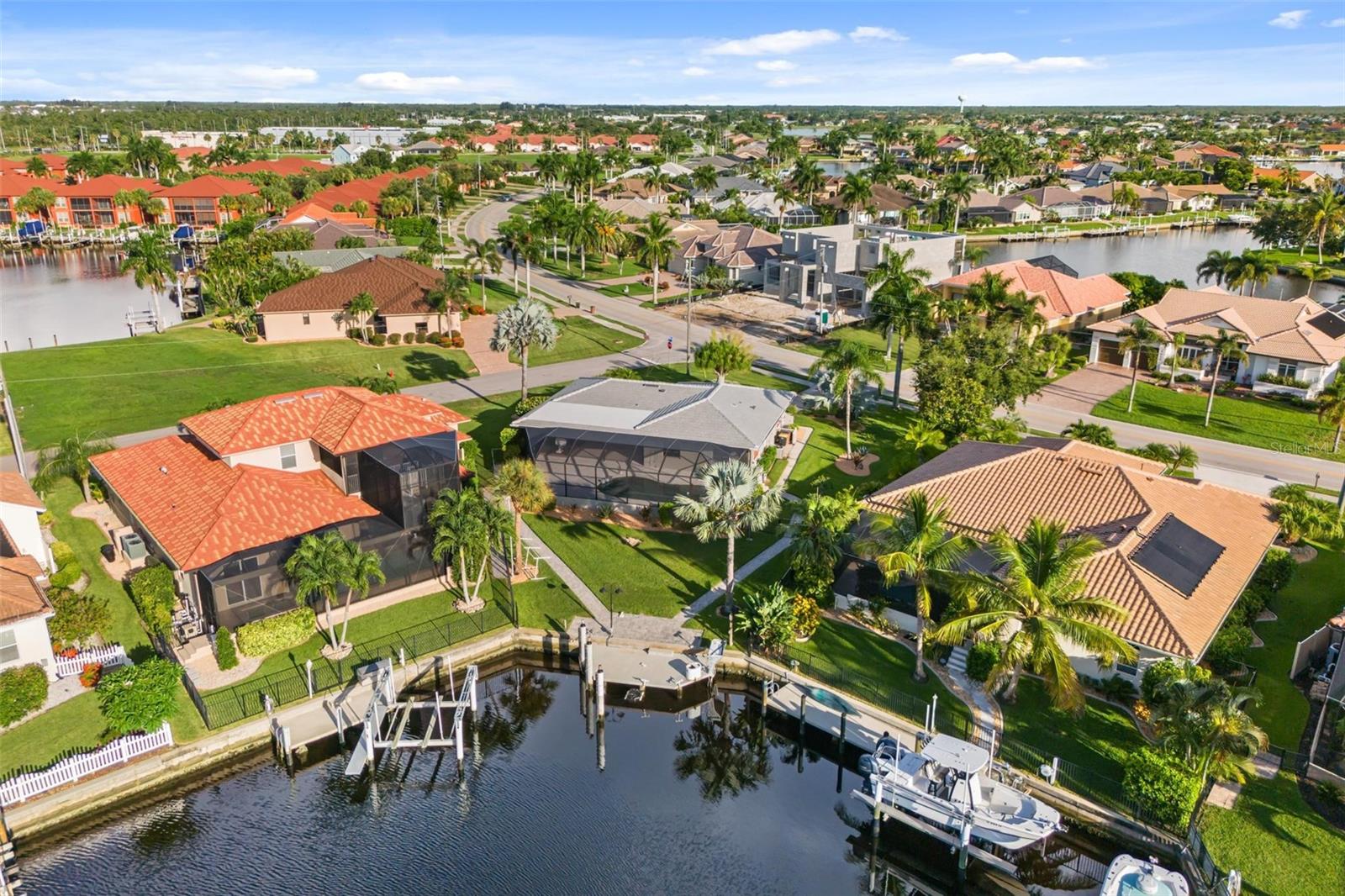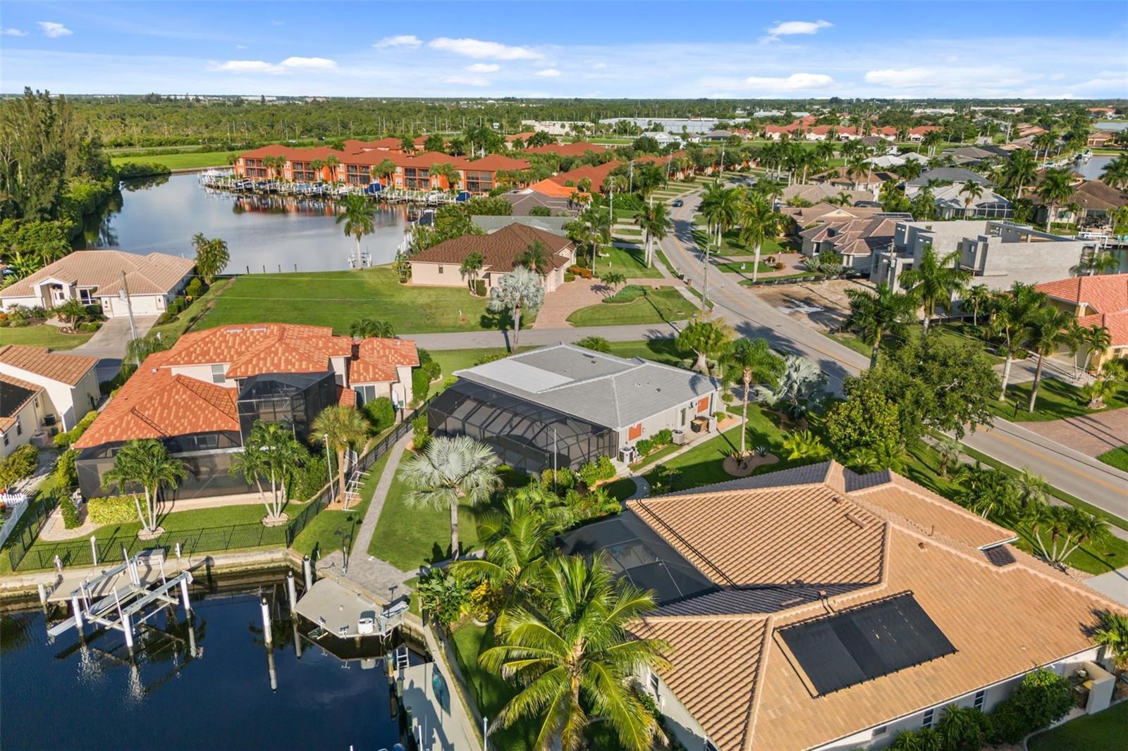 Welcome to a stunning waterfront home nestled in the highly sought-after Burnt Store Isles neighborhood of Punta Gorda. This exceptional home offers sailboat access, providing a direct route to the Gulf of Mexico, perfect for boating enthusiasts. Situated on a spacious corner lot, this meticulously maintained home features two bedrooms, two bathrooms, and a two-car garage. The highlight of this residence is the heated swimming pool, with a new screen enclosure ideal for year-round enjoyment. The concrete dock is equipped with electric and water connections and offers a great place to fish. Step inside to discover a bright and inviting living space with updates and a comfortable layout. A built-in desk area for those that need a home office and three pocket sliding glass doors overlooking the backyard and swimming pool. The primary bedroom offers its own ensuite with a walk-in shower, tub, spacious walk-in closet, and sliding glass doors leading out to the large screened-in porch and pool area. The newly installed concrete roof adds to the home's durability and curb appeal. The beautiful landscaping, including a historic ponytail palm in the front yard, enhances the property's charm and character. Location is everything, and this home delivers! You’ll find yourself central to downtown Punta Gorda, the popular Fisherman's Village, world-class golf courses, and the vibrant Sun Seekers Resort. Whether you’re looking for a peaceful retreat or a base for adventure, this property has it all. Don’t miss your chance to own a piece of paradise in Punta Gorda. Schedule your private showing today and experience the best of waterfront living!