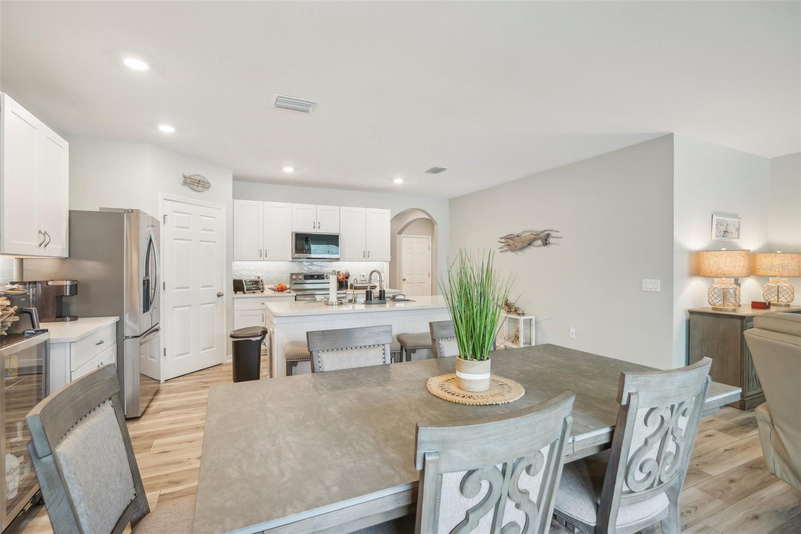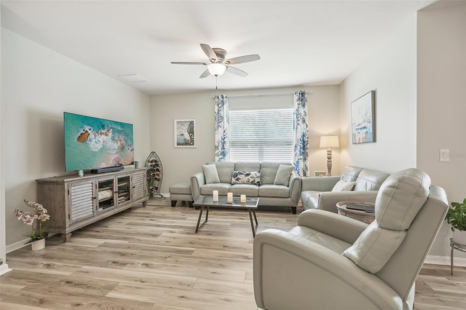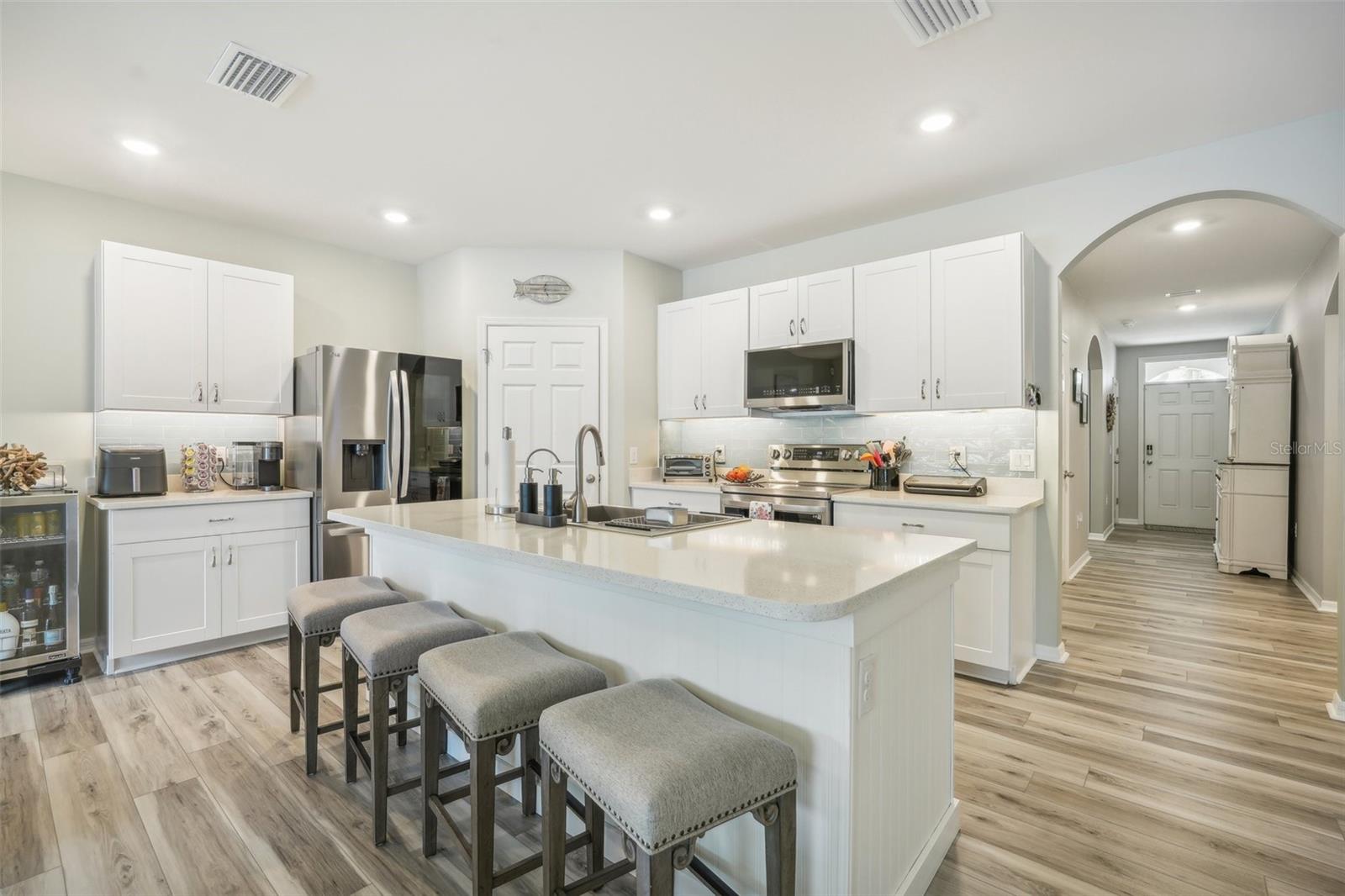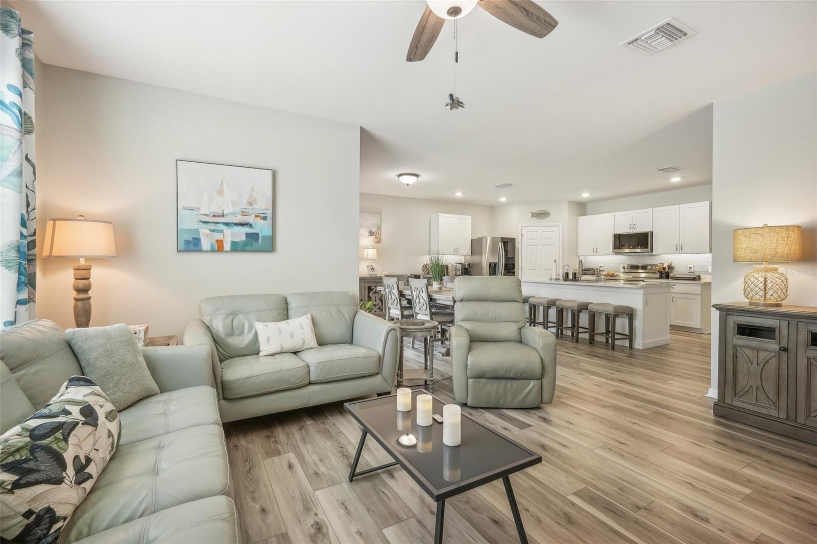 **** No CDD and NOT in a flood zone**** Welcome to Calusa Creek! This modern 4-bedroom, 2-bathroom home, built in 2020, offers comfortable living in the desirable gated community of Calusa Creek. With a well-maintained exterior, 2-car garage, and spacious interior, this home is ready for you to move in and enjoy. This home offers 1,846 sq ft of living space with an open-concept design, a split-bedroom floor plan, 8’8” ceilings, and built-in garage storage. As you enter, a long hallway welcomes you, leading to a bright and airy living area that opens up to a stunning kitchen. White wooden cabinets, white Corian countertops, a complete stainless steel appliance package (under warranty through September 2025) and a large island make this space perfect for cooking, entertaining, or casual bar-style dining. The kitchen also features a walk-in pantry and ample cabinet space. The living room is filled with natural light from a large window, creating the perfect spot for reading or movie nights. Adjacent to the living area, the dining space is positioned next to sliding glass doors that lead to a covered and screened patio, which offers a great outdoor space for relaxation. The primary bedroom suite features an en suite bathroom with dual sinks, a walk-in closet, and a separate linen closet. The three additional bedrooms also have large windows with wooden blinds, making them ideal for use as guest rooms, a den, or a home office. The two-car garage is conveniently located off the front hallway, along with a laundry room and extra storage closet. This home is loaded with upgrades, including 2023 "Lifeproof 360" vinyl flooring throughout, a 2021 reverse osmosis water filtration system, a 2022 stainless steel kitchen sink with a gooseneck faucet, a 2021 water softener, 2023 whole-house generator wiring, and a 2022 bypass system allowing you to use either softened water or city water for lawn irrigation. As a smart home, it also features ADT security, with app-controlled monitoring, motion detectors, and cameras at the front and back of the home with sound options. Located near Punta Gorda's historic district, you'll be close to natural attractions, waterfront shopping, and beautiful walking paths along Charlotte Harbor, including the popular Fishermen’s Village. Schedule your visit today!