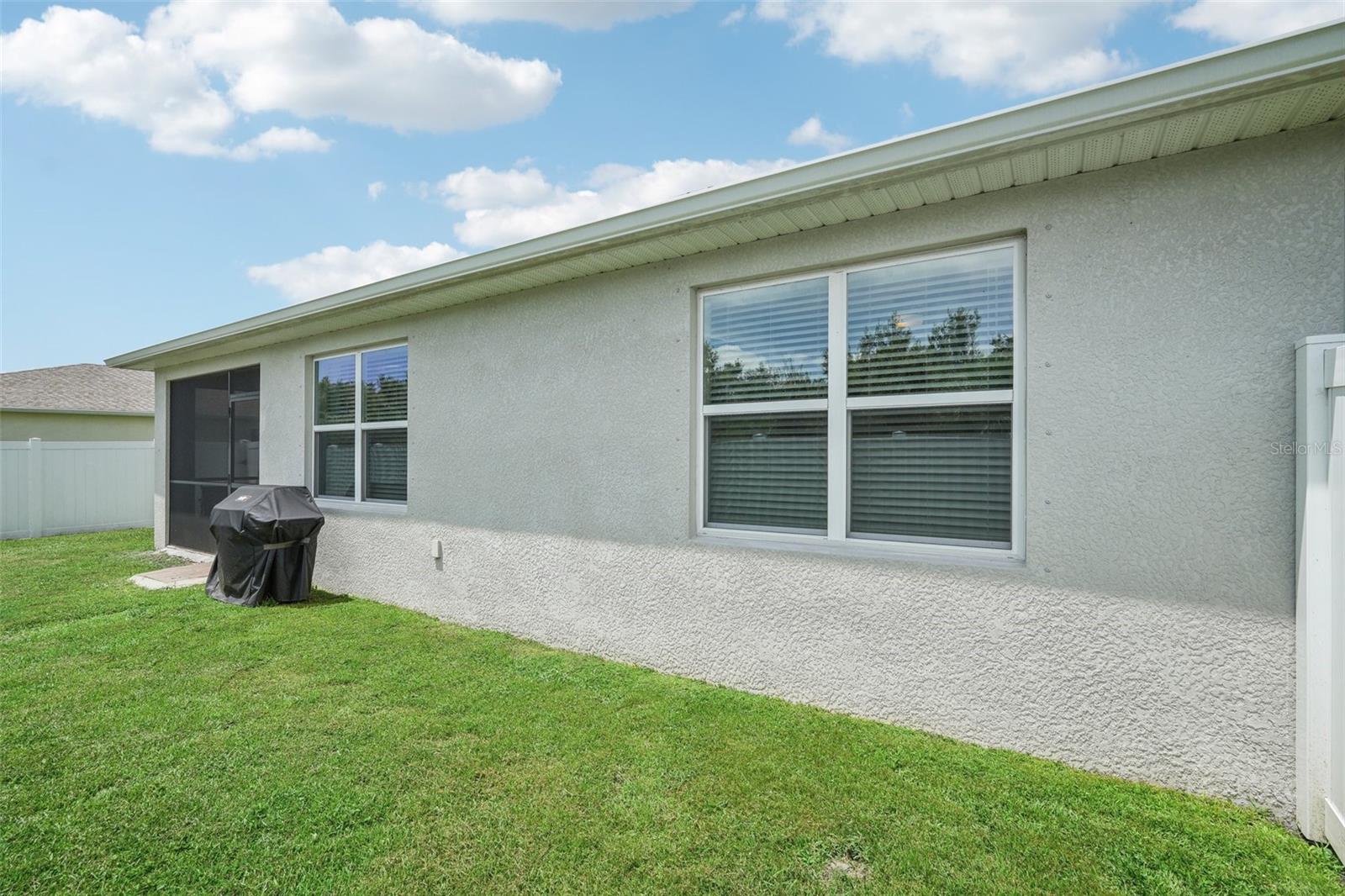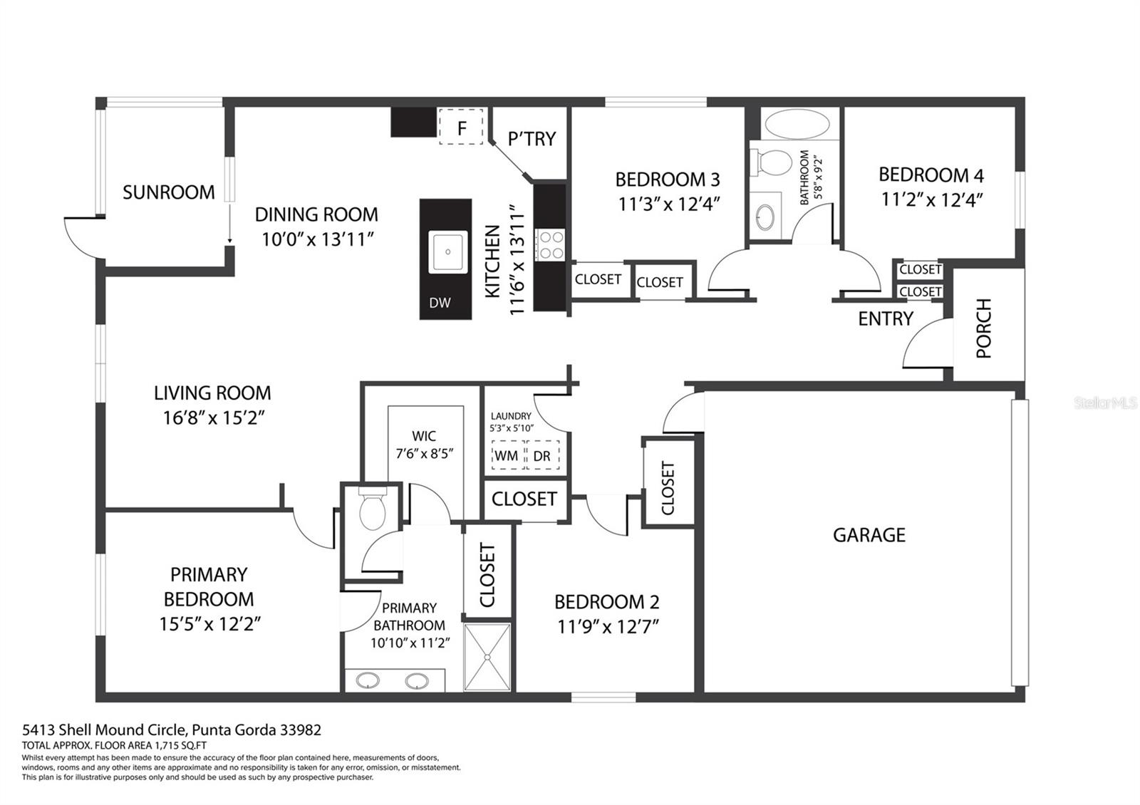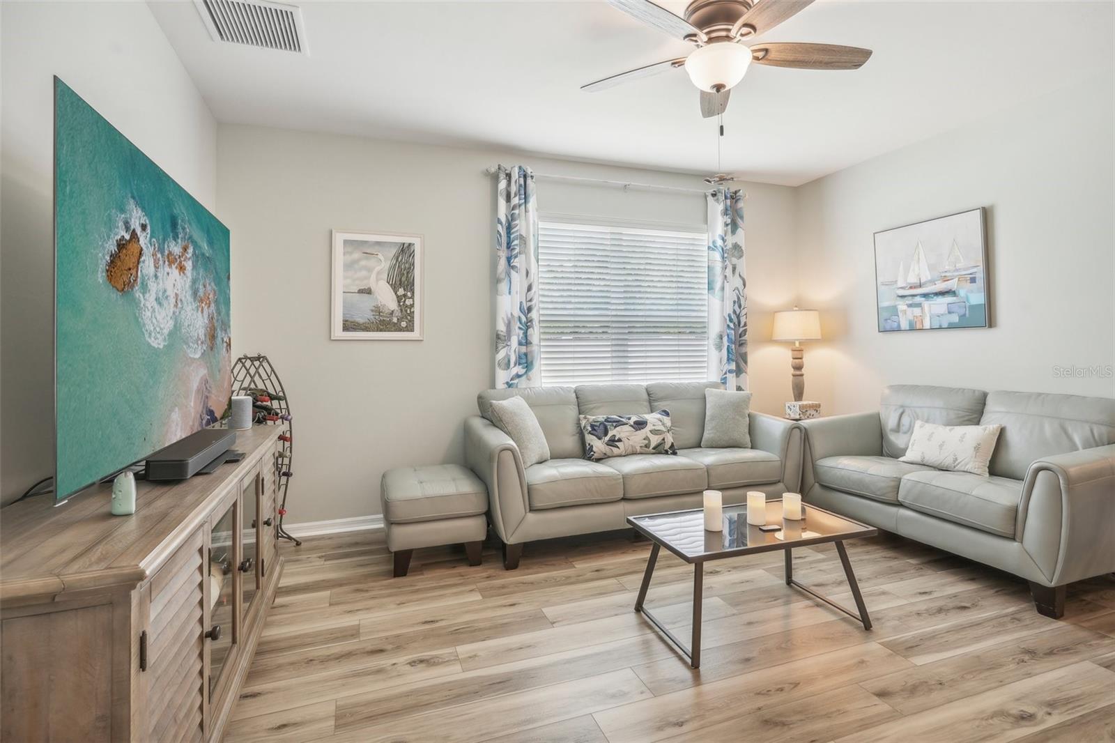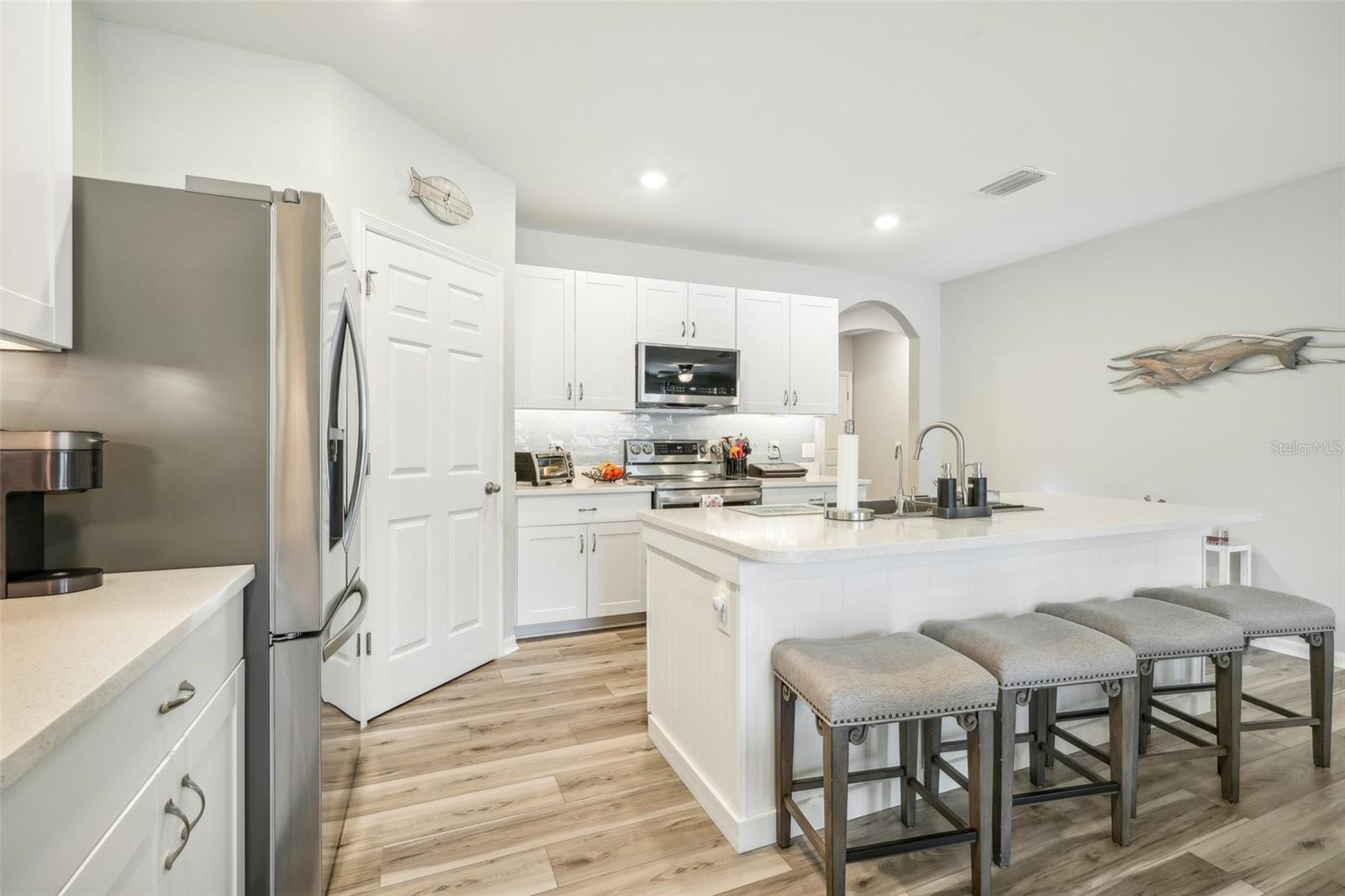 **** No CDD and NOT in a flood zone**** Welcome to Calusa Creek! This modern 4-bedroom, 2-bathroom home, built in 2020, offers comfortable living in the desirable gated community of Calusa Creek. With a well-maintained exterior, 2-car garage, and spacious interior, this home is ready for you to move in and enjoy. This home offers 1,846 sq ft of living space with an open-concept design, a split-bedroom floor plan, 8’8” ceilings, and built-in garage storage. As you enter, a long hallway welcomes you, leading to a bright and airy living area that opens up to a stunning kitchen. White wooden cabinets, white Corian countertops, a complete stainless steel appliance package (under warranty through September 2025) and a large island make this space perfect for cooking, entertaining, or casual bar-style dining. The kitchen also features a walk-in pantry and ample cabinet space. The living room is filled with natural light from a large window, creating the perfect spot for reading or movie nights. Adjacent to the living area, the dining space is positioned next to sliding glass doors that lead to a covered and screened patio, which offers a great outdoor space for relaxation. The primary bedroom suite features an en suite bathroom with dual sinks, a walk-in closet, and a separate linen closet. The three additional bedrooms also have large windows with wooden blinds, making them ideal for use as guest rooms, a den, or a home office. The two-car garage is conveniently located off the front hallway, along with a laundry room and extra storage closet. This home is loaded with upgrades, including 2023 "Lifeproof 360" vinyl flooring throughout, a 2021 reverse osmosis water filtration system, a 2022 stainless steel kitchen sink with a gooseneck faucet, a 2021 water softener, 2023 whole-house generator wiring, and a 2022 bypass system allowing you to use either softened water or city water for lawn irrigation. As a smart home, it also features ADT security, with app-controlled monitoring, motion detectors, and cameras at the front and back of the home with sound options. Located near Punta Gorda's historic district, you'll be close to natural attractions, waterfront shopping, and beautiful walking paths along Charlotte Harbor, including the popular Fishermen’s Village. Schedule your visit today!