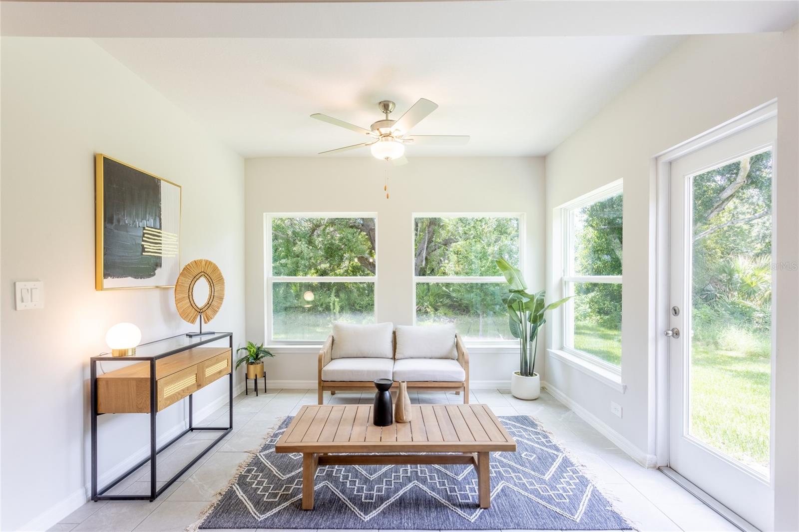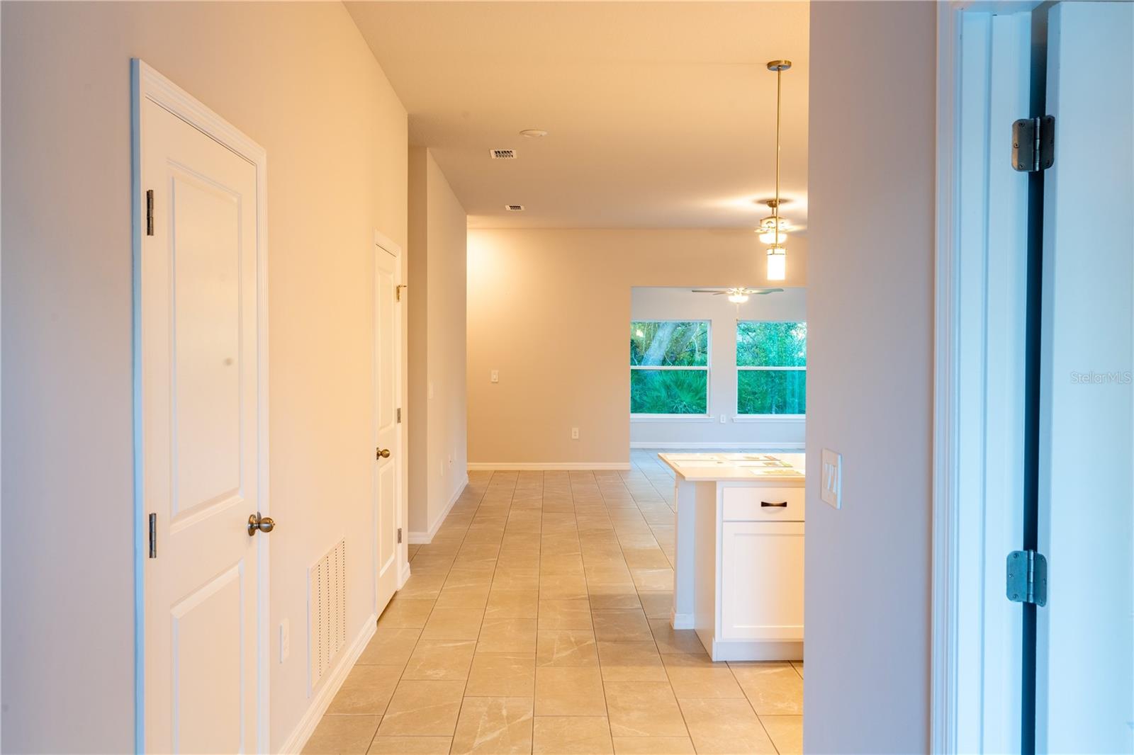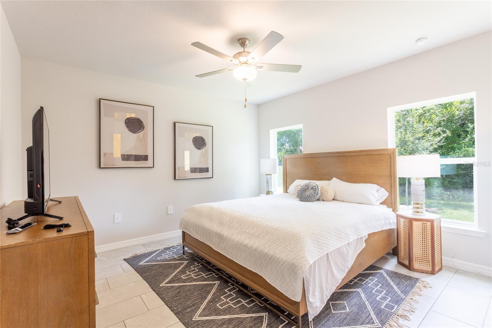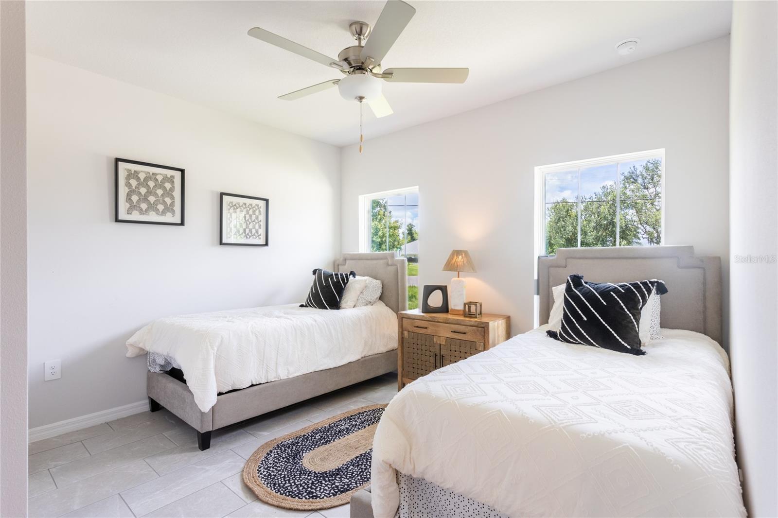 ***NEW CONSTRUCTION, NO WAIT, MOVE-IN READY!*** Elevate your lifestyle with the opulence of the Sanibel II floorplan presented by Carpenter Homes—a masterpiece within the Florida Living Series, certified by the Florida Green Building Coalition (FGBC). This home features 4 bedrooms and 2 full bathrooms. This dream home is designed and built to immerse you in luxury. As you enter, a beautiful kitchen welcomes you, with an expansive, oversized bar that seamlessly flows into the living and dining area. The finesse of soft-close, Painted White 36" cabinets, and upgraded Blanco Matrix quartz countertops add a functional touch of luxury to the kitchen. Kitchen upgrades include a Moen Align matte black kitchen faucet, garbage disposal, and sleek stainless steel energy efficient appliances. This home exudes sophistication with a vaulted ceiling that unveils a spacious Florida Room, creating an indoor-outdoor haven. Additionally, Carpenter Homes provides an upgraded brushed nickel lighting package including pendants over the kitchen bar, and vanity fixtures in both bathrooms, accenting the overall lighting design. Brushed steel finish ceiling fans in each bedroom, as well as the great room, helps to circulate air flow and keep you cool in the Florida weather. Complimenting the expansive living area is Torino 12x24 grigio (gray) ceramic tile flooring. The Owner's suite is a sanctuary of indulgence, showcasing dual sinks, impeccably tiled Magnisi White 8x12 walls in the shower, and a generously sized walk-in closet. The home boasts Magnisi White 8x12 upgraded tiled walls in in the second bath/shower, a Blanco Matrix quartz vanity top, and Moen Align chrome faucets and shower/tub trim kits. The ampleness of this home continues with a utility room, and additions such as energy-efficient R-4.1 insulation on concrete exterior walls, Taexx tubes for pest control, and fabric hurricane shutters for every window. The Florida friendly landscaped yard is complemented by an irrigation system with a rain sensor to help maximize efficiency. The expansive 2-car garage, complete with garage door opener and two remotes, not only provides ample space for your everyday needs but also ensures the utmost convenience and versatility for all your storage and parking requirements. Step into a world where extravagance meets eco-conscious living—your forever home awaits, a testament to timeless elegance and modern sustainability. Available to view any time!