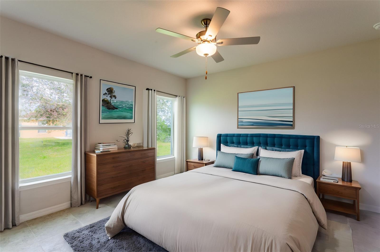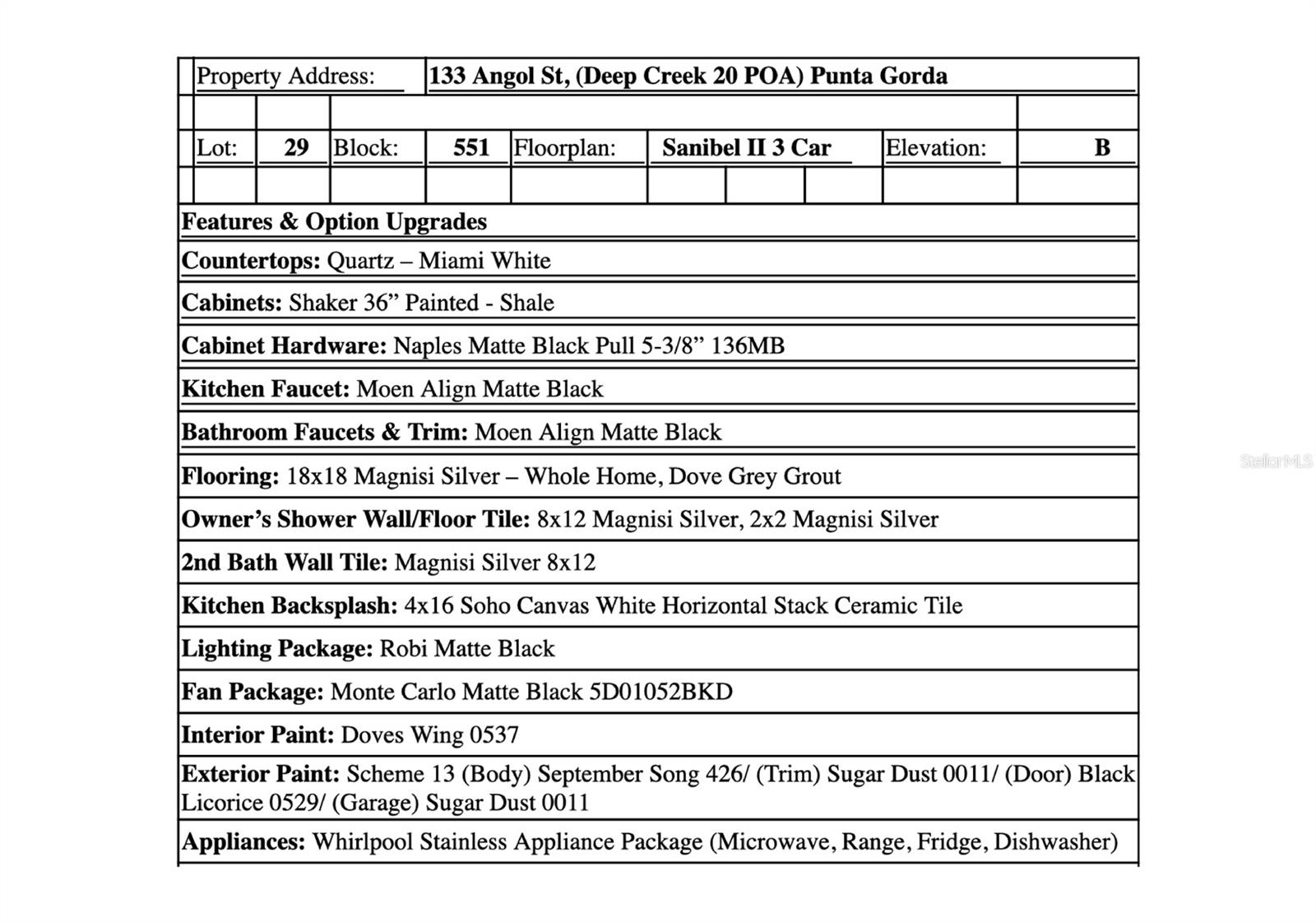 ***NEW CONSTRUCTION, NO WAIT, MOVE IN READY!*** Elevate your lifestyle with the opulence of the Sanibel II floorplan presented by Carpenter Homes—a masterpiece within the Florida Living Series, certified by the Florida Green Building Coalition (FGBC). This home features 4 bedrooms and 2 full bathrooms. This dream home is designed and built to immerse you in luxury! As you enter, a beautiful kitchen welcomes you, with an expansive, oversized bar that seamlessly flows into the living and dining area. The finesse of soft-close, Painted Slate 36" cabinets, SoHo Canvas White 4x16 subway tile backsplash, and upgraded Miami White quartz countertops add a functional touch of luxury to the kitchen. Kitchen upgrades include a Moen Align matte black kitchen faucet, garbage disposal, and sleek stainless steel energy efficient appliances. This home exudes sophistication with a vaulted ceiling that unveils a spacious Florida Room, creating an indoor-outdoor haven. Additionally, Carpenter Homes provides an upgraded matte black lighting package including pendants over the kitchen bar, and vanity fixtures in both bathrooms, accenting the overall lighting design. Matte black finish ceiling fans in each bedroom, as well as the great room, helps to circulate air flow and keep you cool in the Florida weather. Complimenting the expansive living area is Magnisi Silver 18x18 ceramic tile flooring. The Owner's suite is a sanctuary of indulgence, showcasing dual sinks, impeccably tiled Magnisi Silver 8x12 walls in the shower, and a generously sized walk-in closet. The home boasts Magnisi Silver 8x12 upgraded tiled walls in in the second bath/shower, a Miami White quartz vanity top, and Moen Align matte black faucets and shower/tub trim kits. The ampleness of this home continues with a utility room, and additions such as energy-efficient R-4.1 insulation on concrete exterior walls, Taexx tubes for pest control, and fabric hurricane shutters for every window. The Florida friendly landscaped yard is complemented by an irrigation system with a rain sensor to help maximize efficiency. The expansive 3-car garage, complete with 2 garage door openers and four remotes, not only provides ample space for your everyday needs but also ensures the utmost convenience and versatility for all your storage and parking requirements. Step into a world where extravagance meets eco-conscious living—your forever home awaits, a testament to timeless elegance and modern sustainability. Available to view any time.