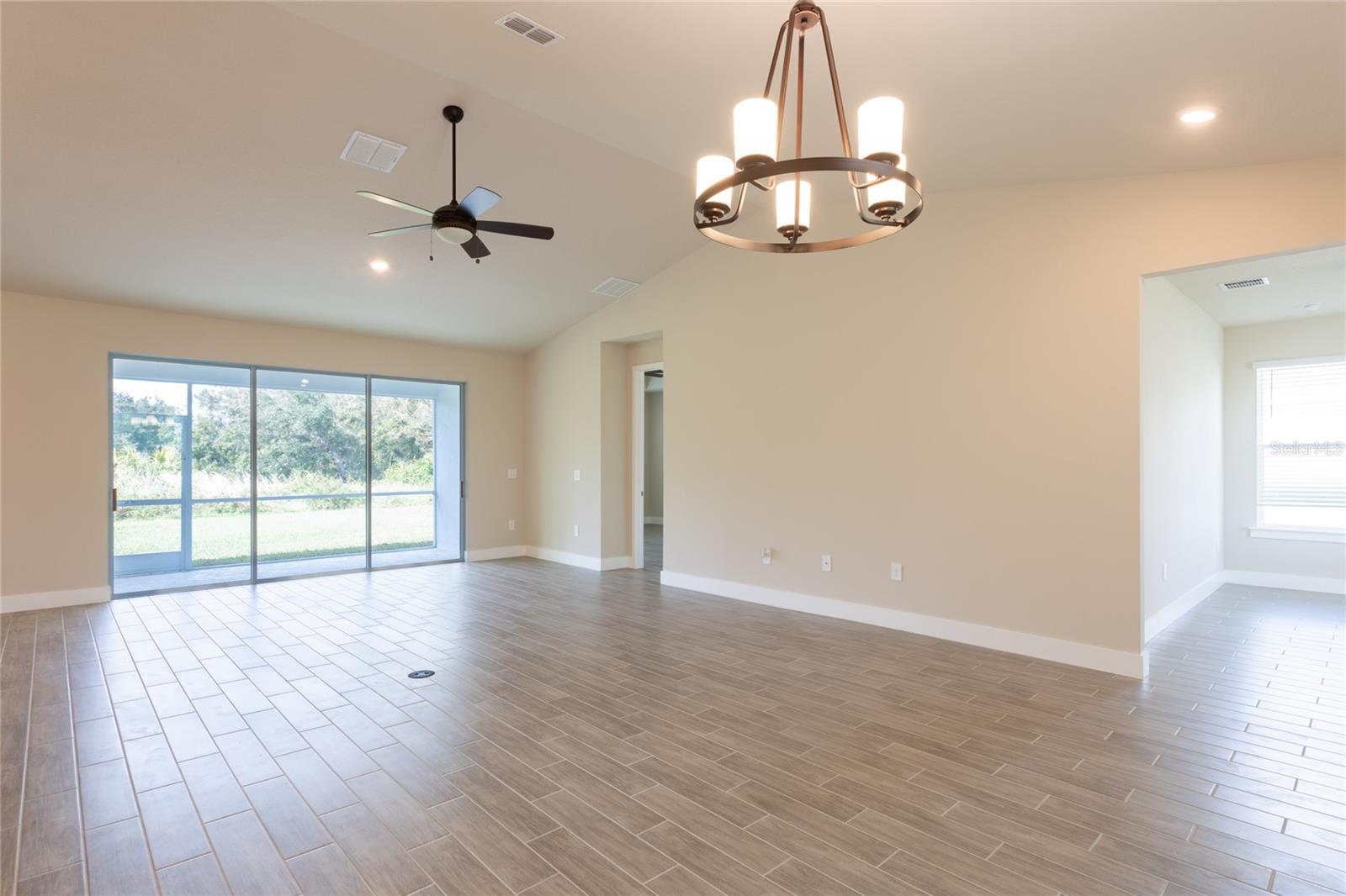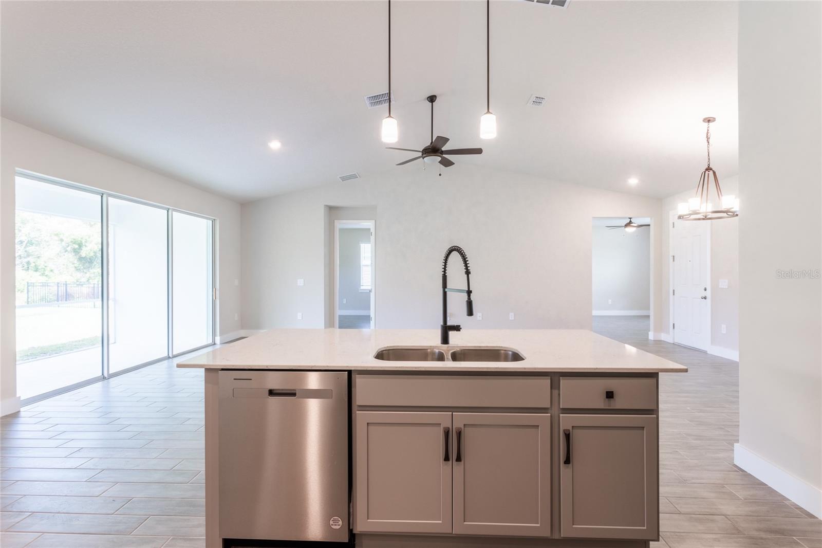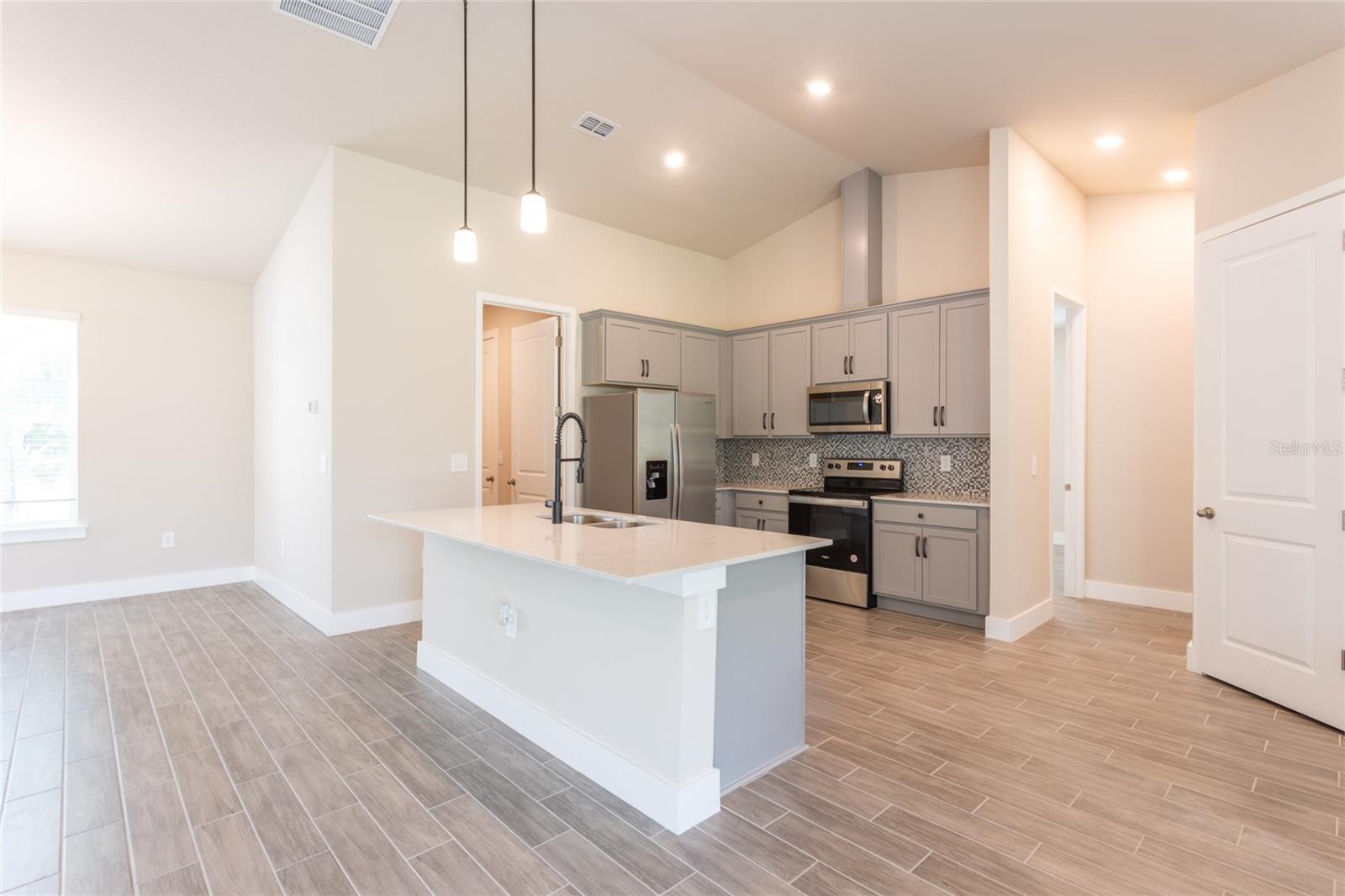 ***NEW CONSTRUCTION, NO WAIT, MOVE IN READY!*** Elevate your lifestyle with the opulence of the Boca floorplan presented by Carpenter Homes—a masterpiece within the Signature Series, certified by the Florida Green Building Coalition (FGBC). This home features 3 bedrooms plus an oversized office/flex room and 2 full bathrooms. This dream home is designed and built to immerse you in luxury. As you enter, a beautiful kitchen welcomes you with an expansive, oversized island that seamlessly flows into the living and dining area. The finesse of soft-close, Painted Shale 42" cabinets, Anatolia Bliss Glass & Stone 5/8"x5/8" mosaic tile backsplash, and upgraded Lyra quartz countertops add a functional touch of luxury to the kitchen. More kitchen upgrades include a Moen Align matte black kitchen faucet, garbage disposal, and sleek stainless steel energy efficient appliances. This home exudes sophistication with a vaulted ceiling and sliding glass doors that unveil a spacious, large lanai, creating an indoor-outdoor haven. Additionally, Carpenter Homes provides an upgraded bronze lighting package, including chandeliers over the breakfast nook and dining room, pendants over the kitchen island, and vanity fixtures in both bathrooms accenting the overall lighting design. Bronze finish ceiling fans in each bedroom, as well as the great room, helps to circulate air flow and keep you cool in the Florida weather. Complimenting the expansive living area are Glen Arbor Grey 6x26 ceramic plank flooring. We continue our dedication to excellence to our clients with high quality blinds for the windows for privacy and to help keep the Florida sun out. The Owner's suite is a sanctuary of indulgence, showcasing dual sinks, impeccably tiled SoHo Canvas White 3x6 walls in the upgraded glass enclosed shower, and two large walk-in closets! The home boasts SoHo Cement Chic 3x6 upgraded tiled walls in in the second bath/shower, a Lyra quartz vanity top, and Moen Genta LX chrome faucets and shower/tub trim kits. The ampleness of this home continues with a utility room that features its own wash basin, and thoughtful additions such as energy-efficient R-4.1 insulation on concrete exterior walls, Taexx tubes for pest control, and fabric hurricane shutters for every window. The Florida friendly landscaped yard is complemented by an irrigation system with a rain sensor to help maximize efficiency. The expansive 2.5-car garage, complete with electronic door opener and 2 remotes, not only provides ample space for your everyday needs but also ensures the utmost convenience and versatility for all your storage and parking requirements. Step into a world where extravagance meets eco-conscious living—your forever home awaits you, a testament to timeless elegance and modern sustainability. Available to view anytime!