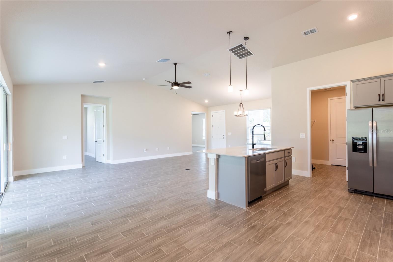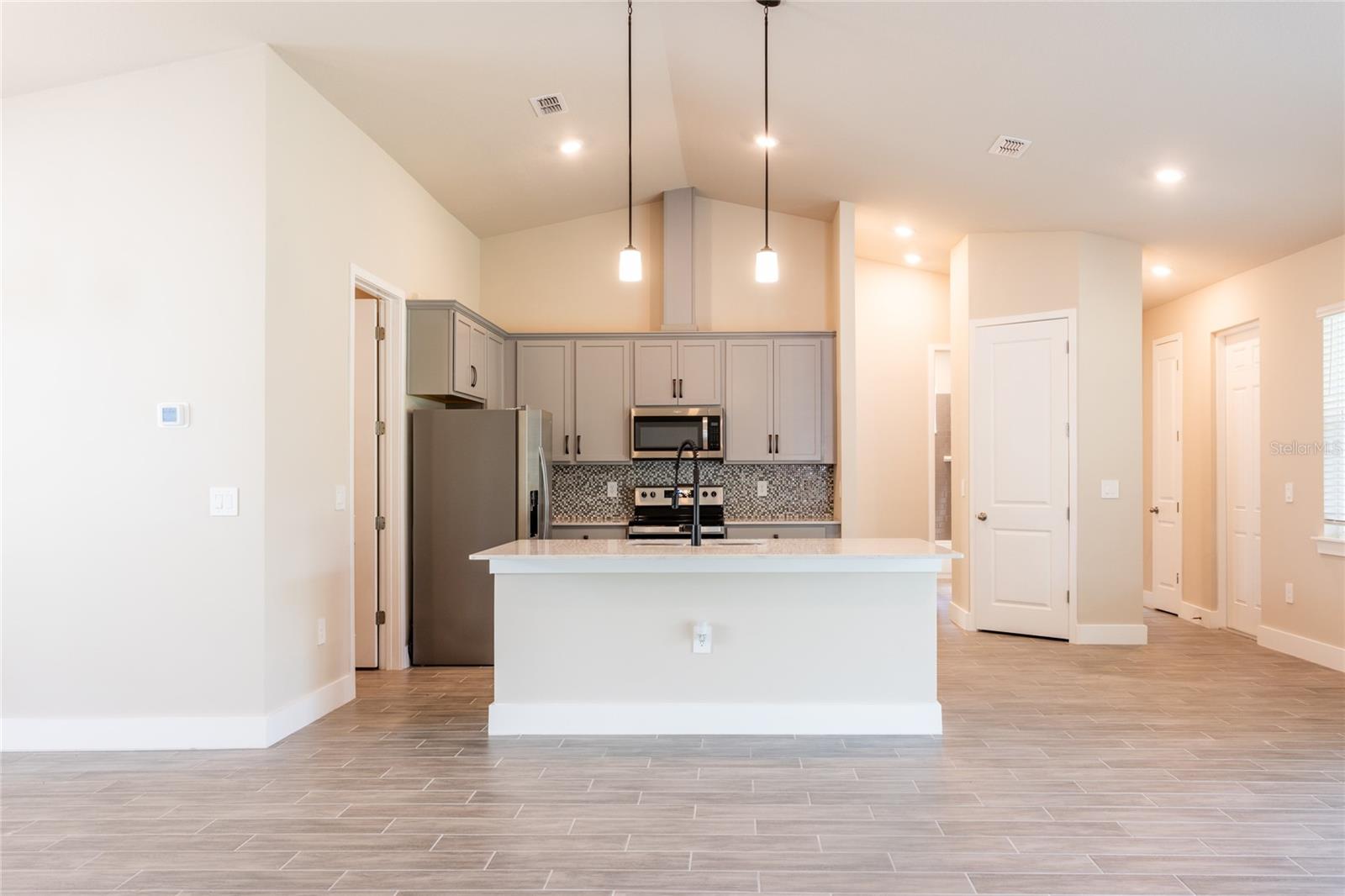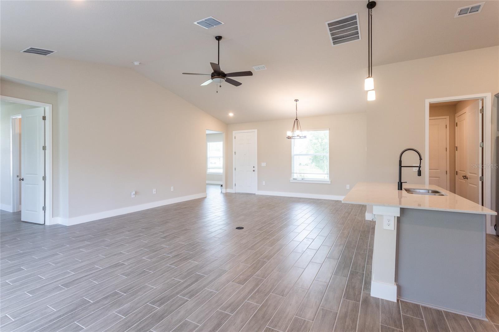 ***NEW CONSTRUCTION, NO WAIT, MOVE IN READY!*** Elevate your lifestyle with the opulence of the Boca floorplan presented by Carpenter Homes—a masterpiece within the Signature Series, certified by the Florida Green Building Coalition (FGBC). This home features 3 bedrooms plus an oversized office/flex room and 2 full bathrooms. This dream home is designed and built to immerse you in luxury. As you enter, a beautiful kitchen welcomes you with an expansive, oversized island that seamlessly flows into the living and dining area. The finesse of soft-close, Painted Shale 42" cabinets, Anatolia Bliss Glass & Stone 5/8"x5/8" mosaic tile backsplash, and upgraded Lyra quartz countertops add a functional touch of luxury to the kitchen. More kitchen upgrades include a Moen Align matte black kitchen faucet, garbage disposal, and sleek stainless steel energy efficient appliances. This home exudes sophistication with a vaulted ceiling and sliding glass doors that unveil a spacious, large lanai, creating an indoor-outdoor haven. Additionally, Carpenter Homes provides an upgraded bronze lighting package, including chandeliers over the breakfast nook and dining room, pendants over the kitchen island, and vanity fixtures in both bathrooms accenting the overall lighting design. Bronze finish ceiling fans in each bedroom, as well as the great room, helps to circulate air flow and keep you cool in the Florida weather. Complimenting the expansive living area are Glen Arbor Grey 6x26 ceramic plank flooring. We continue our dedication to excellence to our clients with high quality blinds for the windows for privacy and to help keep the Florida sun out. The Owner's suite is a sanctuary of indulgence, showcasing dual sinks, impeccably tiled SoHo Canvas White 3x6 walls in the upgraded glass enclosed shower, and two large walk-in closets! The home boasts SoHo Cement Chic 3x6 upgraded tiled walls in in the second bath/shower, a Lyra quartz vanity top, and Moen Genta LX chrome faucets and shower/tub trim kits. The ampleness of this home continues with a utility room that features its own wash basin, and thoughtful additions such as energy-efficient R-4.1 insulation on concrete exterior walls, Taexx tubes for pest control, and fabric hurricane shutters for every window. The Florida friendly landscaped yard is complemented by an irrigation system with a rain sensor to help maximize efficiency. The expansive 2.5-car garage, complete with electronic door opener and 2 remotes, not only provides ample space for your everyday needs but also ensures the utmost convenience and versatility for all your storage and parking requirements. Step into a world where extravagance meets eco-conscious living—your forever home awaits you, a testament to timeless elegance and modern sustainability. Available to view anytime!