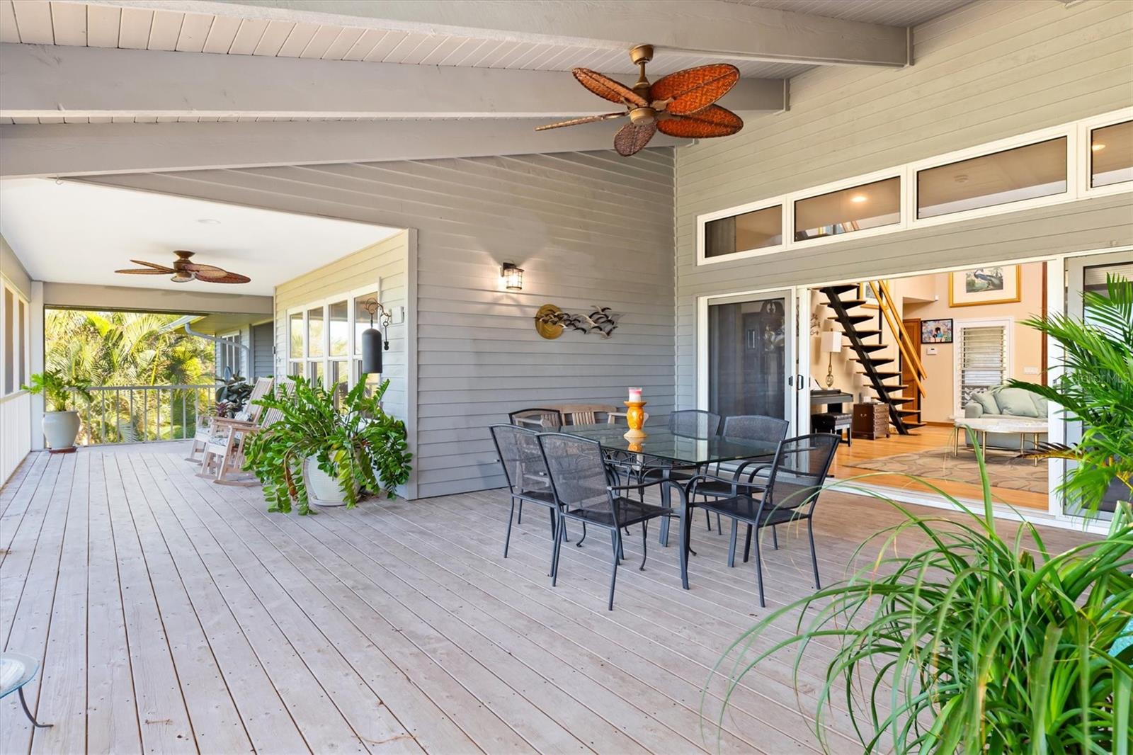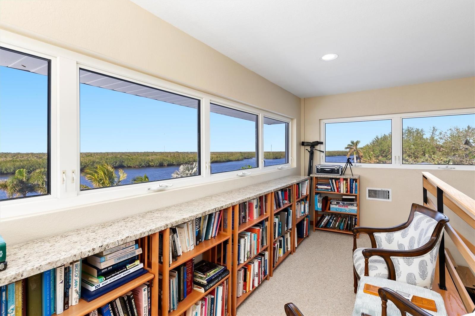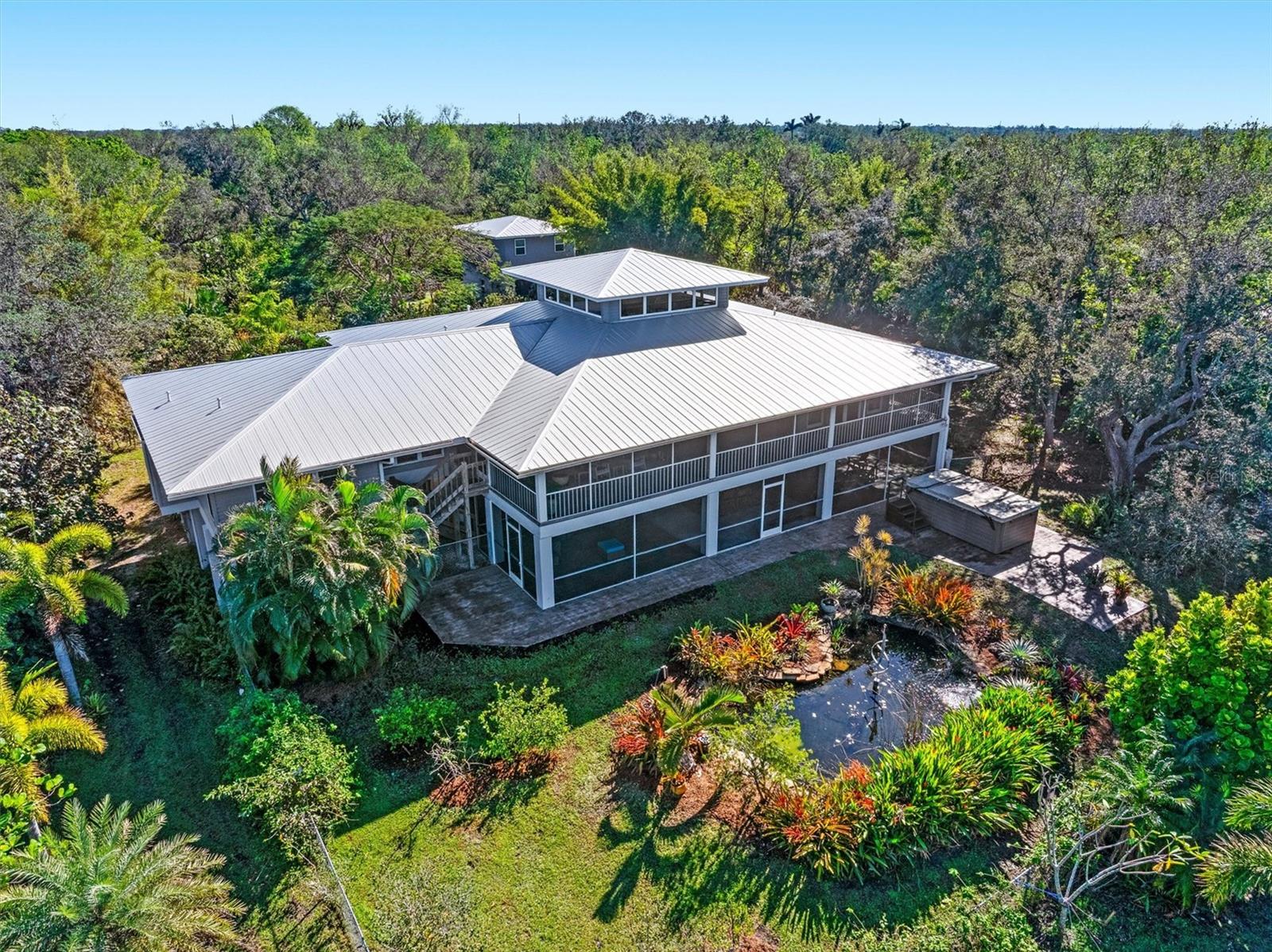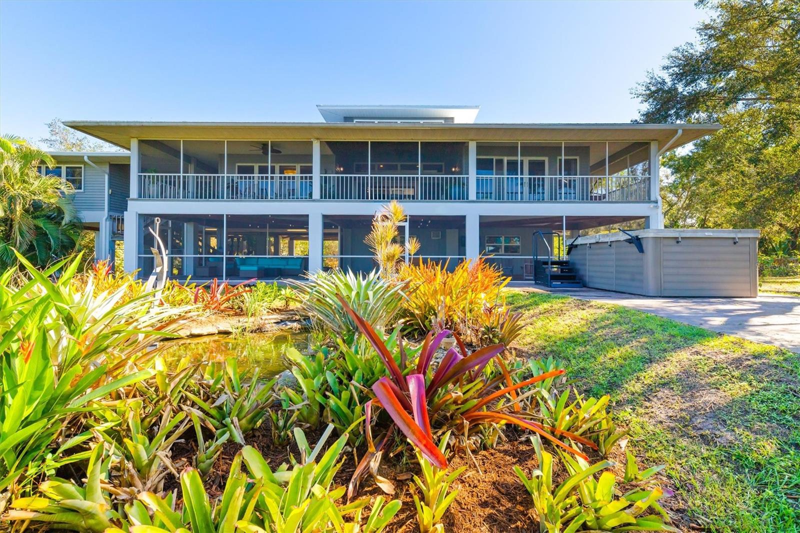 Welcome to Your Luxurious Private Sanctuary! From the moment you arrive, this exceptional estate welcomes you with lush, mature landscaping that exudes sophistication and tranquility. The stunning Key West-style home, nestled in a private, secluded setting, offers unmatched serenity. As you approach the handcrafted, imported wooden front doors, you are greeted by an expansive living space with soaring ceilings and an abundance of natural light, setting the stage for comfort and elegance. Designed to present the best of Florida living, this extraordinary home features a loft that provides a remarkable 270-degree panoramic view. Elevated on a peaceful riverbank, the home boasts unobstructed vistas of the river and a serene mangrove island, offering an idyllic setting for both relaxation and entertaining. Large windows throughout the home invite refreshing breezes and showcase breathtaking sunsets over the Peace River Basin and Hidden Creek. Set on over 2 acres of prime land, this custom executive home offers more than 3,700 square feet of luxurious, air-conditioned living space. The thoughtfully designed split-bedroom layout ensures privacy, with three spacious bedrooms, an office/den, two and a half baths. Recent upgrades include a new metal roof and a new septic system. The property also features a full-house generator, a propane tank, and an irrigation system sourced from a private well. A separate two story building provides a two-car garage with additional potential as a guest house, office, or multigenerational living space. Inside, every detail has been thoughtfully considered. The formal dining room and family room are perfect for intimate gatherings or grand-scale entertaining. The chef-inspired kitchen is a true highlight, featuring 42-inch premium wood cabinetry, an oversized island, gleaming granite countertops, and high-end appliances. Solid wood floors lend timeless elegance, while designer lighting, custom fixtures, and refined window treatments add sophistication to every room. Outdoor living is equally spectacular. Two enclosed entertainment spaces provide serene greenbelt views, while the expansive wraparound porch on the main level provides 360-degree vistas of the lush landscape. Meticulously maintained landscaping and mature trees ensure privacy, creating an oasis perfect for relaxation or entertaining guests in ultimate luxury. For hobbyists and those in need of extra storage, the ground level features a large workshop and ample storage space, with room for tools, equipment, and recreational vehicles. A 10,000 pound boat lift and dock provides direct access to the water, ideal for fishing or enjoying a day on the Gulf. Ideally located, this home is located close to shopping and restaurants, eight miles from Interstate 75 (Exit 164), and ten miles from historic downtown Punta Gorda on Charlotte Harbor, as well as the Punta Gorda Airport (PGD). Take the next step in experiencing this magnificent estate with a virtual walk-through via the 3D tour link provided and schedule an in-person visit to fully appreciate the elegance, serenity, and luxury this exceptional property offers.