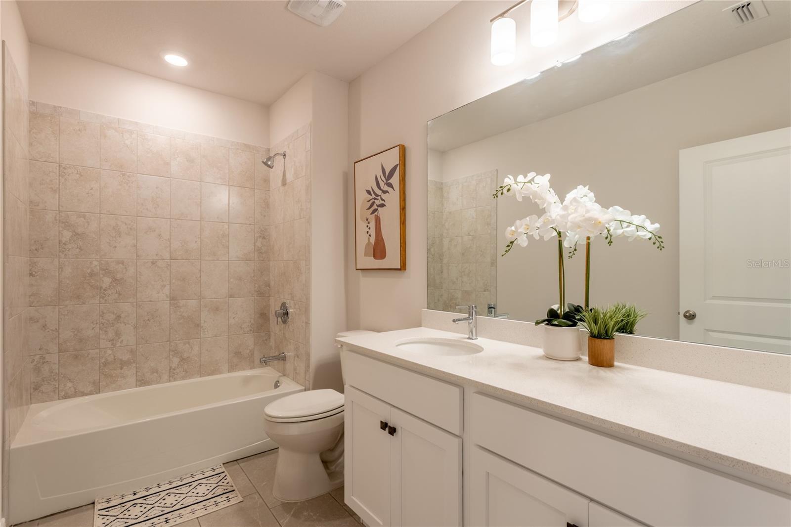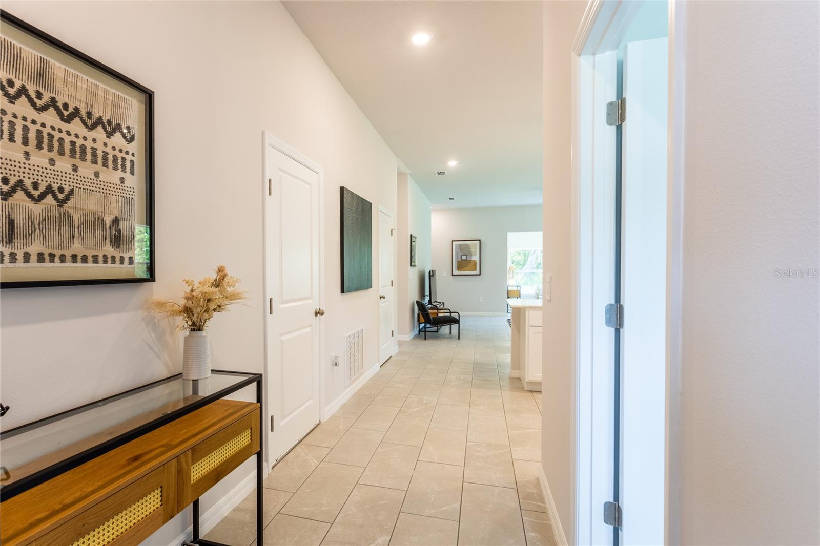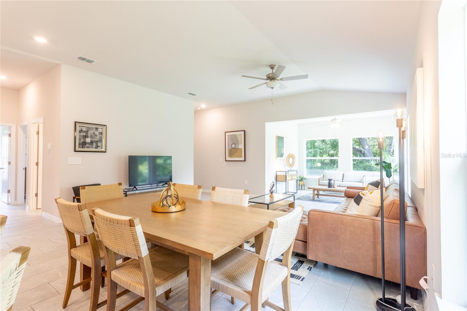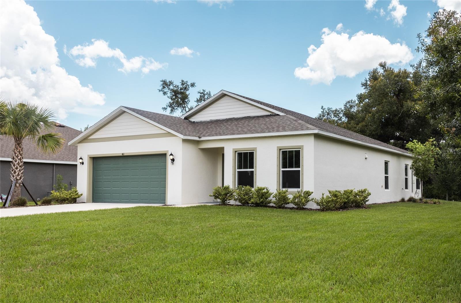 ***NEW CONSTRUCTION, NO WAIT, MOVE-IN READY!*** Elevate your lifestyle with the opulence of the Sanibel II floorplan presented by Carpenter Homes—a masterpiece within the Florida Living Series, certified by the Florida Green Building Coalition (FGBC). This home features 4 bedrooms and 2 full bathrooms. This dream home is designed and built to immerse you in luxury. As you enter, a beautiful kitchen welcomes you, with an expansive, oversized bar that seamlessly flows into the living and dining area. The finesse of soft-close, Painted White 36" cabinets, and upgraded Blanco Matrix quartz countertops add a functional touch of luxury to the kitchen. Kitchen upgrades include a Moen Align matte black kitchen faucet, garbage disposal, and sleek stainless steel energy efficient appliances. This home exudes sophistication with a vaulted ceiling that unveils a spacious Florida Room, creating an indoor-outdoor haven. Additionally, Carpenter Homes provides an upgraded brushed nickel lighting package including pendants over the kitchen bar, and vanity fixtures in both bathrooms, accenting the overall lighting design. Brushed steel finish ceiling fans in each bedroom, as well as the great room, helps to circulate air flow and keep you cool in the Florida weather. Complimenting the expansive living area is Torino 12x24 grigio (gray) ceramic tile flooring. The Owner's suite is a sanctuary of indulgence, showcasing dual sinks, impeccably tiled Magnisi White 8x12 walls in the shower, and a generously sized walk-in closet. The home boasts Magnisi White 8x12 upgraded tiled walls in in the second bath/shower, a Blanco Matrix quartz vanity top, and Moen Align chrome faucets and shower/tub trim kits. The ampleness of this home continues with a utility room, and additions such as energy-efficient R-4.1 insulation on concrete exterior walls, Taexx tubes for pest control, and fabric hurricane shutters for every window. The Florida friendly landscaped yard is complemented by an irrigation system with a rain sensor to help maximize efficiency. The expansive 2-car garage, complete with garage door opener and two remotes, not only provides ample space for your everyday needs but also ensures the utmost convenience and versatility for all your storage and parking requirements. Step into a world where extravagance meets eco-conscious living—your forever home awaits, a testament to timeless elegance and modern sustainability. Available to view any time!