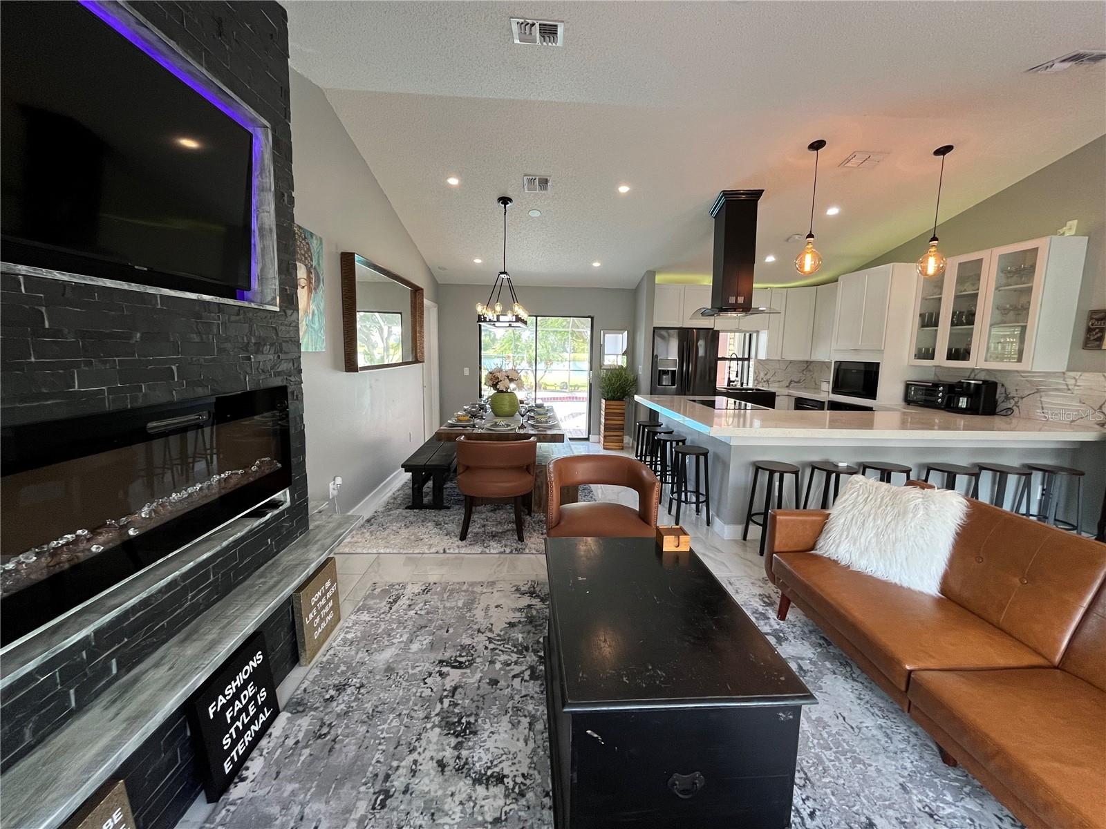 Welcome to your dream waterfront home! This exquisite property boasts a blend of elegance and charm, featuring four spacious bedrooms and three bathrooms. Impeccably designed with stainless steel appliances and granite countertops, the kitchen is a culinary enthusiast's delight. Guests can sit at the granite bar and enjoy conversation while the host prepares the meal. From the moment you step inside, you'll be captivated by the decorative niches that add a touch of sophistication to the open living space. The dining area offers a unique dining experience overlooking the pool. The third bathroom conveniently opens onto the lanai, perfect for entertaining guests by the pool. Speaking of the pool, it’s heated and overlooking at a beautiful lake, creating a serene oasis for relaxation and enjoyment of our year-long gorgeous weather (and escaping some of that summer heat). This property is not just a home, it's a lifestyle of Florida. This residence is truly a gem waiting to be discovered. And the best part? It's being sold with an option with all furnishings included, so you can move in and start living your best life from day one. The roof is new since 2023. The location of your dream home is within minutes of Interstate 75 to state road 776 that leads you to the Gulf of Mexico beaches of Englewood and Boca Grande! Discover Manasota Key and the intercoastal waterways! World class fishing in Charlotte Harbor! Boating up the Myakka and Peace Rivers will take you back in time! Don't miss out on this rare opportunity to own a piece of paradise!