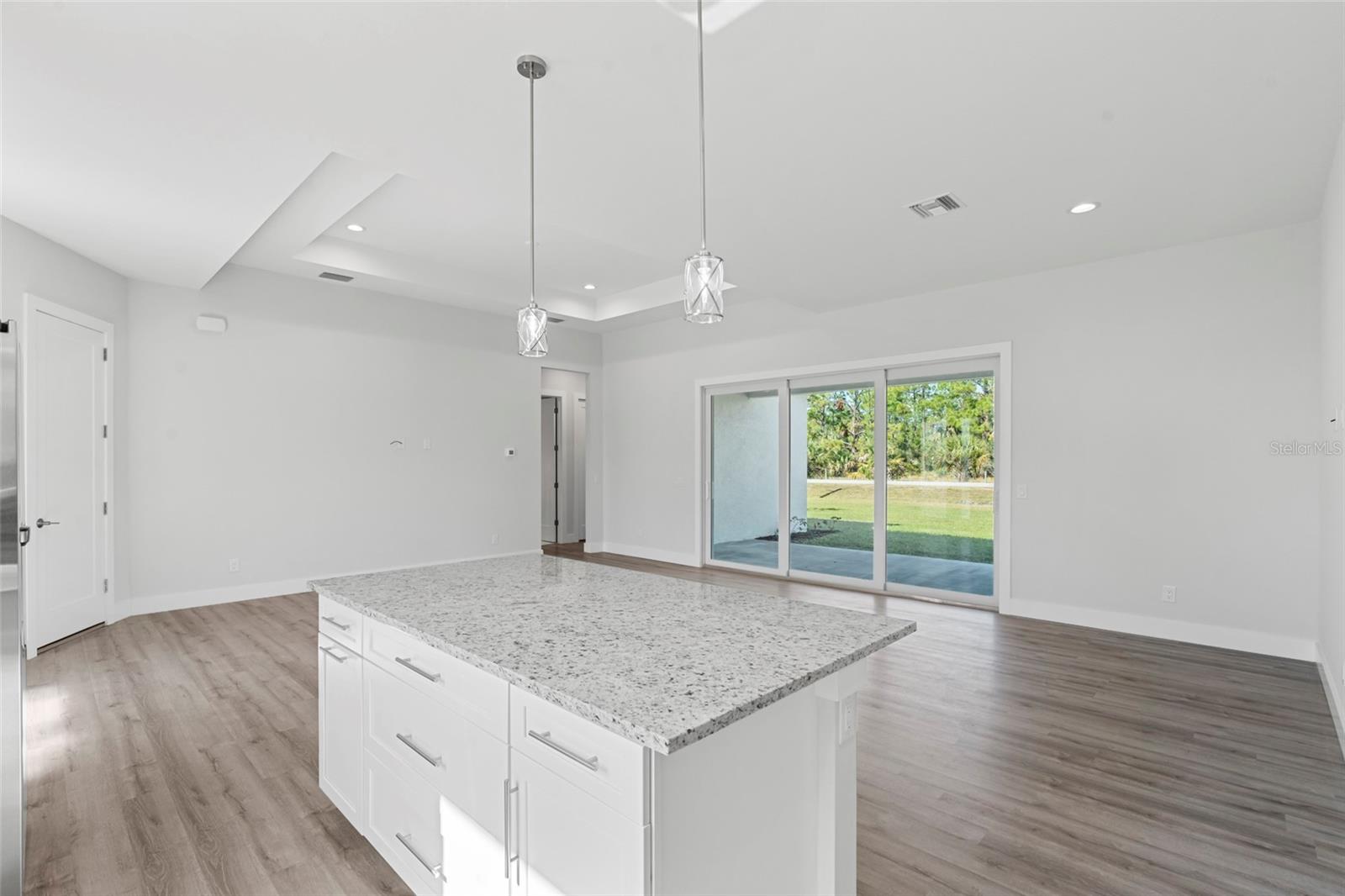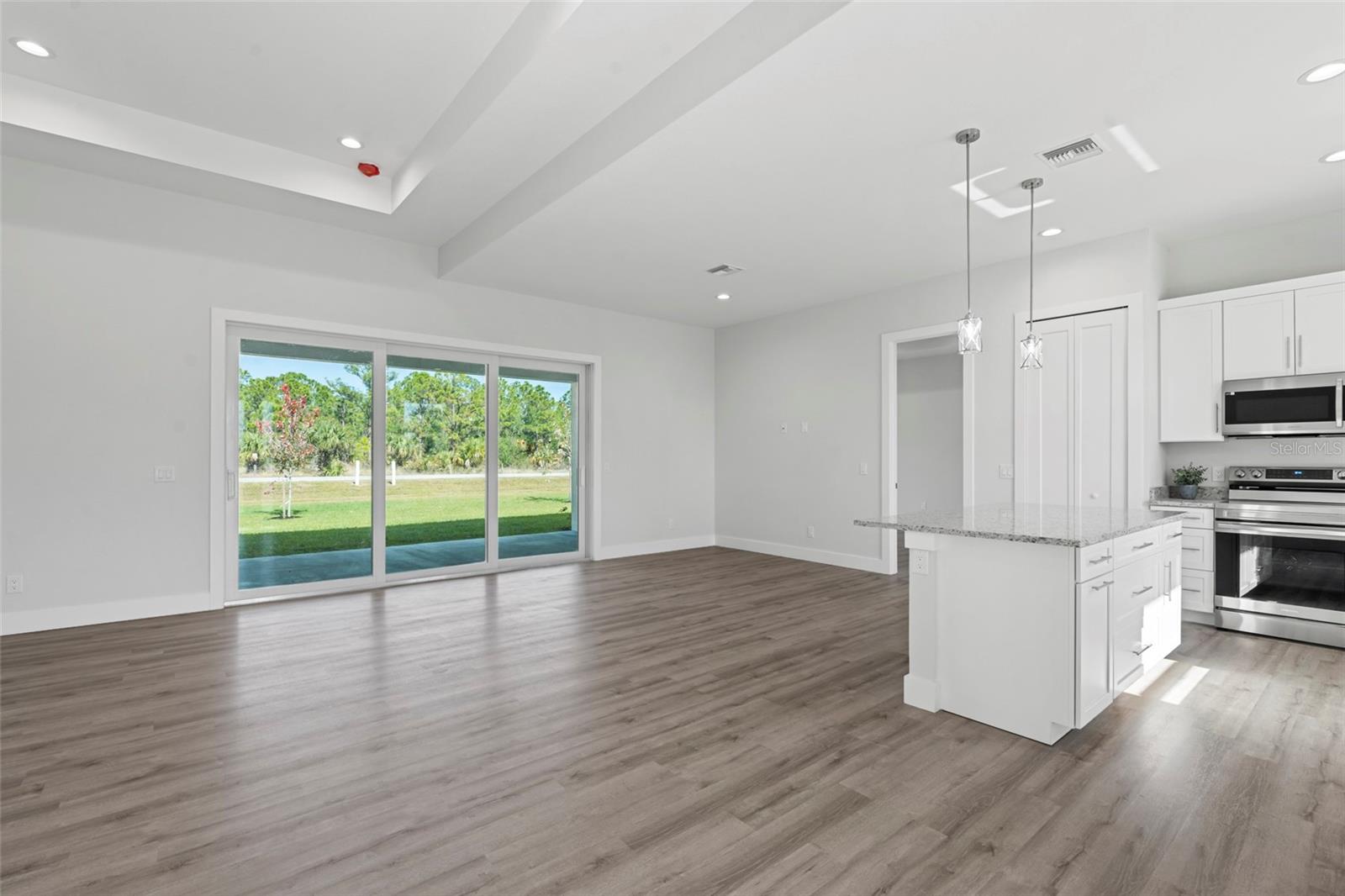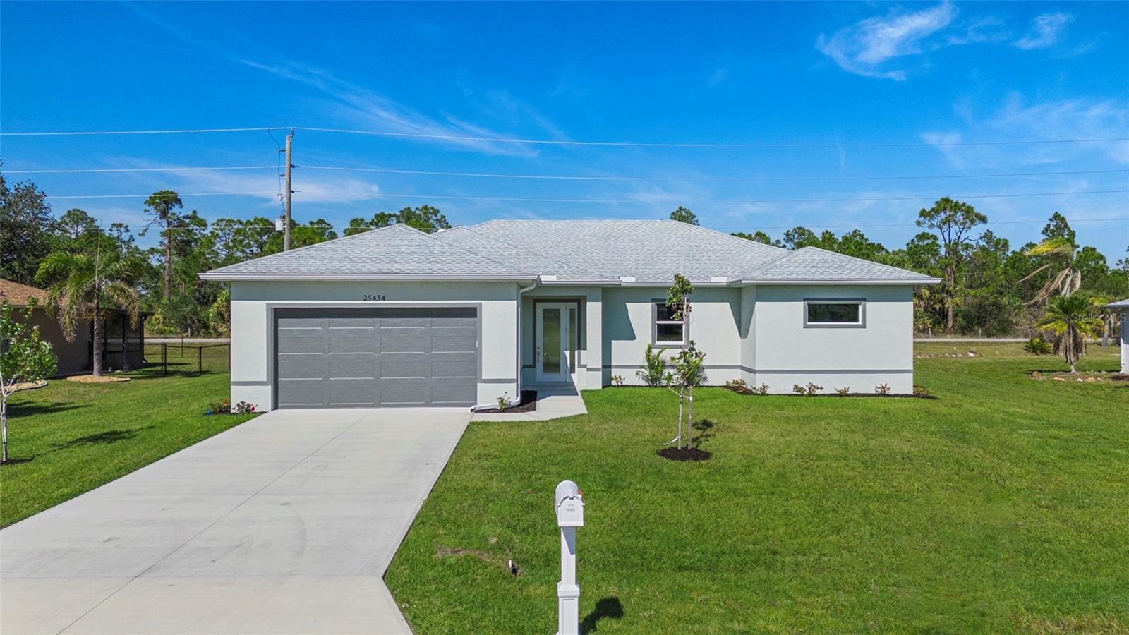 Welcome to your dream home in Burnt Store Village! This beautifully designed new construction features 3 spacious bedrooms, 2 modern bathrooms, and over 1,800 square feet of stylish living space. The gourmet kitchen is a true highlight, complete with luxurious granite countertops, Moen faucets, soft-close wood cabinetry, and high-quality stainless steel appliances, including a large stainless steel sink. With 8-foot doors, soaring 10-foot ceilings, a 12-inch tray ceiling in the family room, and impact-resistant windows and sliding glass doors, this home is both elegant and built to last. The expansive lanai offers the perfect space for outdoor relaxation, with ample room to add a pool and create your own backyard oasis. Conveniently located minutes from Burnt Store Marina, dry storage, restaurants, and golf courses, this property provides access to the best of Florida living—all while being situated outside of flood zones for added peace of mind.