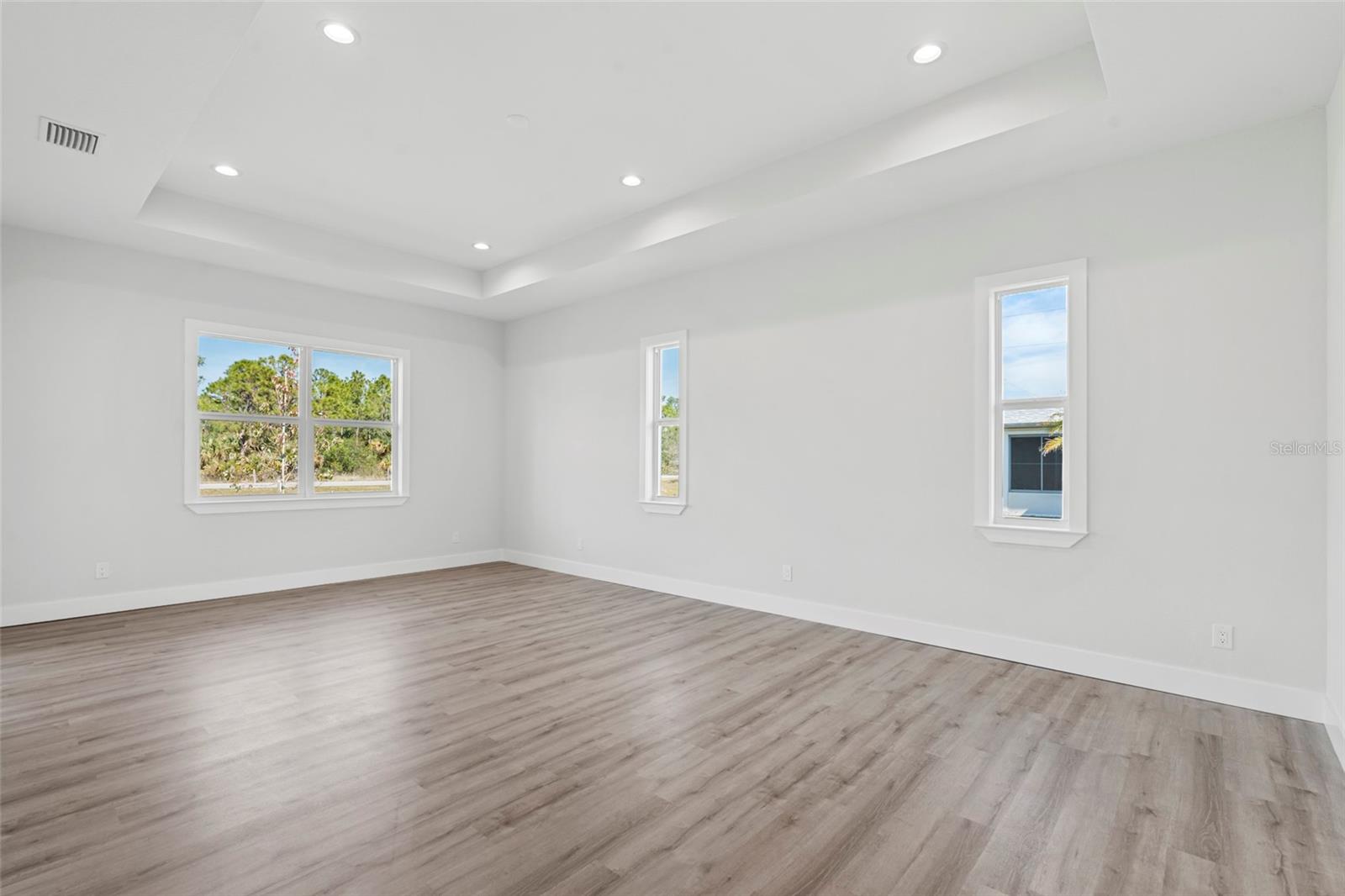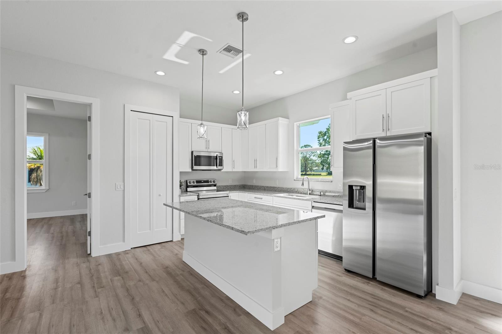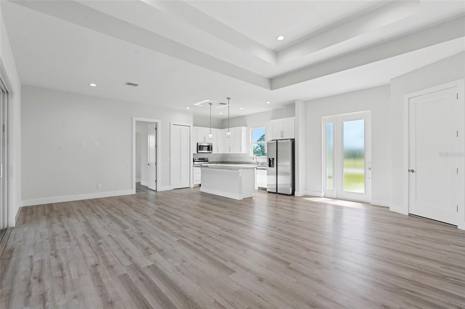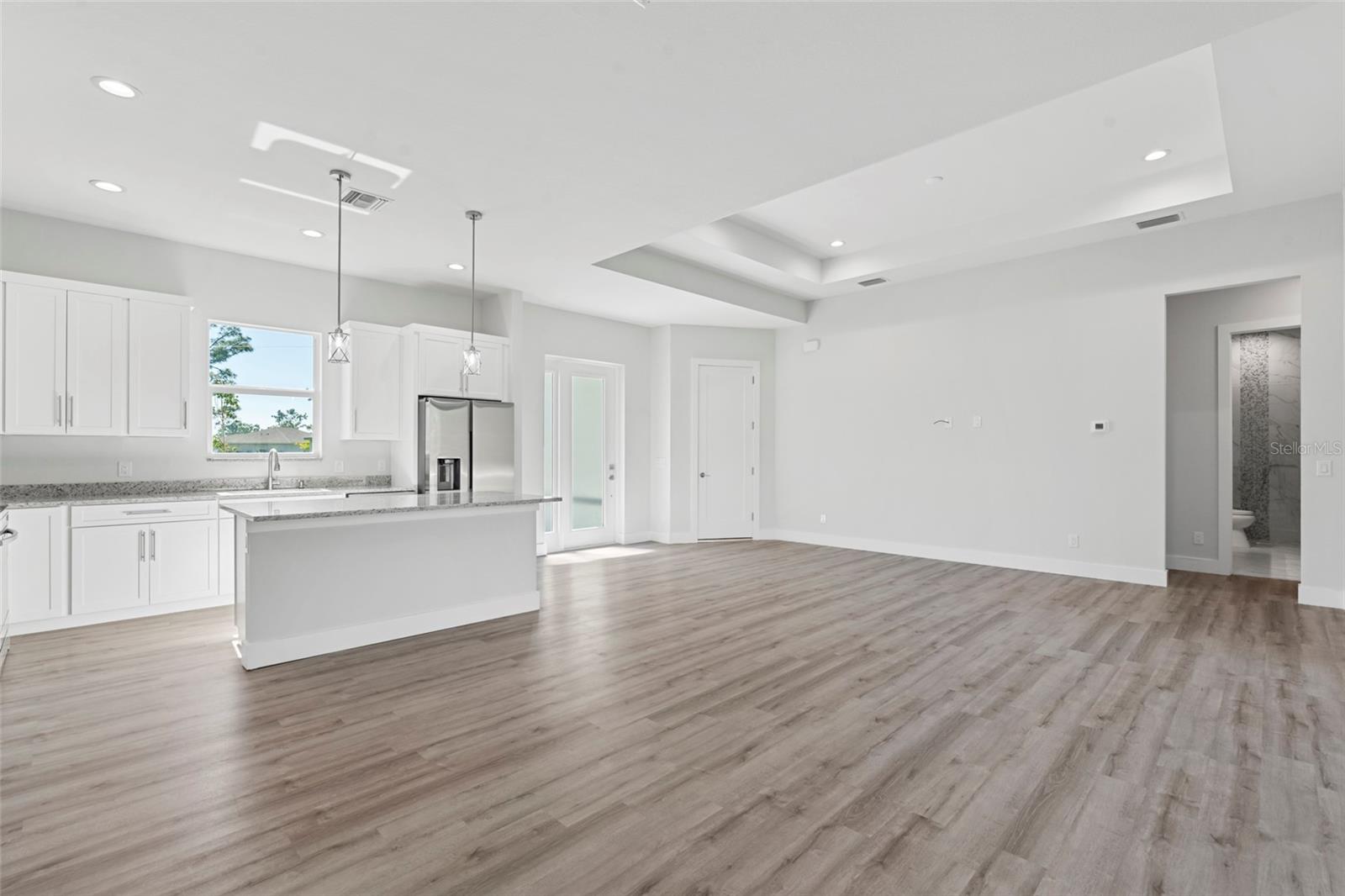 Welcome to your dream home in Burnt Store Village! This beautifully designed new construction features 3 spacious bedrooms, 2 modern bathrooms, and over 1,800 square feet of stylish living space. The gourmet kitchen is a true highlight, complete with luxurious granite countertops, Moen faucets, soft-close wood cabinetry, and high-quality stainless steel appliances, including a large stainless steel sink. With 8-foot doors, soaring 10-foot ceilings, a 12-inch tray ceiling in the family room, and impact-resistant windows and sliding glass doors, this home is both elegant and built to last. The expansive lanai offers the perfect space for outdoor relaxation, with ample room to add a pool and create your own backyard oasis. Conveniently located minutes from Burnt Store Marina, dry storage, restaurants, and golf courses, this property provides access to the best of Florida living—all while being situated outside of flood zones for added peace of mind.