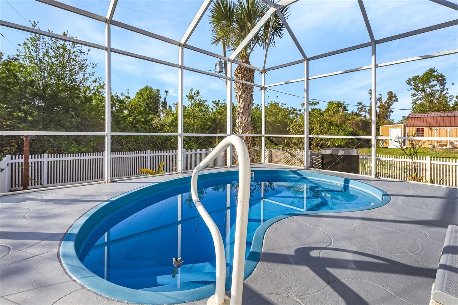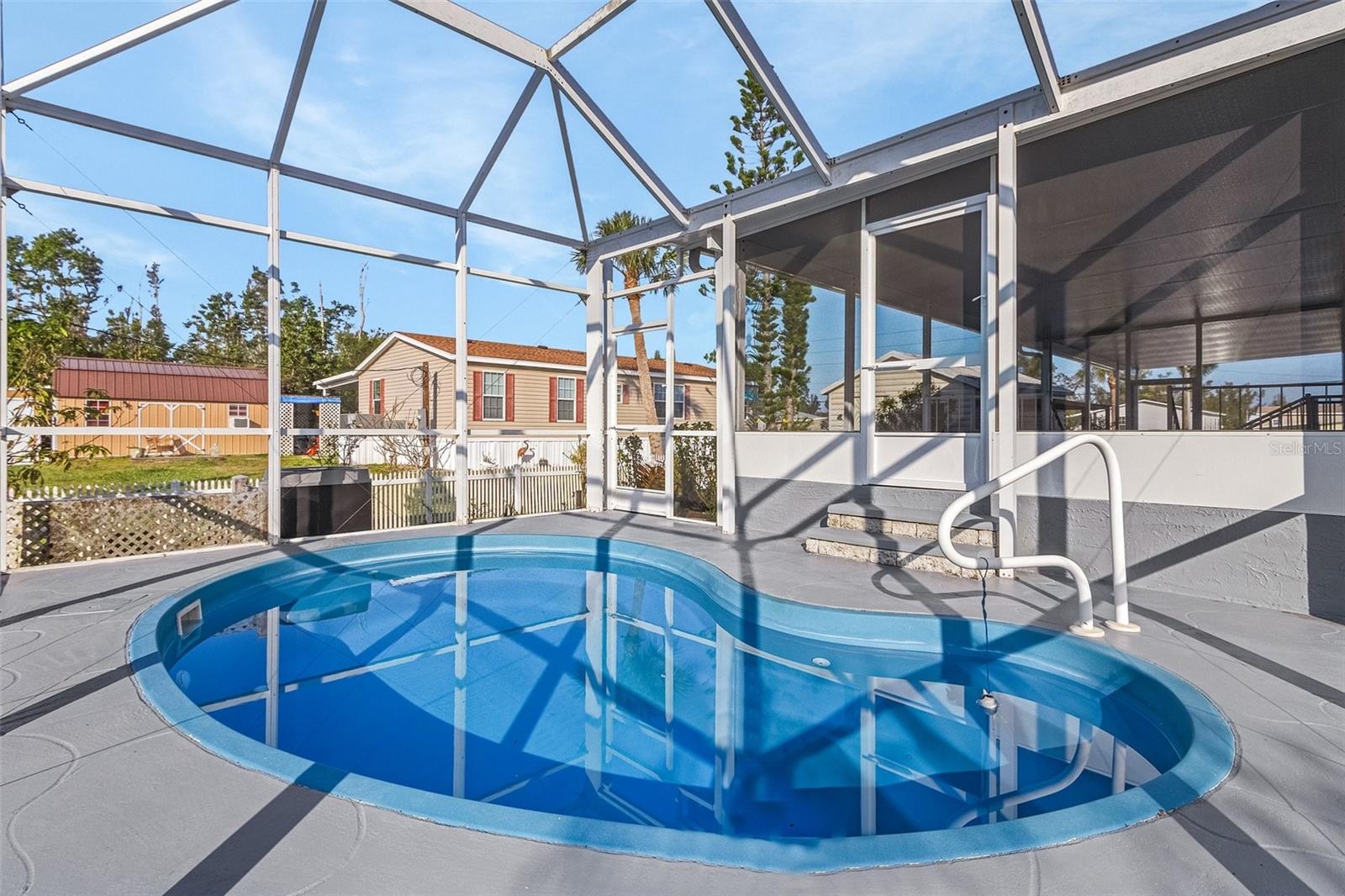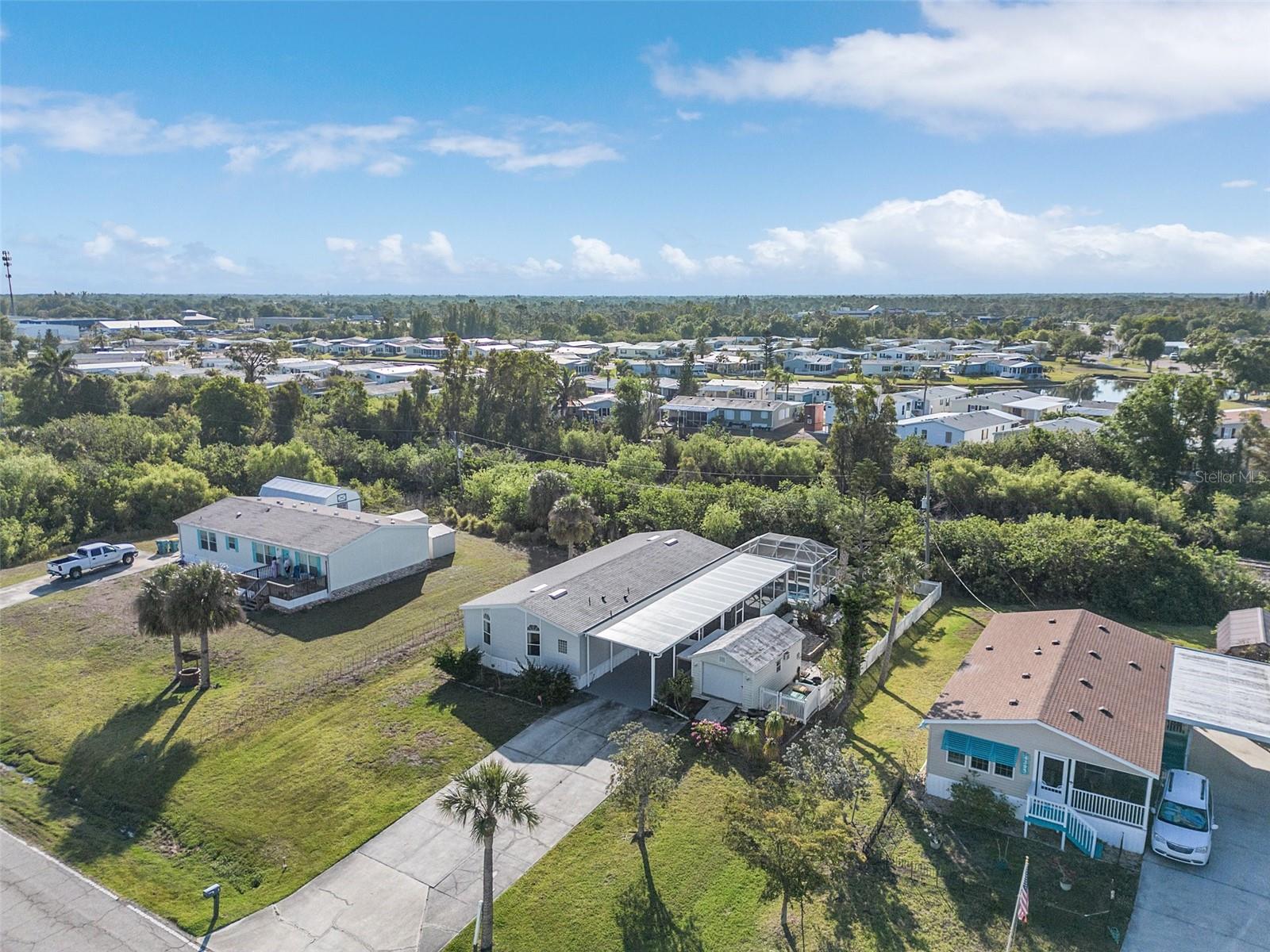 Discover your Florida Oasis home with this exquisite 2-bedroom, 2-bathroom manufactured pool home, complete with a bonus room, set on an expansive 11,173 square feet of your own private land. Step inside to an open and spacious layout featuring cathedral ceilings, crown molding, and French doors. The interior is further enhanced by an inside laundry area and a versatile bonus room that can be tailored to your needs. The master bath is a luxurious retreat with dual sinks, a walk-in shower, and ample storage. The home has been thoughtfully upgraded, featuring a remodeled kitchen and master bathroom. Enjoy peace of mind with a newer roof, water heater, pool heater, and air conditioning system. Say goodbye to HOA fees and enjoy the freedom of owning this remarkable property. Convenience is at your doorstep with this ideally located home. Just a quick 2-minute drive to the Darst Park Boat Ramp and approximately 7 minutes to both the PGD airport and Laishley Park Marina. Whether you're a frequent traveler or water enthusiast, this location offers the best of both worlds. This property boasts plenty of room to store your RV or recreational toys, with the added convenience of an RV plug-in. The expansive screened patio area seamlessly connects the home to the pool area. It's an ideal spot for lounging, exercising, or entertaining guests. Dive into the 16 x 9.8 pool, surrounded by a screened enclosure. A custom-built 12x20 shed, equipped with electrical, lighting, and a space for a window box A/C, provides versatile storage options. One side offers general storage or the potential for an additional bonus room, while the other serves as a utility shed perfect for a workbench and lawn equipment. Experience the perfect blend of luxury, convenience, and relaxation in this beautiful home. Don't miss the opportunity to make it your own!