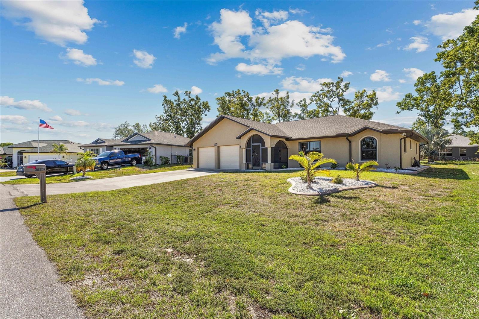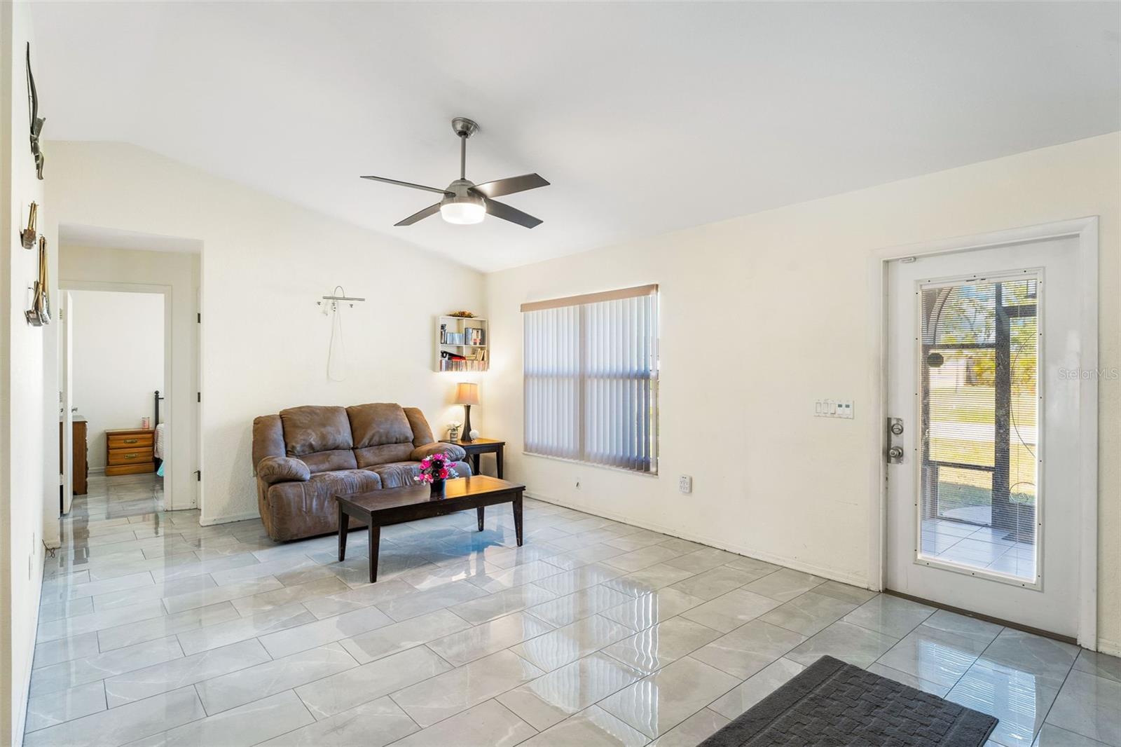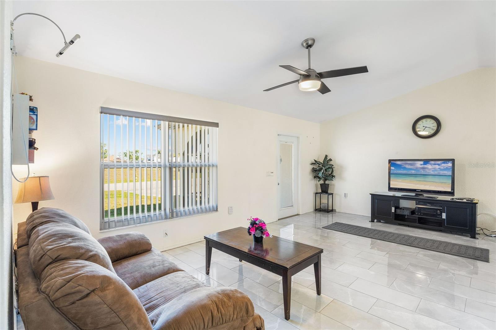 Wow! Just move in and enjoy! Spacious home with a large family room off the back. Screened Lanai. Updated kitchen with separate dining. Upgraded bathrooms. New tile floors thru out. New lighting fixtures and blinds. Vaulted ceiling makes the home feel spacious. Family room features high ceiling, and wet bar for entertaining. The kitchen features new flooring, cabinetry and countertops. Large primary suite with a walk-in closet, and updated bathroom. The roof and A/C are new in the past few years. Impact doors and windows. Beautiful large yard with new landscaping. Room for your future South facing pool! Area of newer homes.