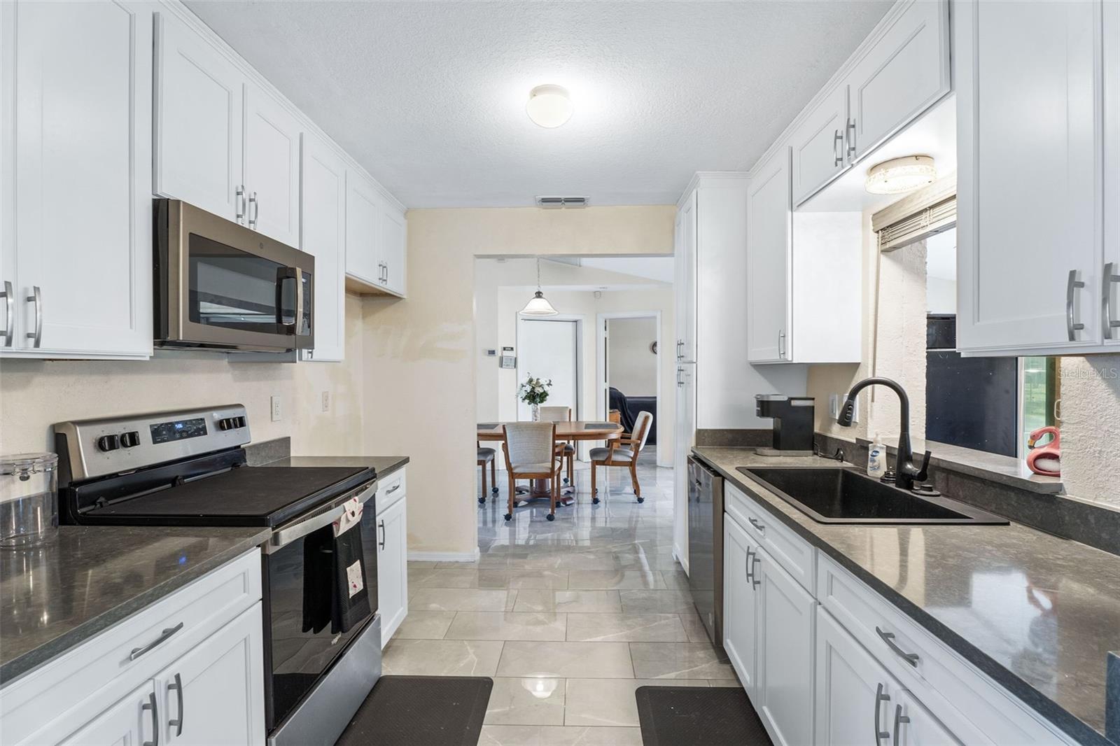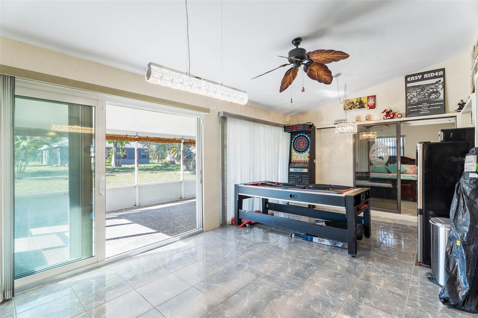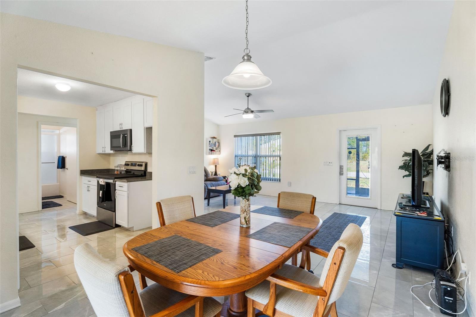Wow! Just move in and enjoy! Spacious home with a large family room off the back. Screened Lanai. Updated kitchen with separate dining. Upgraded bathrooms. New tile floors thru out. New lighting fixtures and blinds. Vaulted ceiling makes the home feel spacious. Family room features high ceiling, and wet bar for entertaining. The kitchen features new flooring, cabinetry and countertops. Large primary suite with a walk-in closet, and updated bathroom. The roof and A/C are new in the past few years. Impact doors and windows. Beautiful large yard with new landscaping. Room for your future South facing pool! Area of newer homes.