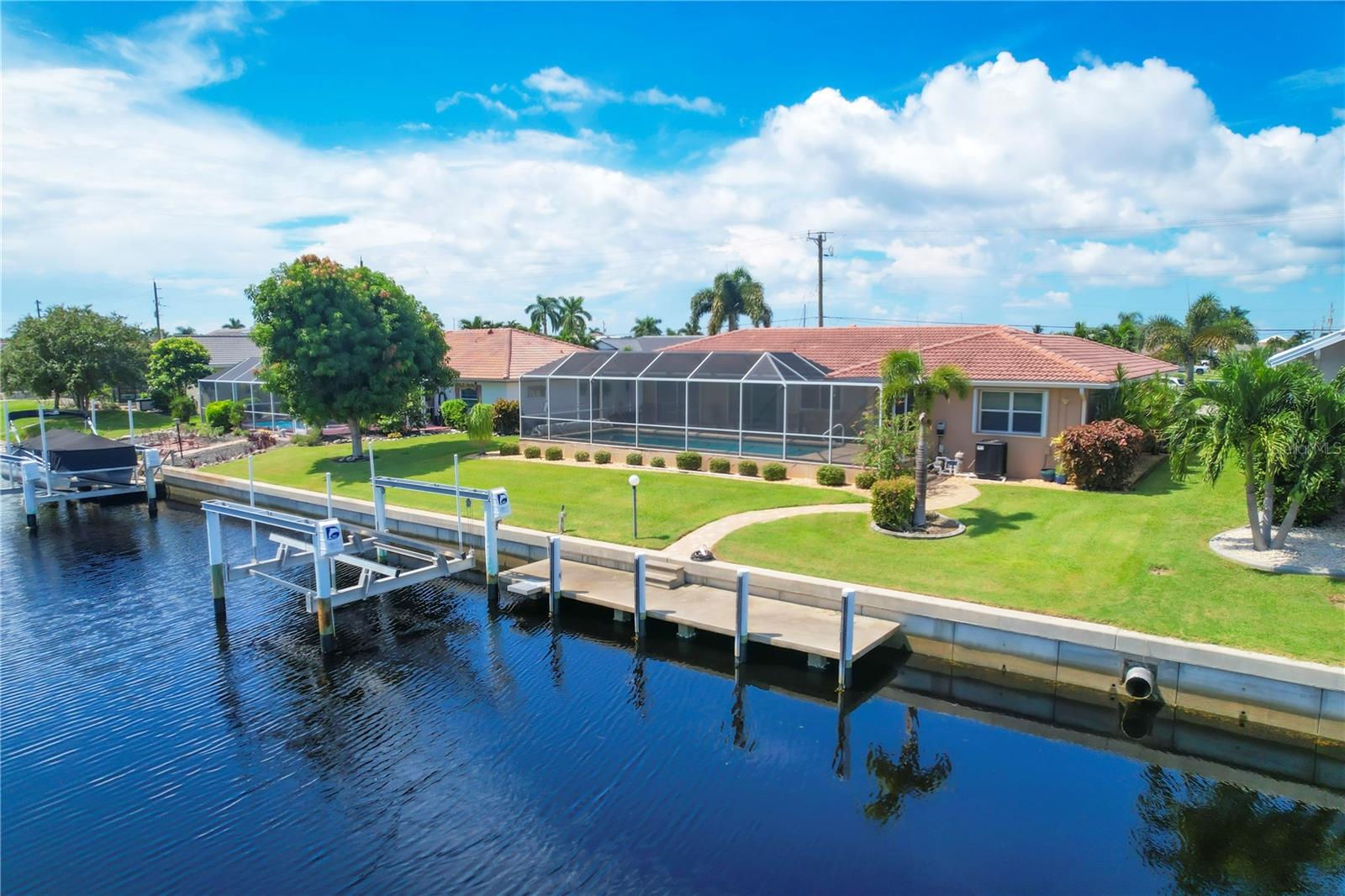 This immaculate waterfront canal pool home with gulf-access is located in the charming neighborhood of Punta Gorda Isles and has just a short distance (15-20 min.) to open waters where boating and fishing is all about and comes with a rear dock incl. a 16,000 lb. lift. Close To the historic Punta Gorda area and downtown with many local events, close to FISHERMANS VILLAGE with all its shops and great restaurants in a quaint downtown atmosphere. Punta Gorda has so much more to give with its miles of waterfront canals and golf courses, even an airport with direct flights from many cities, and RSW airport is also easily accessible from I75. This light and bright home has a beautiful updated contemporary kitchen with GRANITE COUNTERTOPS and TOP-OF-THE-LINE Samsung appliances. A must see is the updated shower in the master bathroom with the frameless glass door. The spacious L-shaped living room provides many relaxing areas. One of the highlights is the saltwater LAP pool, one of the largest private pools in that region. The brick paved pool deck invites you to spend a lot of time outside and enjoy the Florida life style. The concrete seawall maintained by the city! ***WIND MITIGATION report and 4-POINT INSPECTION report are available*** Come and see me. See my Virtual Tours, I'm gorgeous!!