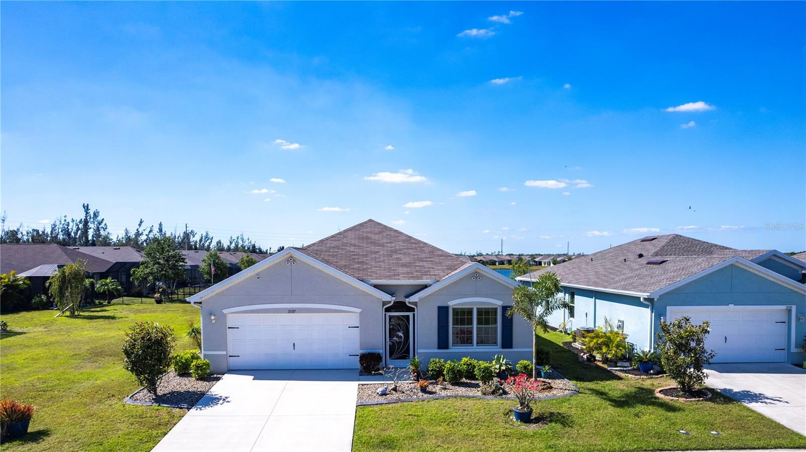 Stunning is only one of few words that could describe this home. Classy & Stylish yet can be cozy and comfortable. This home has underwent a transformation to include upgrades & updates to please the pickiest person. Kitchen - Granite Countertops w/Wall Backsplash, Granite on Large Island w/Gray Stone Curved Sink & Farmhouse Style Faucet. Navy Blue Appliances like a Bespoke Double Door Refrigerator w/Bottom Freezer and 2 types of ice cubes; Smart Stove w/Air Fryer, MicroHood & Quiet Dishwasher. All windows are Hurricane Impact Windows by Renewal by Anderson as well as the Sliding Door; a Fontana Traditional Style Impact Glass in Front Door by Active Doors guarded by a Security Door with Custom Ornamental Dolphins. New Light Fixture above Island & Dining Table by Light Ideas; Ceiling Fan in Bedroom w/Remote; '3' 52" Raindance Outdoor Fans & Remotes in Lanai by Dave's Fan City. Absolute Aluminum built the Lanai and Screens. 4' SALT WATER HEATED POOL w/ Deck Jets & Hot Tub with a Waterfall into the Pool. Pool & Hot Tub can be controlled with your phone and change the colors of the lights. Gorgeous Travertine Tile surround the pool along with a walking path to the pool equipment & trash containers. The Laundry Room offers a new Barn Door & hanging bar inside. New Gutters & Downspouts, Cement Curbing surrounds the home for landscaping. The Lanai was built with Full View Screening & a Pool Towel Rack. Crown Molding & Attic Access Door added w/ladder & plywood installed in attic for storage space. Added Landscaping consists of 3 - 3 trunk Christmas Palms; 1 Bottle Palm; 7 Pigmy Palms & 1 Chinese Fan Palm. The garage door recently had 2 door springs replaced with 7 year warranty cables, drums, shaft, side brackets & bearings. The list goes on and on! This home is it! The one you have been dreaming of that should last you for many years to come. Close to Punta Gorda Airport - Fine Dining - Beaches & World Renowned Fishing! You've got it all.