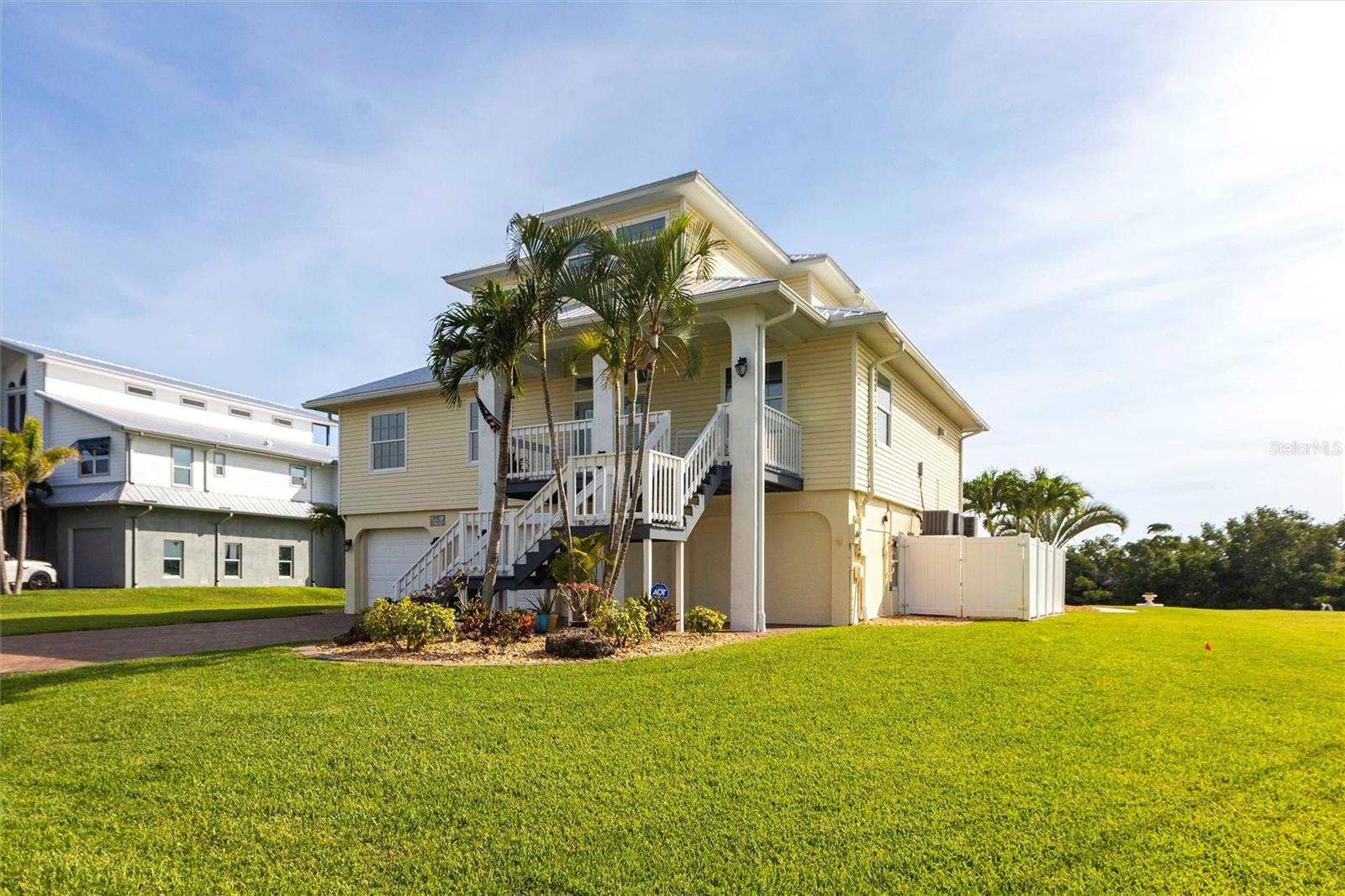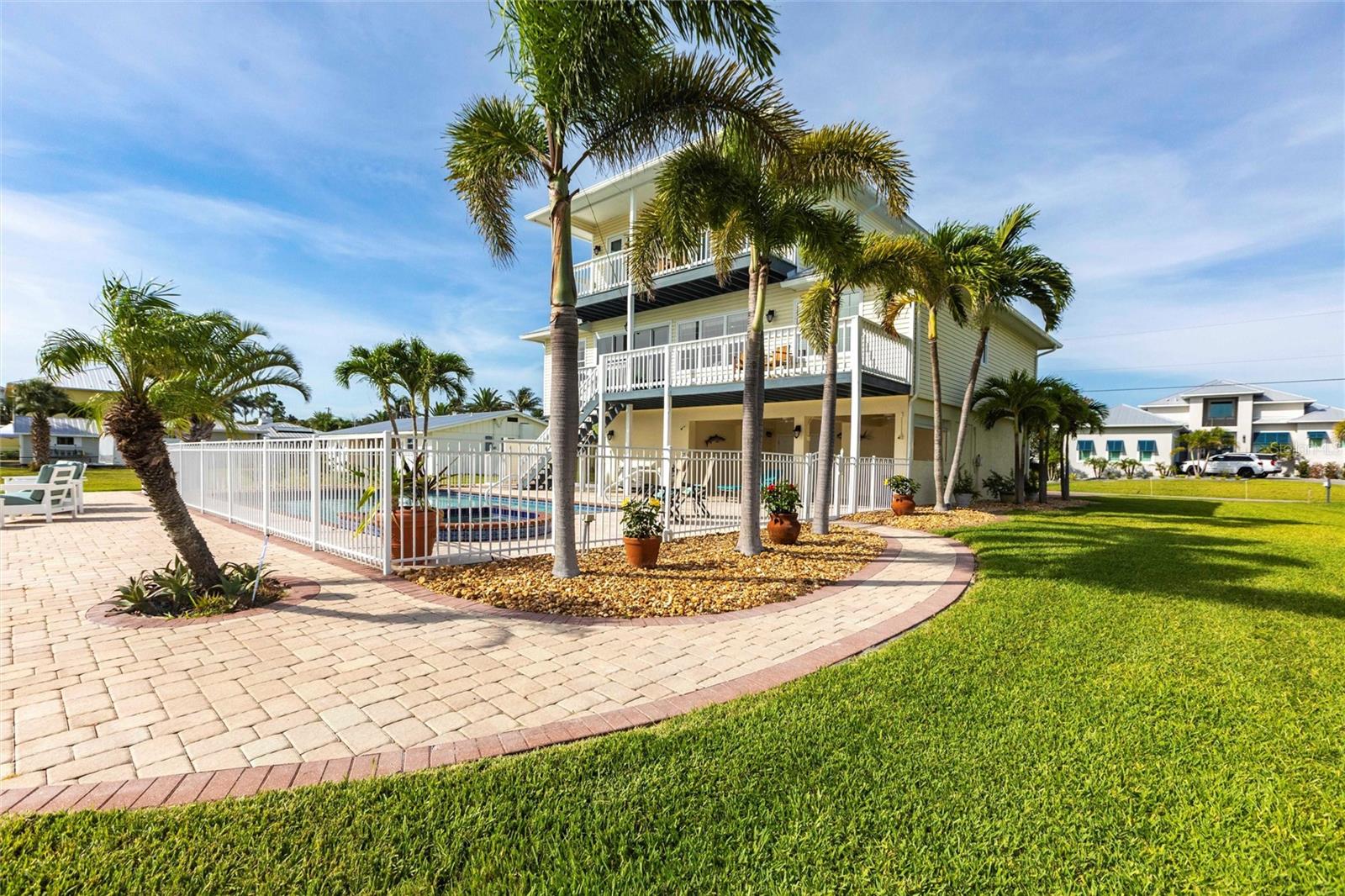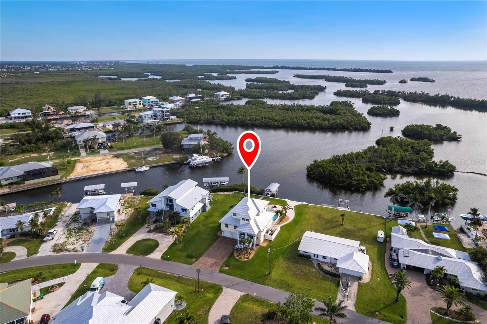 The is absolutely the very best waterfront view, with an outstanding upgraded stilt home on the market today, in “Pirate Harbor”. Every evening’s sunset comes with an endless view of this beautiful tropical water. This view will remind you why you live in Florida ! This is a true boating, secluded beach exploring, and fishing paradise. To have no neighbors behind you is almost priceless. Nothing in your backyard’s view other than water and islands, many species of egrets and waterfowl, manatee, and an occasional bottlenose dolphins exploring the backwaters. Fishing right from this dock and seawall has produced some of the freshest of table fare for the current owners. The home is open and bright, and full of custom and upgraded features. Contact the Listing Agent, or your Agent, for a detailed list of the home’s upgrades and features. Some of the home’s features include Italian Porcelain plank and Bamboo wood flooring, a dazzling Kitchen with custom, one of a kind, exotic, natural stone "Quartzite" counter tops (hand chosen by the homeowner from her family's 39-year Marble & Granite Stonework business in Tampa, Florida) All “top of the line” KitchenAid appliances. Other features include a six burner gas range & double ovens. Custom solid Cherry wood kitchen cabinetry with “above and under” custom cabinetry lighting. The kitchen features were designed for a gourmet cook, or a Chef. The openness of the Great room was built for light, and views. There’s also a beautiful wet bar with refrigeration convenient to this entertaining room. The upper level of this home is all private Master suite. Which includes a sitting area that can be used as a private office, or just a private living space to relax. Both of these areas open to a private deck. The long distance views from this upper level deck are almost indescribable. A different sunset painting the waterfront view, daily. There’s a large, conveniently located laundry room with an upstairs laundry chute. A versatile bottom level, large room overlooking the pool/spa area and the waterfront, now being used for an entertaining game room, this space may be utilized for so many different functions. A ground level professional’s office, an exercise area, a guest area for visitors, family and friends. Just to name a few. The living and boating from this home can be described in one word. “Ultimate”. Direct access into the historic Charlotte Harbor, Boca Grande Pass, the Peace River, all the beaches, to include many private beaches. Boating to the Gasparilla Island State Park, and the Cayo Costa State Park. No bridges, and no traversing through narrow residence lined canal ways. If you are wanting to live, and entertain your family and friends from more of a private setting with no backyard neighbors, boasting long distance waterfront views, this mini-resort lifestyle might be just for you. Especially if boating and fishing are priorities in your life. Living here you would enjoy the spectacular view for yourself every morning, every evening, and every day. To treat yourself to the heated spa, and a refreshing swim in this gorgeous pool would make a great relaxing way to close out any day. This home and property have too many desirable features to list here. One really needs to see this home in person to get the feeling of how it would be to live at this beautiful, tropical, waterfront location. Call today for a private Showing.