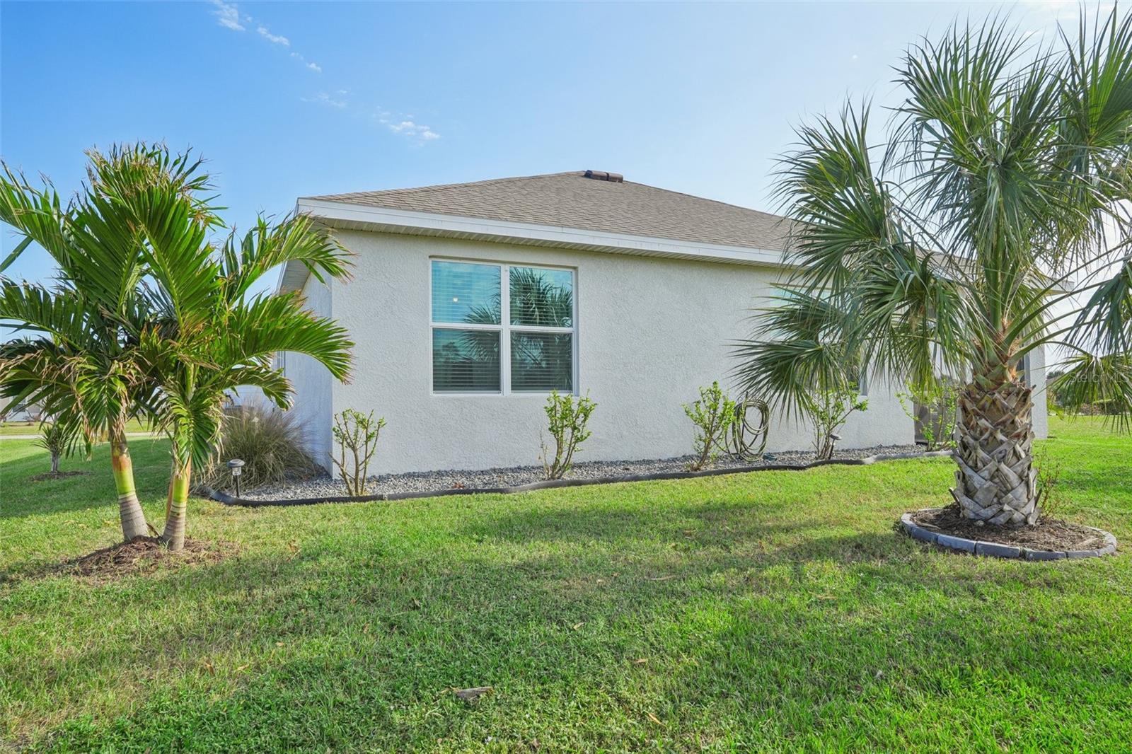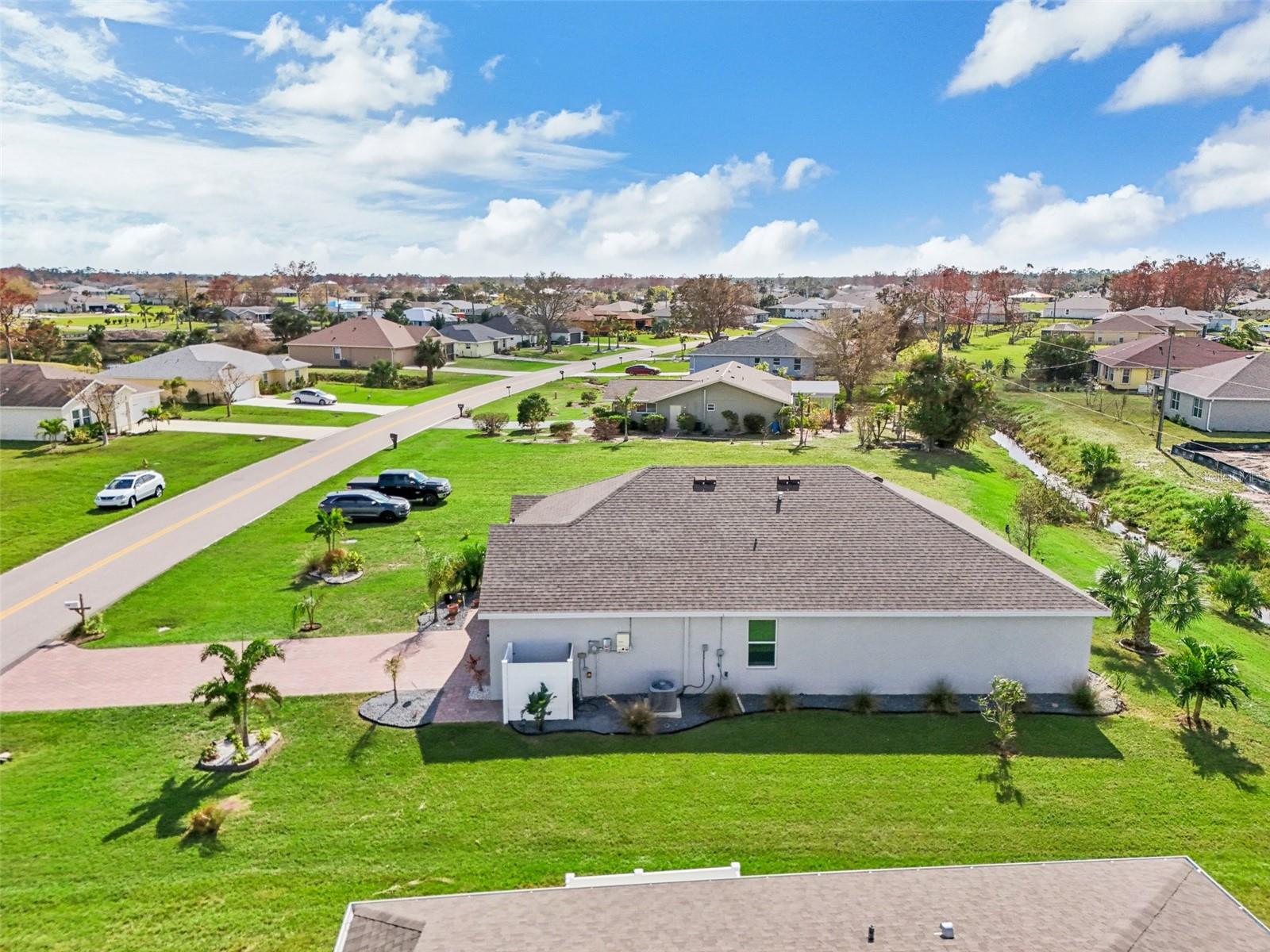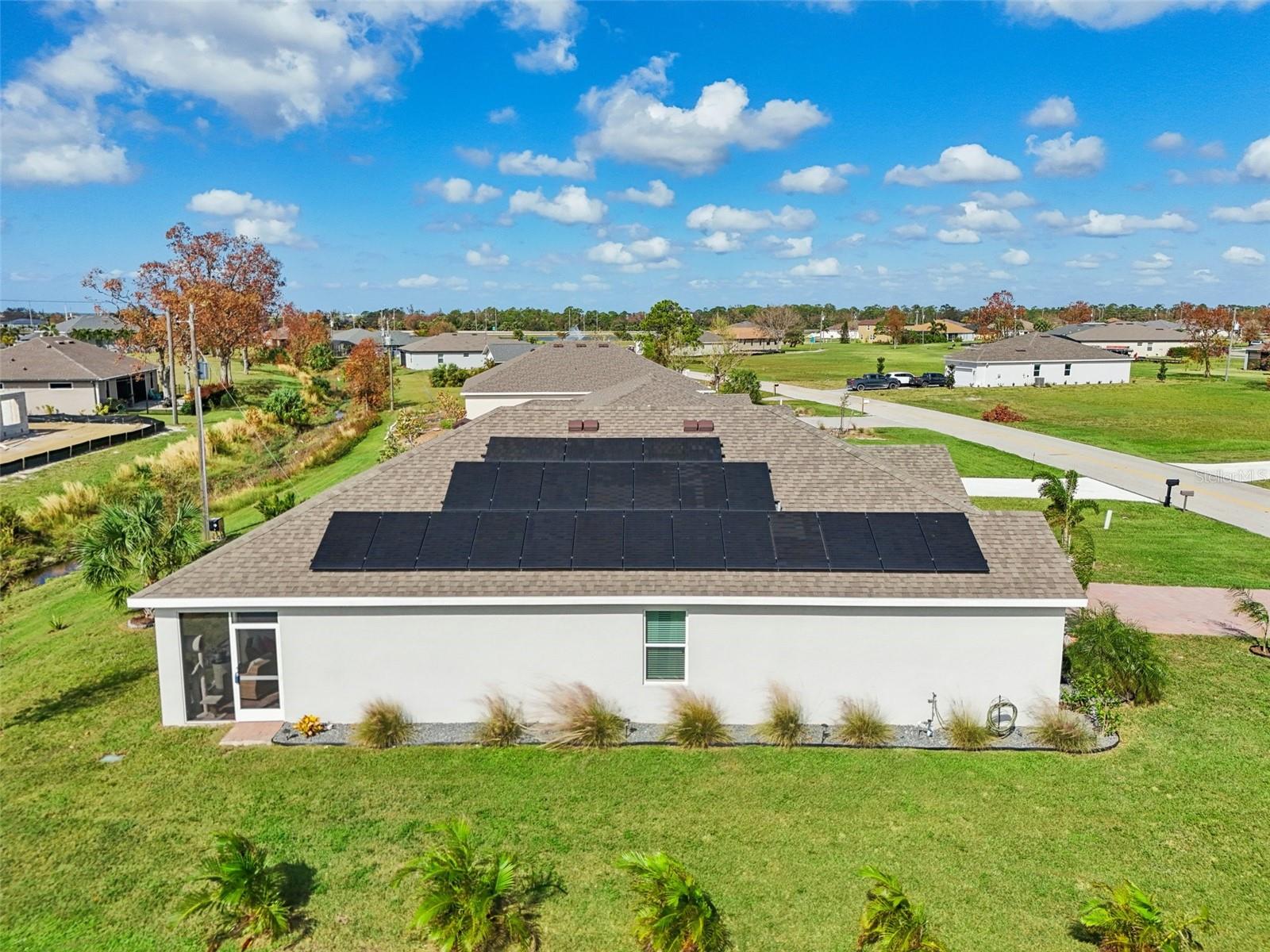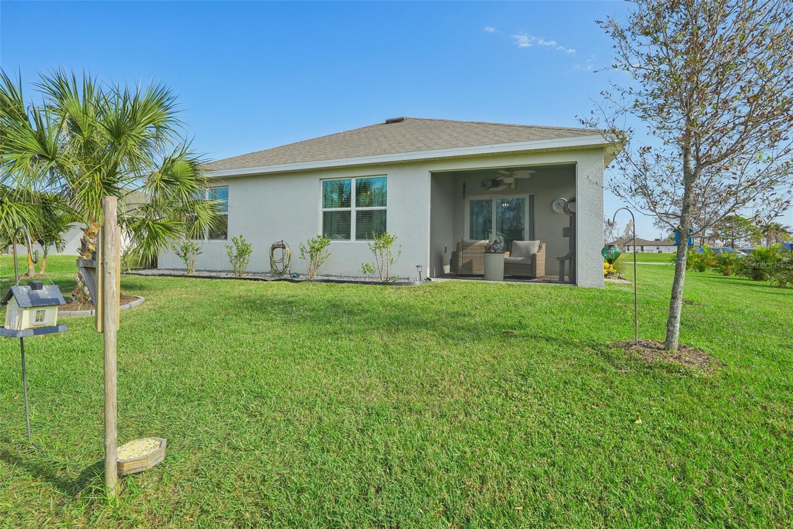 Welcome to this stunning 4-bedroom, 2-bathroom home in the vibrant Burnt Store Village community. Built in 2023 (new construction without the wait), this modern gem offers both style and efficiency—thanks to solar panels that keep your average electric bill under $30! Step inside to a beautifully upgraded interior featuring an open-concept layout. The gorgeous kitchen is a chef's delight, boasting quartz countertops, a spacious island, and a deep sink, all overlooking the living and dining area. Luxurious touches like accent walls and shiplap add character throughout the home. The split floor plan ensures privacy, making this property perfect for families or retirees. Enjoy the outdoors year-round on the screened-in back porch, a wonderful extension of your living space. Add peace of mine knowing there is an ADT security system as well! Burnt Store Village offers great community amenities including a park, playground, walking path, and picnic tables. Along with the amenities, the HOA also owns 157 acres of common ground land! Situated close to Punta Gorda airport, Fisherman’s Village, and Charlotte Harbor, this location also provides easy commuting to I75. Don’t miss the opportunity to own a move-in-ready home with the latest design and technology—no waiting for new construction! Make this energy-efficient oasis yours today.