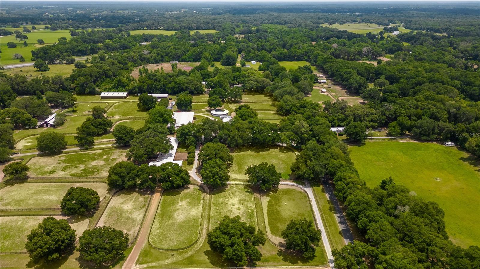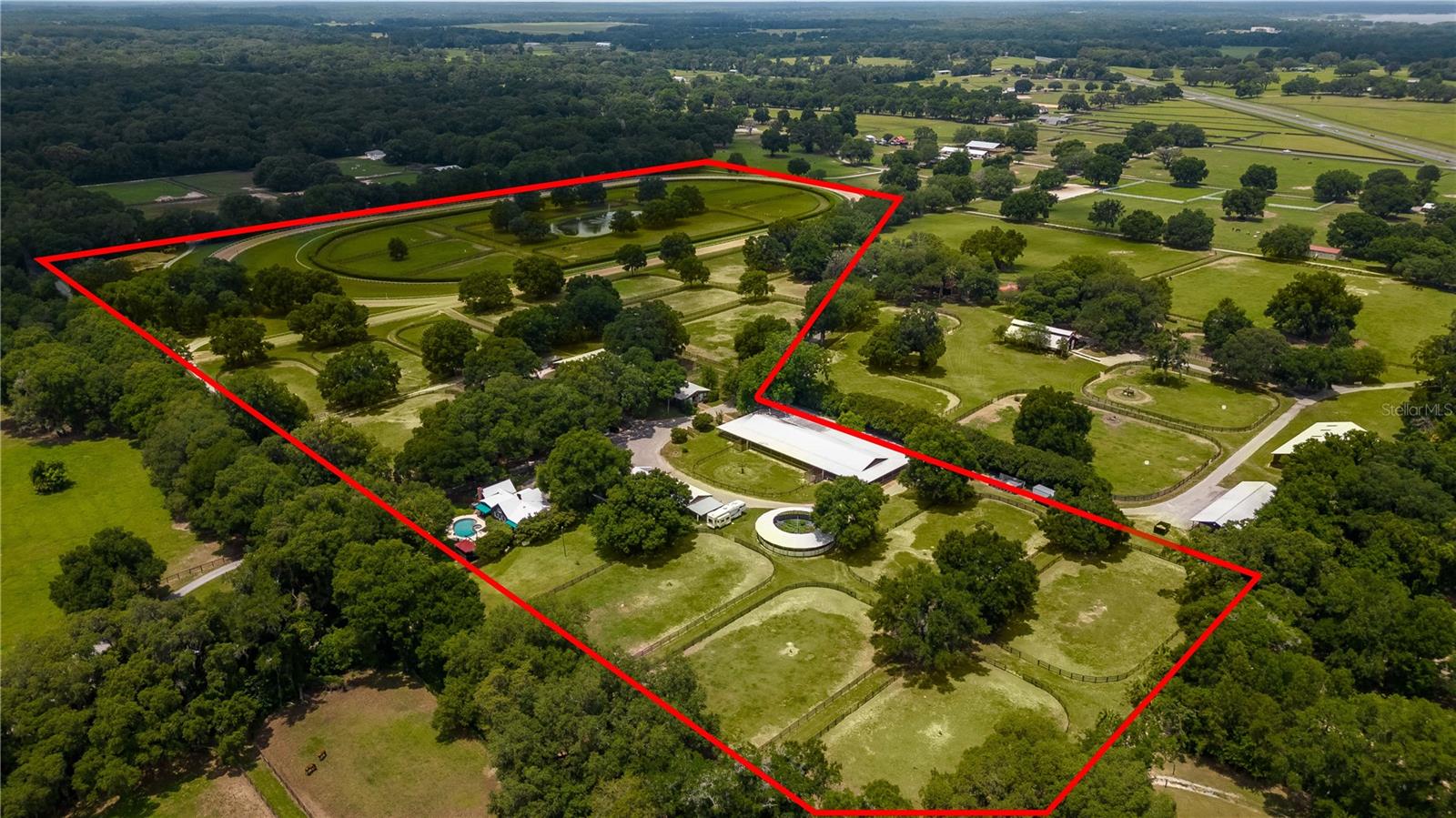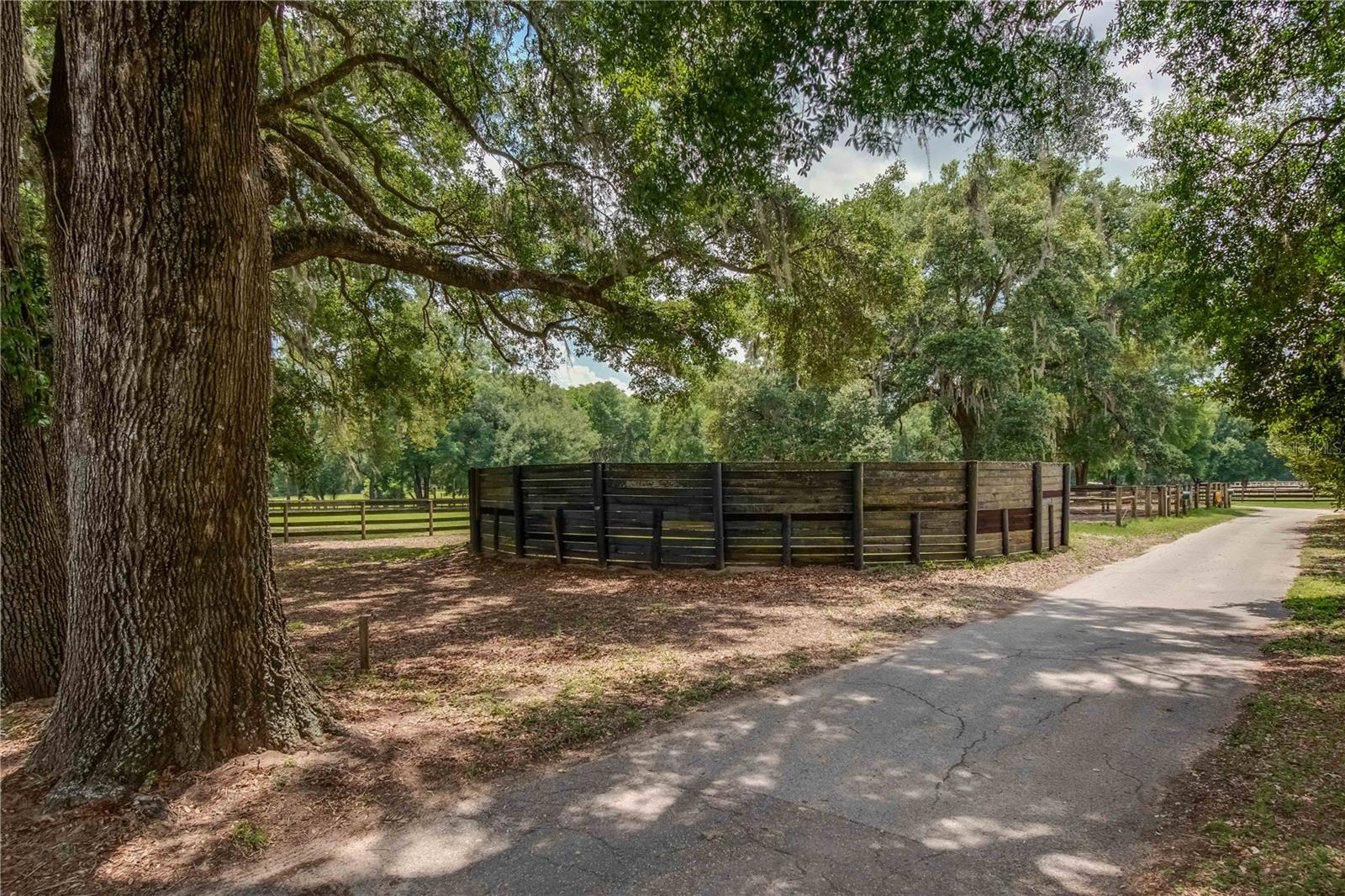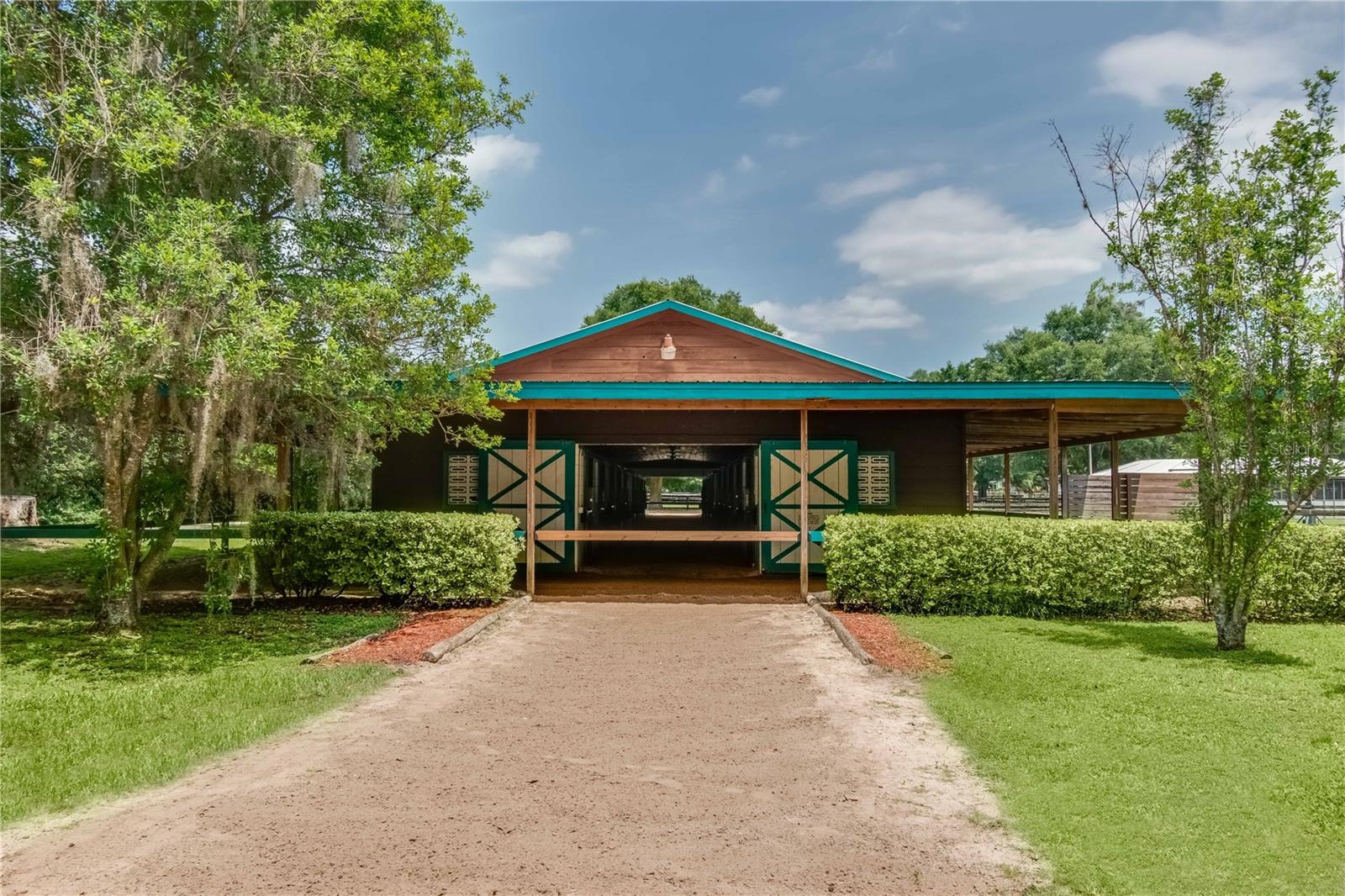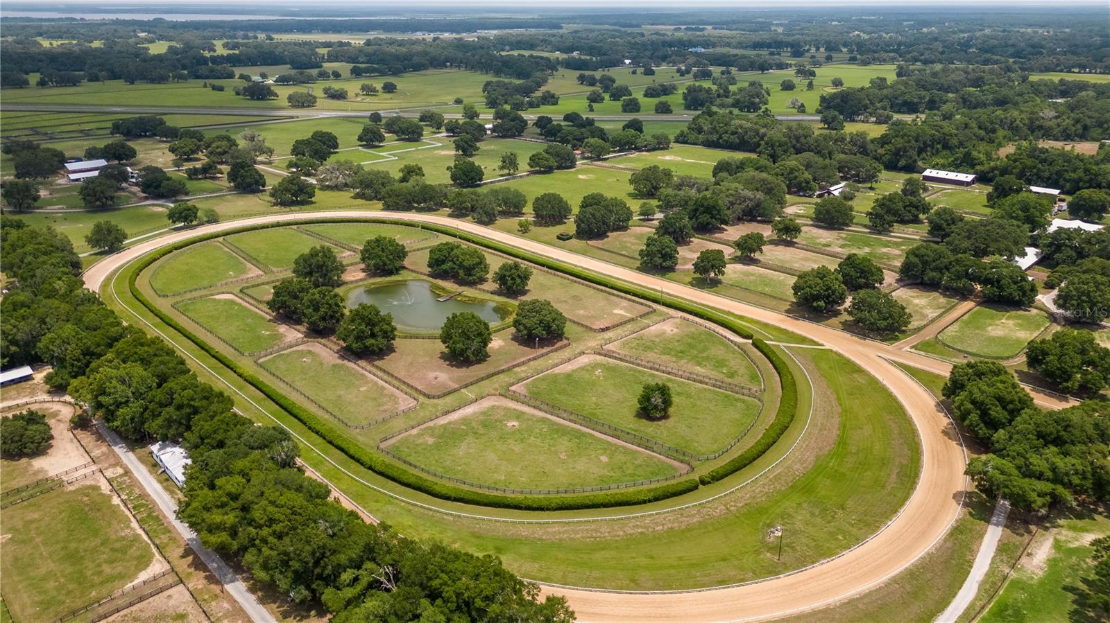Great Investment opportunity! Well established and maintained 36+ acre thoroughbred training facility that can either continue as a thoroughbred operation or can easily be converted to a sport horse facility. The land is beautiful with mature oaks providing much sought after shade. The paddocks boast lush grass with excellent fencing. The home on the property is beautiful with a great outdoor pool area for relaxing. This is a turnkey opportunity with everything you need to operate. There are many ways to provide income from this property to an investor. Two barns are in place, a 28-stall center aisle barn with office and 8 adjacent surgery paddocks , and a 20-stall shedrow and center aisle barn. Additional features of the barn include feed and tack storage, bathroom, wash racks with hot water, fly spray system, and even a Vibe Plate stall with ramp and fan. On the western side of the property is an impressive 5/8 mile irrigated track that includes a 1/2 mile inner turf track for year-round training opportunities, equipped with a 6 horse starting gate, a track viewing stand, and a fully stocked pond at the center. A total of 30 paddocks have been carefully established throughout the property, including several new paddocks in the infield of the track itself. A 60’ European hotwalker with water system and crushed rubber footing is also on property, as well as a large workshop with an air conditioned break room and additional storeroom with washer and dryer, ice maker, and all tools. This farm has ample potential to be transformed for any horse discipline with a little vision. Providing the perfect place to keep an eye on the goings-on of the farm is the attractive 2-bedroom, 2-bath log cabin home. The spacious home features an open, split-bedroom floor plan with high cathedral ceilings, a rustic wood-finish, and a variety of extras. The kitchen is well-equipped with ample cabinet space, a gas stove, convection oven, breakfast bar, and much more. While both bedrooms are spacious, the master suite is particularly desirable with skylights, cathedral ceilings, and a private en-suite with garden tub. The loft space also provides the opportunity for a potential 3rd bedroom or use as a guest space. To the back of the home is a true oasis– fully fenced, the large backyard features stunning landscaping, a sparkling in-ground salt water pool and spa, a spacious pool deck, and an outdoor grilling station, and large trellis system that provides shade from flowering plants. A full-house generator provides the option to keep things running during a power outage and also powers the water to the barns. Wifi covers the entire farm, and there’s a full camera security system for added peace of mind– you can even watch horses train on the track! An RV hookup is also established on-property for additional accommodation options, and includes direct access to the septic. Just minutes from Majestic Oaks and the Ocala Jockey Club, which was recently acquired by the World Equestrian Center, this stunning training center provides the perfect foundation for a growing thoroughbred operation!
