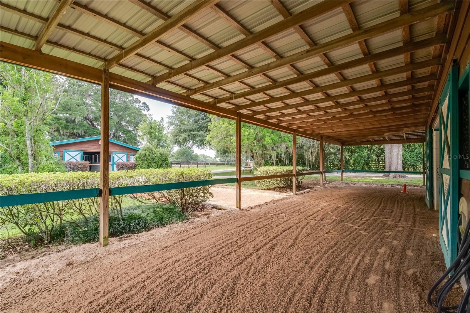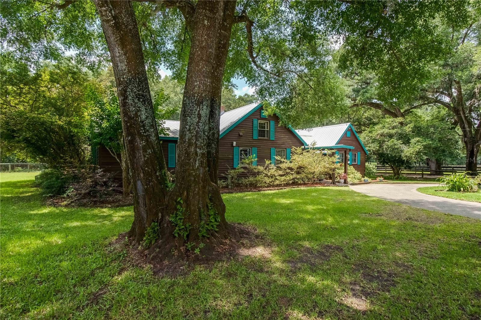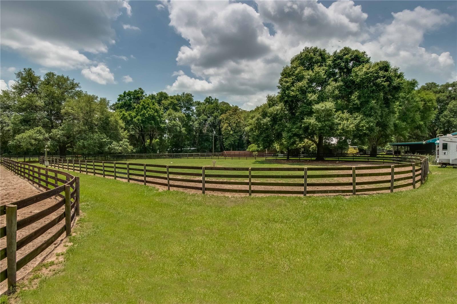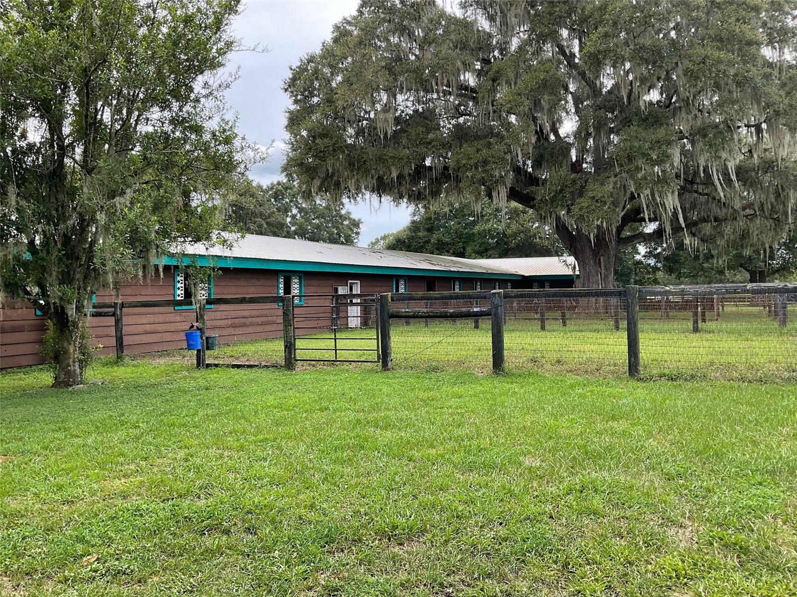 Great Investment opportunity! Well established and maintained 36+ acre thoroughbred training facility that can either continue as a thoroughbred operation or can easily be converted to a sport horse facility. The land is beautiful with mature oaks providing much sought after shade. The paddocks boast lush grass with excellent fencing. The home on the property is beautiful with a great outdoor pool area for relaxing. This is a turnkey opportunity with everything you need to operate. There are many ways to provide income from this property to an investor. Two barns are in place, a 28-stall center aisle barn with office and 8 adjacent surgery paddocks , and a 20-stall shedrow and center aisle barn. Additional features of the barn include feed and tack storage, bathroom, wash racks with hot water, fly spray system, and even a Vibe Plate stall with ramp and fan. On the western side of the property is an impressive 5/8 mile irrigated track that includes a 1/2 mile inner turf track for year-round training opportunities, equipped with a 6 horse starting gate, a track viewing stand, and a fully stocked pond at the center. A total of 30 paddocks have been carefully established throughout the property, including several new paddocks in the infield of the track itself. A 60’ European hotwalker with water system and crushed rubber footing is also on property, as well as a large workshop with an air conditioned break room and additional storeroom with washer and dryer, ice maker, and all tools. This farm has ample potential to be transformed for any horse discipline with a little vision. Providing the perfect place to keep an eye on the goings-on of the farm is the attractive 2-bedroom, 2-bath log cabin home. The spacious home features an open, split-bedroom floor plan with high cathedral ceilings, a rustic wood-finish, and a variety of extras. The kitchen is well-equipped with ample cabinet space, a gas stove, convection oven, breakfast bar, and much more. While both bedrooms are spacious, the master suite is particularly desirable with skylights, cathedral ceilings, and a private en-suite with garden tub. The loft space also provides the opportunity for a potential 3rd bedroom or use as a guest space. To the back of the home is a true oasis– fully fenced, the large backyard features stunning landscaping, a sparkling in-ground salt water pool and spa, a spacious pool deck, and an outdoor grilling station, and large trellis system that provides shade from flowering plants. A full-house generator provides the option to keep things running during a power outage and also powers the water to the barns. Wifi covers the entire farm, and there’s a full camera security system for added peace of mind– you can even watch horses train on the track! An RV hookup is also established on-property for additional accommodation options, and includes direct access to the septic. Just minutes from Majestic Oaks and the Ocala Jockey Club, which was recently acquired by the World Equestrian Center, this stunning training center provides the perfect foundation for a growing thoroughbred operation!