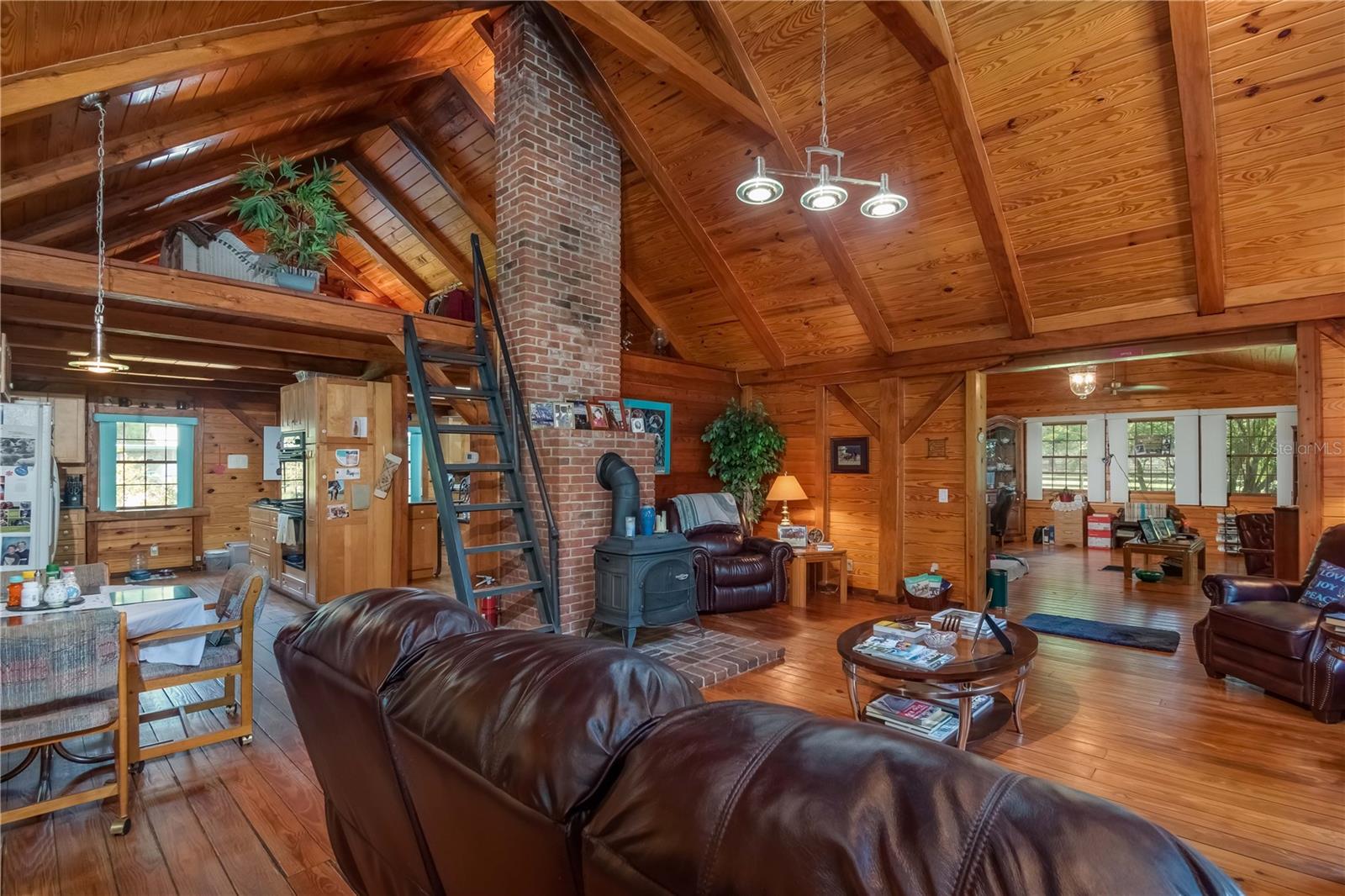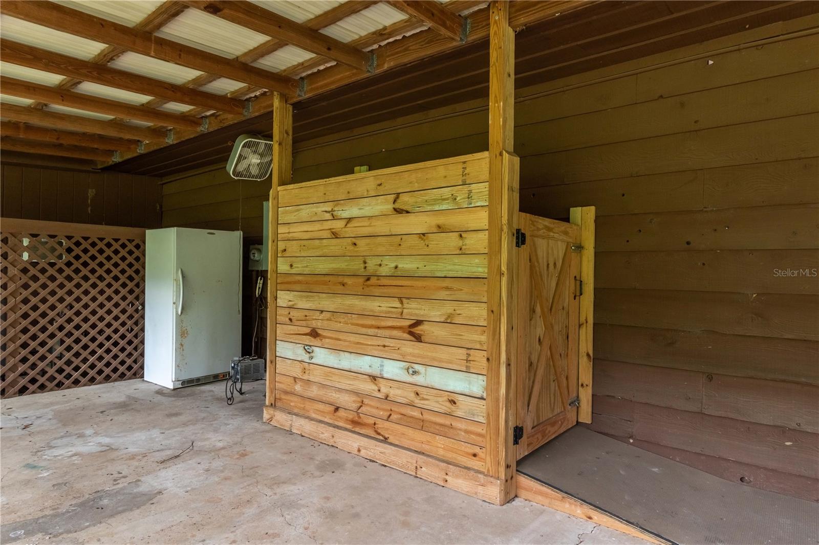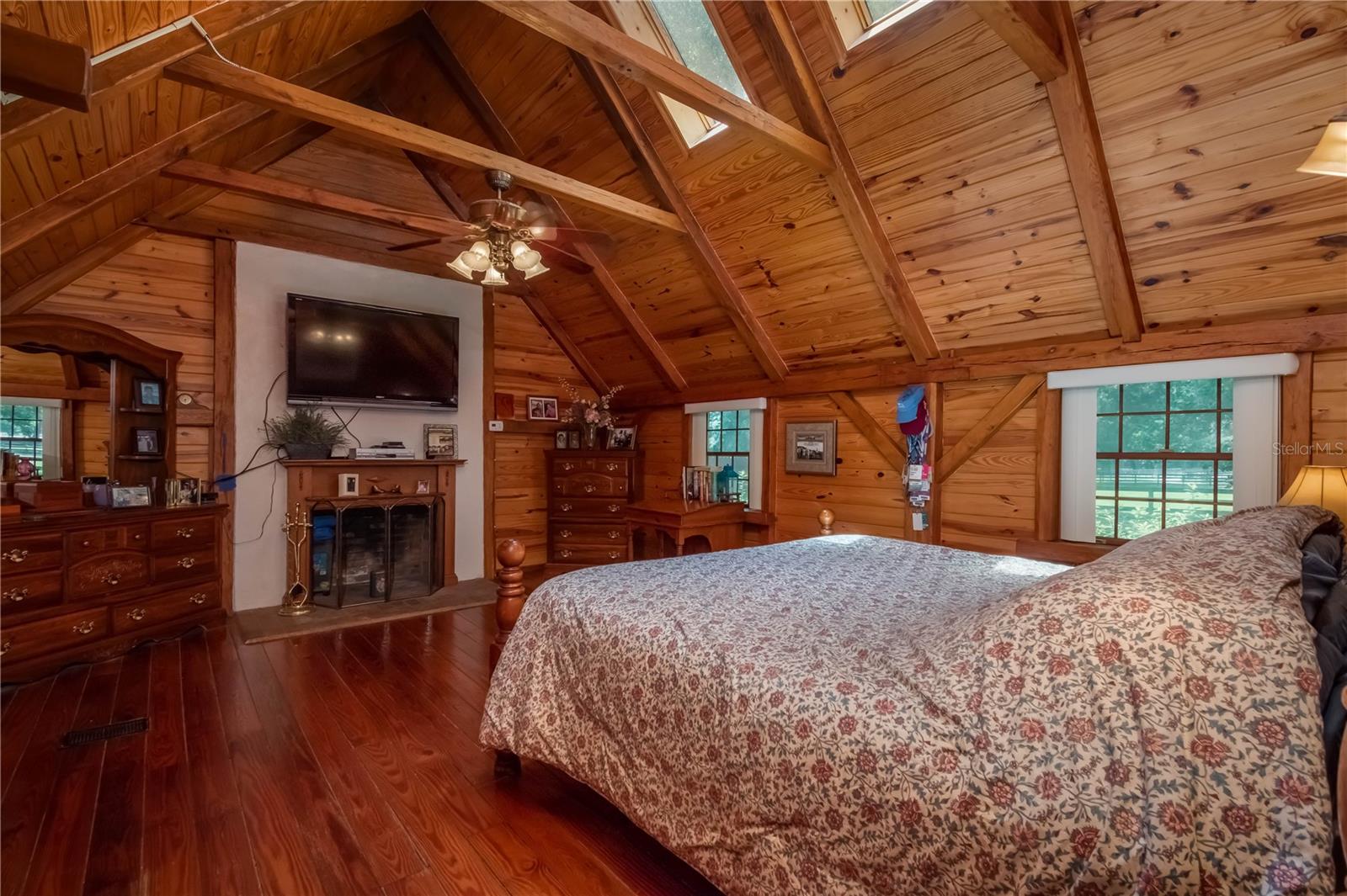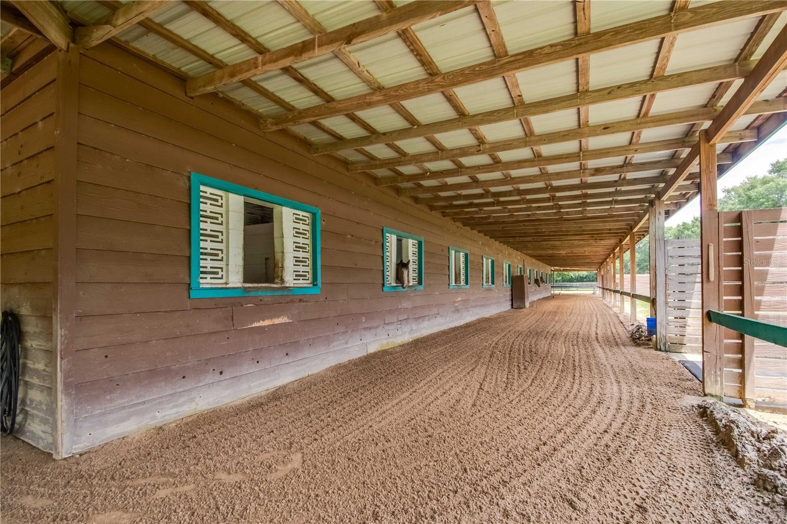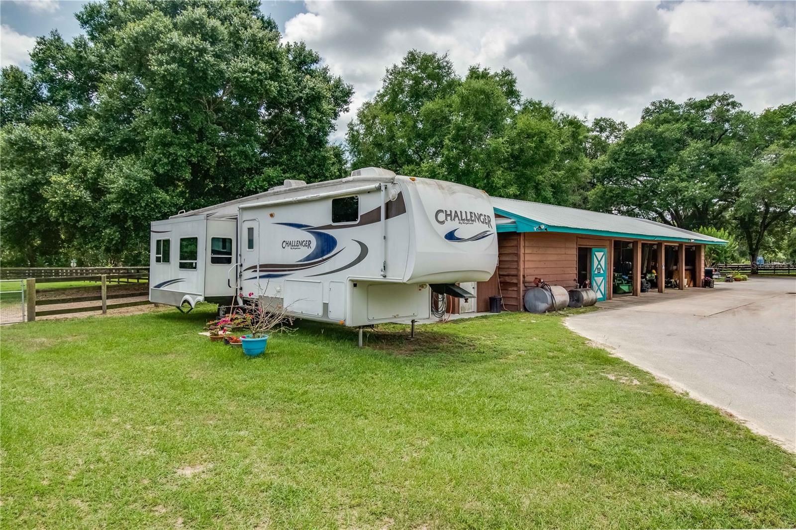 Great Investment opportunity! Well established and maintained 36+ acre thoroughbred training facility that can either continue as a thoroughbred operation or can easily be converted to a sport horse facility. The land is beautiful with mature oaks providing much sought after shade. The paddocks boast lush grass with excellent fencing. The home on the property is beautiful with a great outdoor pool area for relaxing. This is a turnkey opportunity with everything you need to operate. There are many ways to provide income from this property to an investor. Two barns are in place, a 28-stall center aisle barn with office and 8 adjacent surgery paddocks , and a 20-stall shedrow and center aisle barn. Additional features of the barn include feed and tack storage, bathroom, wash racks with hot water, fly spray system, and even a Vibe Plate stall with ramp and fan. On the western side of the property is an impressive 5/8 mile irrigated track that includes a 1/2 mile inner turf track for year-round training opportunities, equipped with a 6 horse starting gate, a track viewing stand, and a fully stocked pond at the center. A total of 30 paddocks have been carefully established throughout the property, including several new paddocks in the infield of the track itself. A 60’ European hotwalker with water system and crushed rubber footing is also on property, as well as a large workshop with an air conditioned break room and additional storeroom with washer and dryer, ice maker, and all tools. This farm has ample potential to be transformed for any horse discipline with a little vision. Providing the perfect place to keep an eye on the goings-on of the farm is the attractive 2-bedroom, 2-bath log cabin home. The spacious home features an open, split-bedroom floor plan with high cathedral ceilings, a rustic wood-finish, and a variety of extras. The kitchen is well-equipped with ample cabinet space, a gas stove, convection oven, breakfast bar, and much more. While both bedrooms are spacious, the master suite is particularly desirable with skylights, cathedral ceilings, and a private en-suite with garden tub. The loft space also provides the opportunity for a potential 3rd bedroom or use as a guest space. To the back of the home is a true oasis– fully fenced, the large backyard features stunning landscaping, a sparkling in-ground salt water pool and spa, a spacious pool deck, and an outdoor grilling station, and large trellis system that provides shade from flowering plants. A full-house generator provides the option to keep things running during a power outage and also powers the water to the barns. Wifi covers the entire farm, and there’s a full camera security system for added peace of mind– you can even watch horses train on the track! An RV hookup is also established on-property for additional accommodation options, and includes direct access to the septic. Just minutes from Majestic Oaks and the Ocala Jockey Club, which was recently acquired by the World Equestrian Center, this stunning training center provides the perfect foundation for a growing thoroughbred operation!
