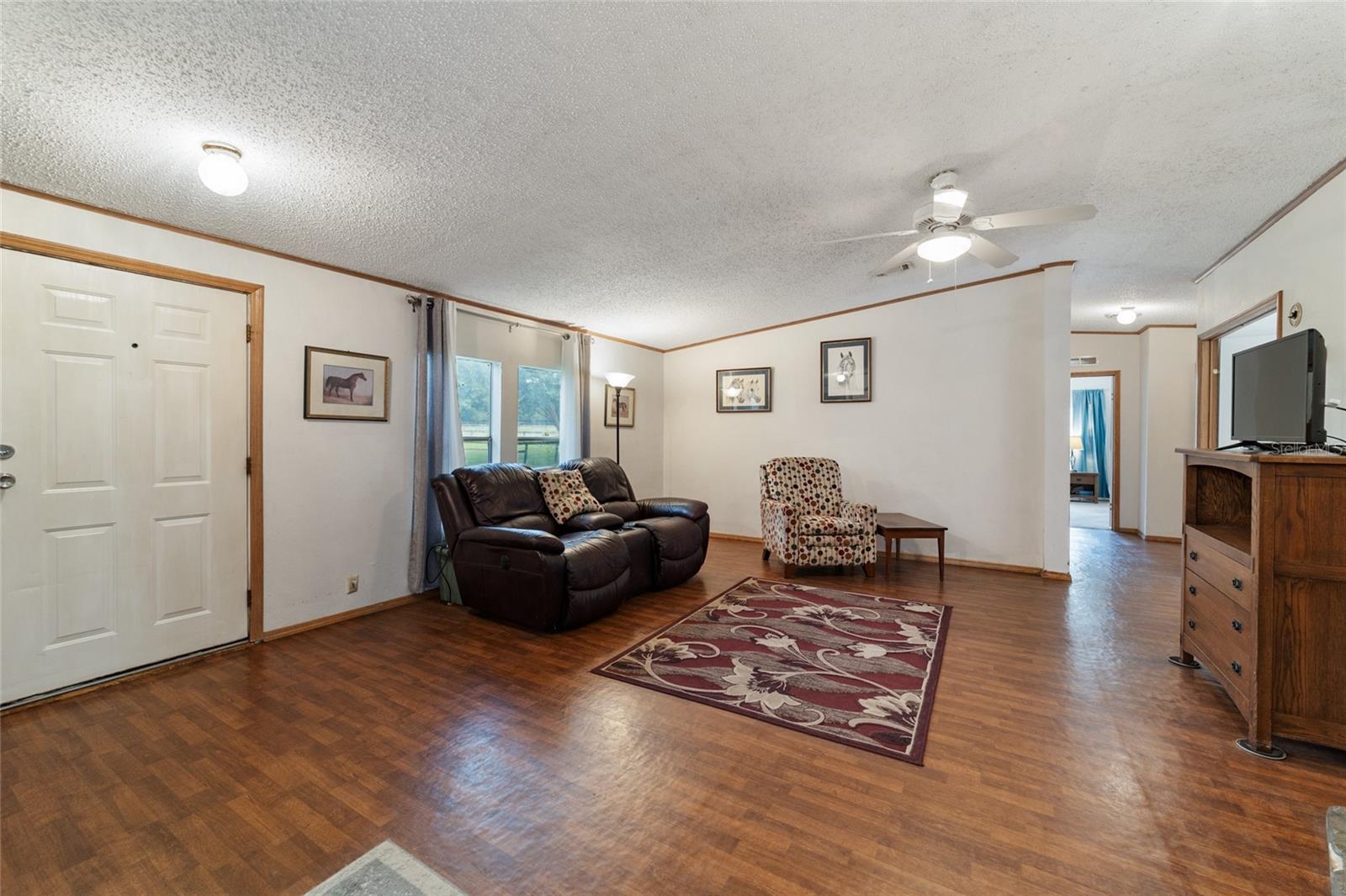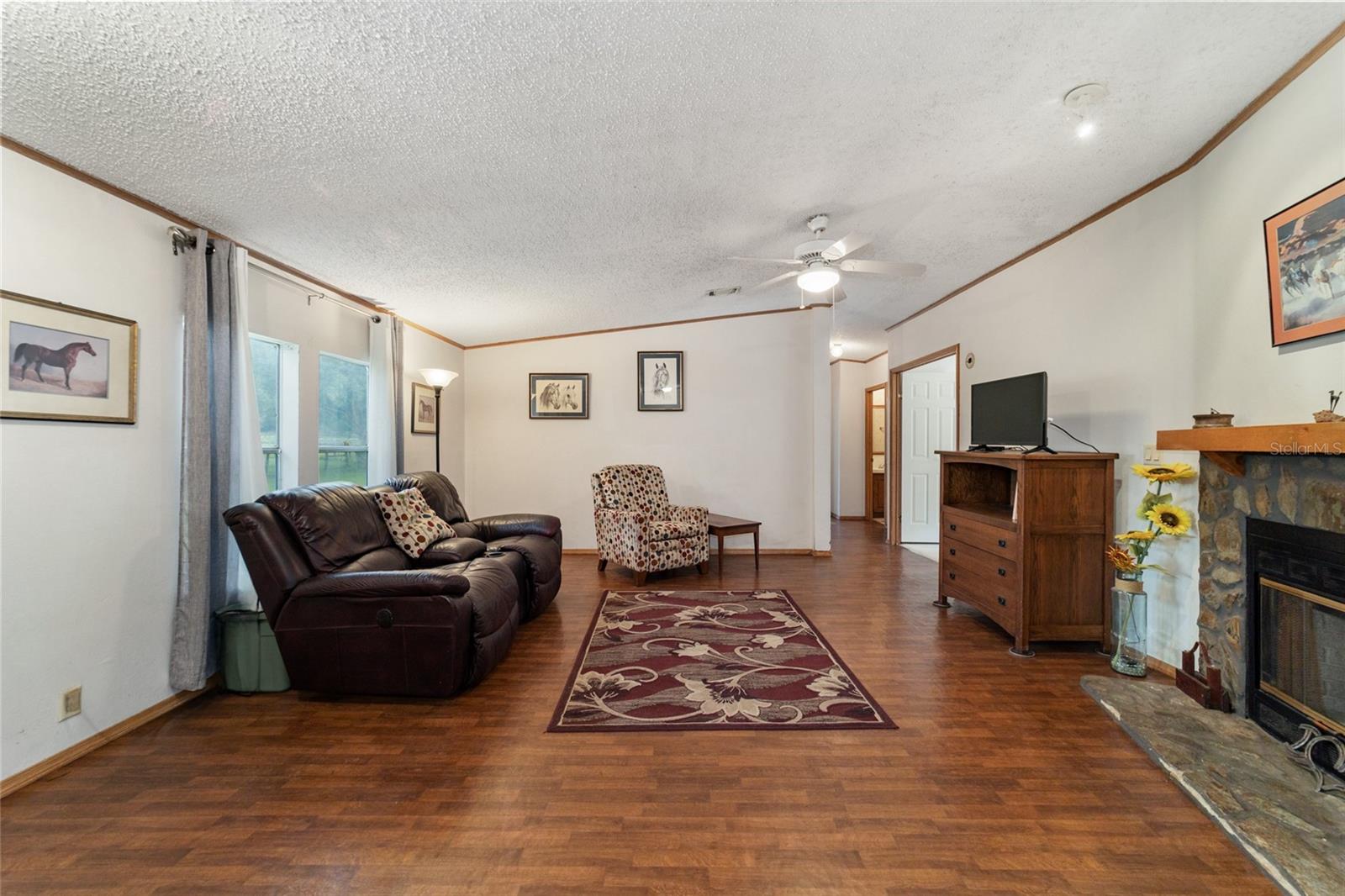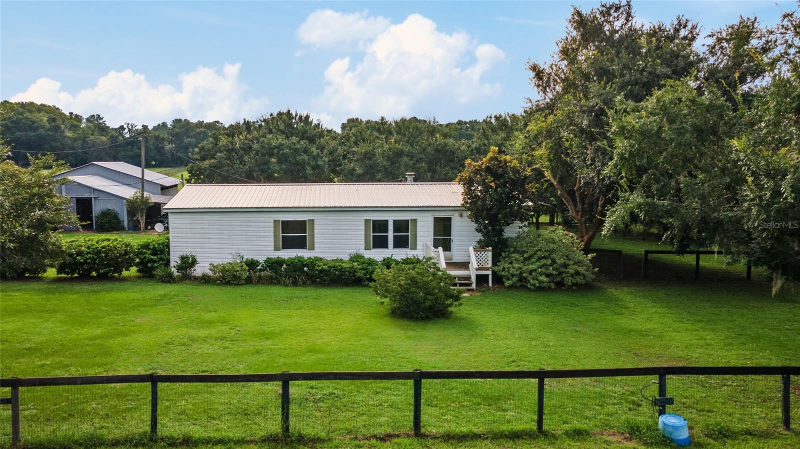 Tucked away in a serene setting that stretches across 10.01 lush acres, this farm is an ideal haven for both you and your animals. The heart of this property is a cozy 3-bedroom, 2-bath mobile home, complete with a warmth-giving wood-burning fireplace, a convenient inside laundry, and a kitchen designed for those who love to cook, featuring an abundance of counter space and cabinets. The farm is equipped to meet all your equestrian needs, featuring a wood center aisle barn that houses five spacious 12x14 stalls, each with automatic waterers to ensure your horses are well-hydrated. The barn is also fitted with areas for hay storage, equipment, and feed and tack, making it a comprehensive facility for all your riding and maintenance activities. Outside, the property unfolds into three large pastures and a smaller paddock, perfect for different equine requirements. A 70x200 riding ring provides an excellent space for training and exercising your horses, ensuring they get the activity they need right at home. Located in NW Marion County where the offer of tranquility of the countryside with the convenience of city amenities awaits. This beautiful farm is only 14 miles from the World Equestrian Center, making it a prime location for equestrian enthusiasts. It’s less than 30 minutes to Gainesville and 20 minutes to Ocala, providing easy access to a variety of shopping, dining, and entertainment options. Additionally, its proximity to I-75 ensures that your commute is as effortless as possible. This property is more than just a home; it's a lifestyle—a perfect blend of comfort, convenience, and equestrian charm. Whether you're training horses, seeking a peaceful retreat, or simply looking for a spacious property to call your own, this farm is ready to fulfill those dreams.