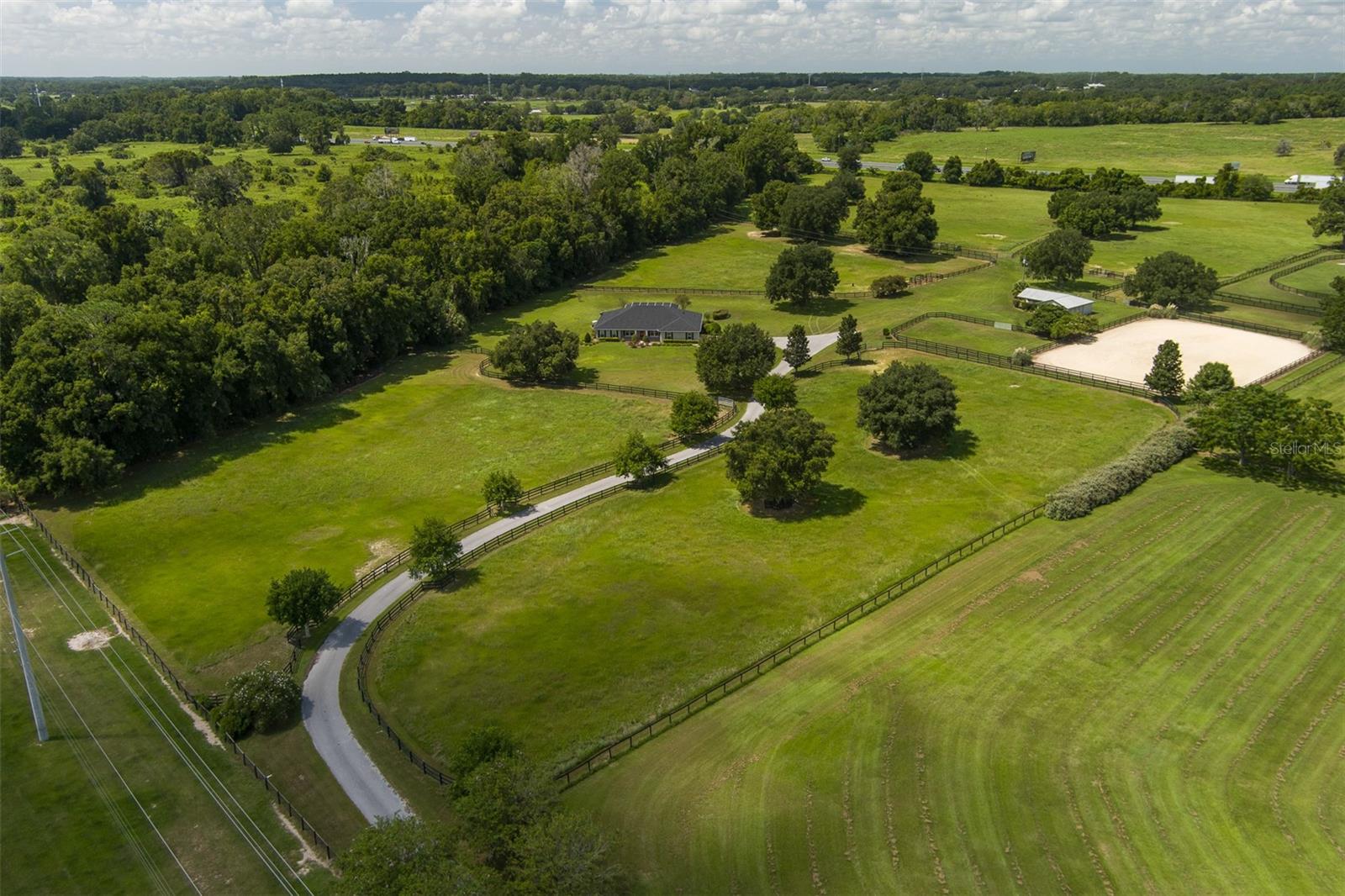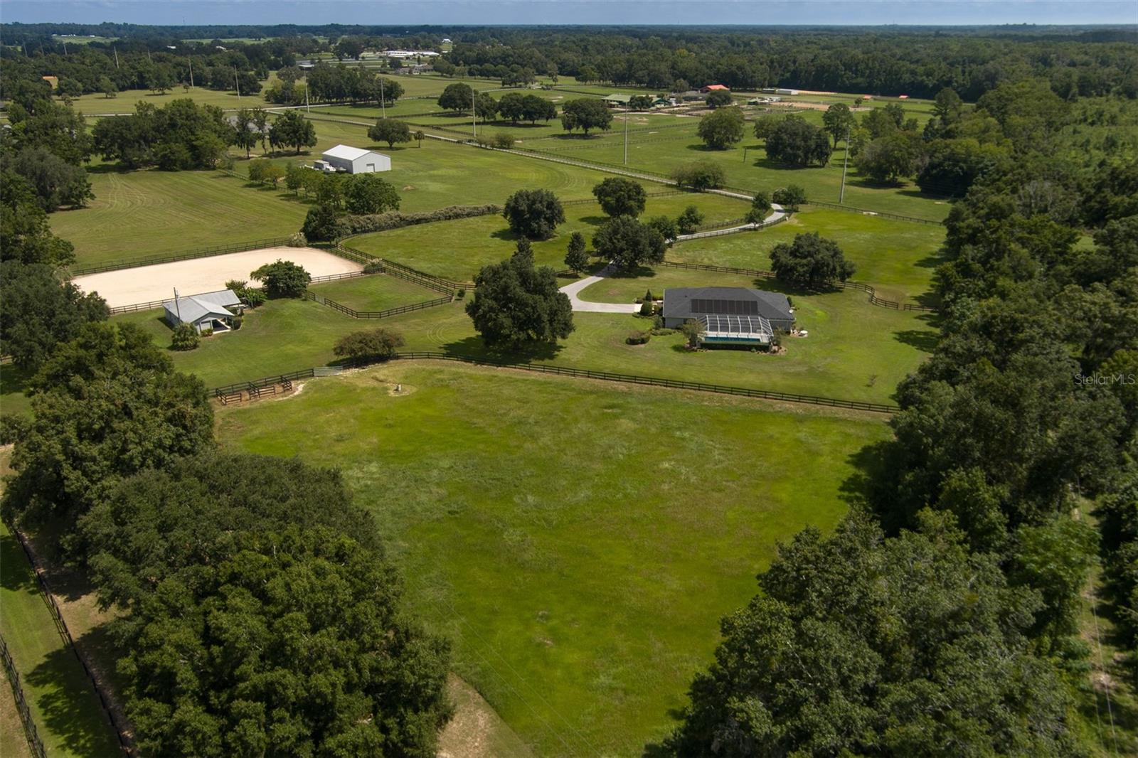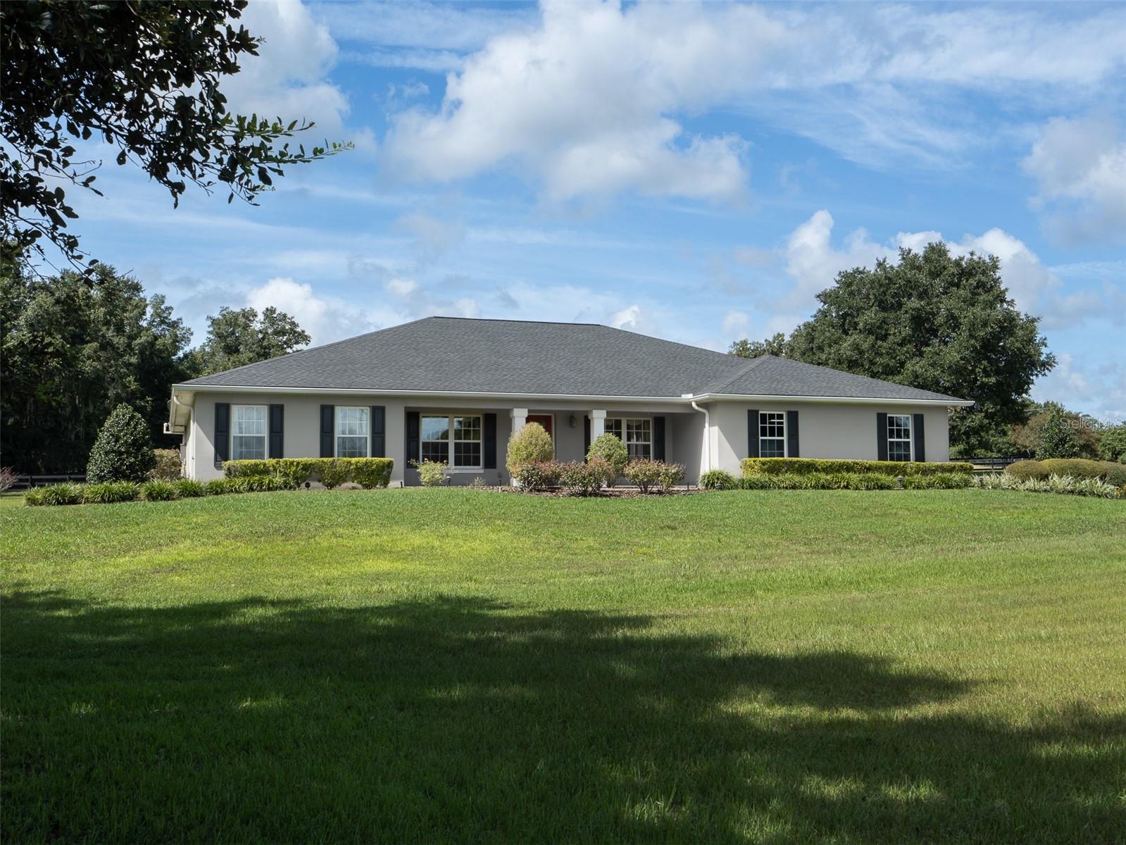 Located in Germantown Farms community of NW Ocala, this beautiful property is 15 minutes from the World Equestrian Center. Spanning approximately 11 acres, this fully fenced property is accessible via a long paved driveway and features mature landscaping, including fruit trees and oak trees. The home offers 4 bedrooms and 3 bathrooms, with tile and wood flooring throughout. The covered front porch and screen-enclosed patio lead to an in-ground saltwater pool, providing a comfortable outdoor living space. Equestrian facilities include 7 paddocks, a riding ring, a 4-stall barn equipped with a feed room, tack room, and a wash rack with hot water. This property is well-suited for those looking to enjoy the equestrian lifestyle in a prime Ocala location.