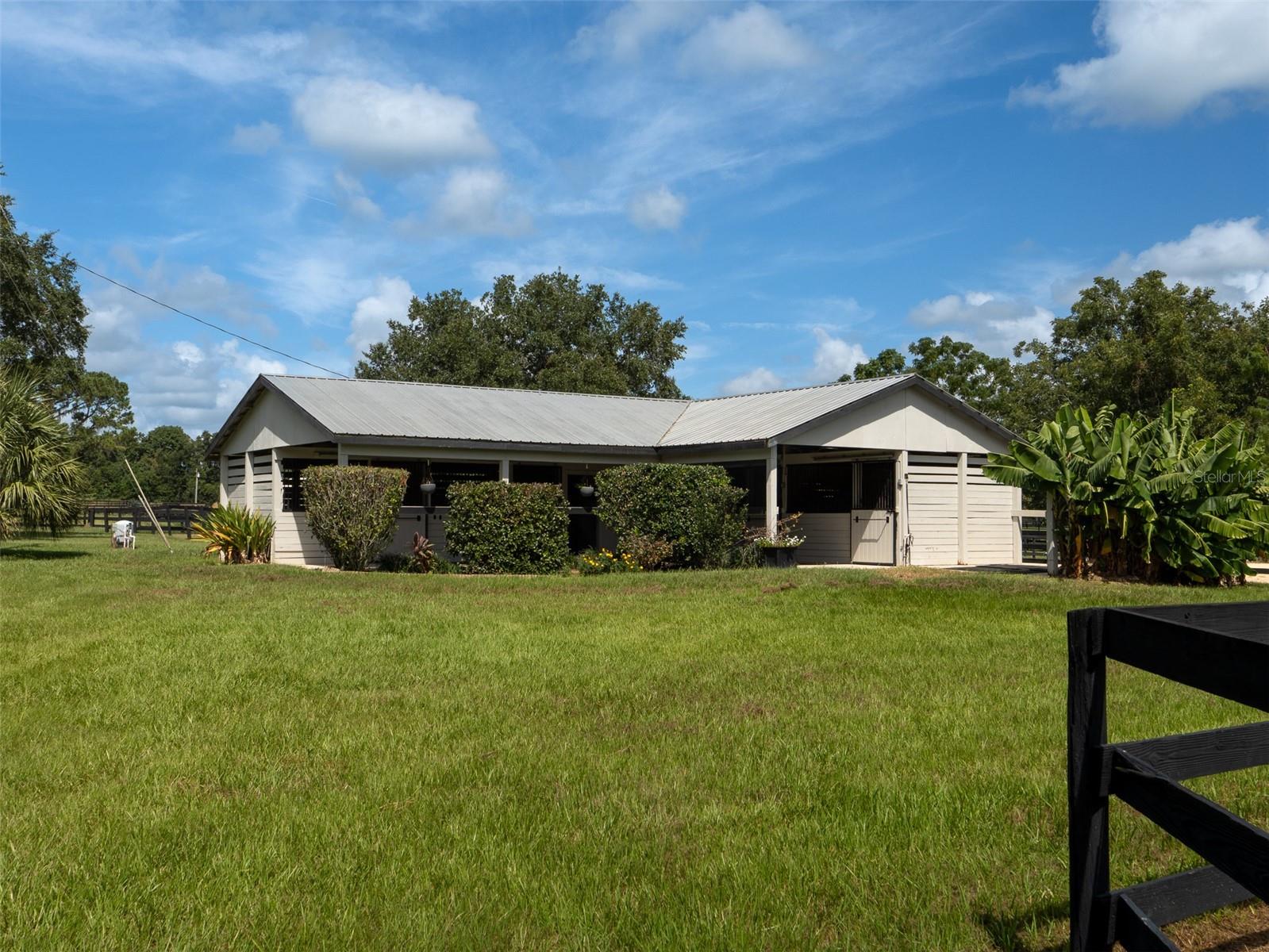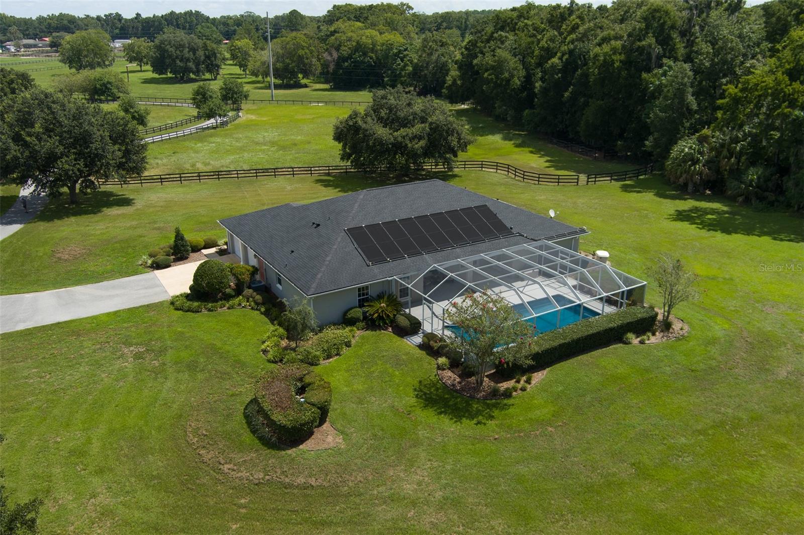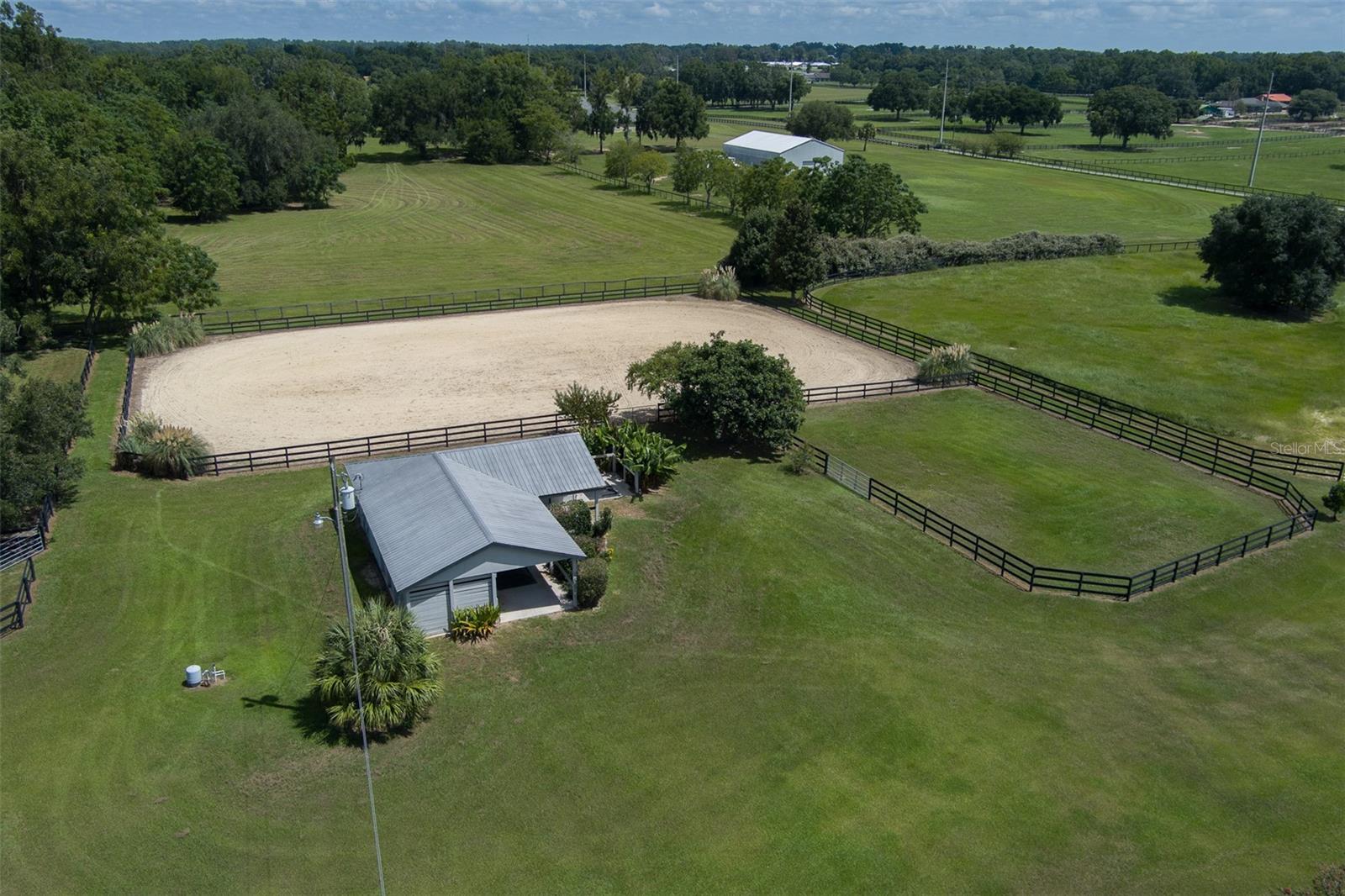 Located in Germantown Farms community of NW Ocala, this beautiful property is 15 minutes from the World Equestrian Center. Spanning approximately 11 acres, this fully fenced property is accessible via a long paved driveway and features mature landscaping, including fruit trees and oak trees. The home offers 4 bedrooms and 3 bathrooms, with tile and wood flooring throughout. The covered front porch and screen-enclosed patio lead to an in-ground saltwater pool, providing a comfortable outdoor living space. Equestrian facilities include 7 paddocks, a riding ring, a 4-stall barn equipped with a feed room, tack room, and a wash rack with hot water. This property is well-suited for those looking to enjoy the equestrian lifestyle in a prime Ocala location.