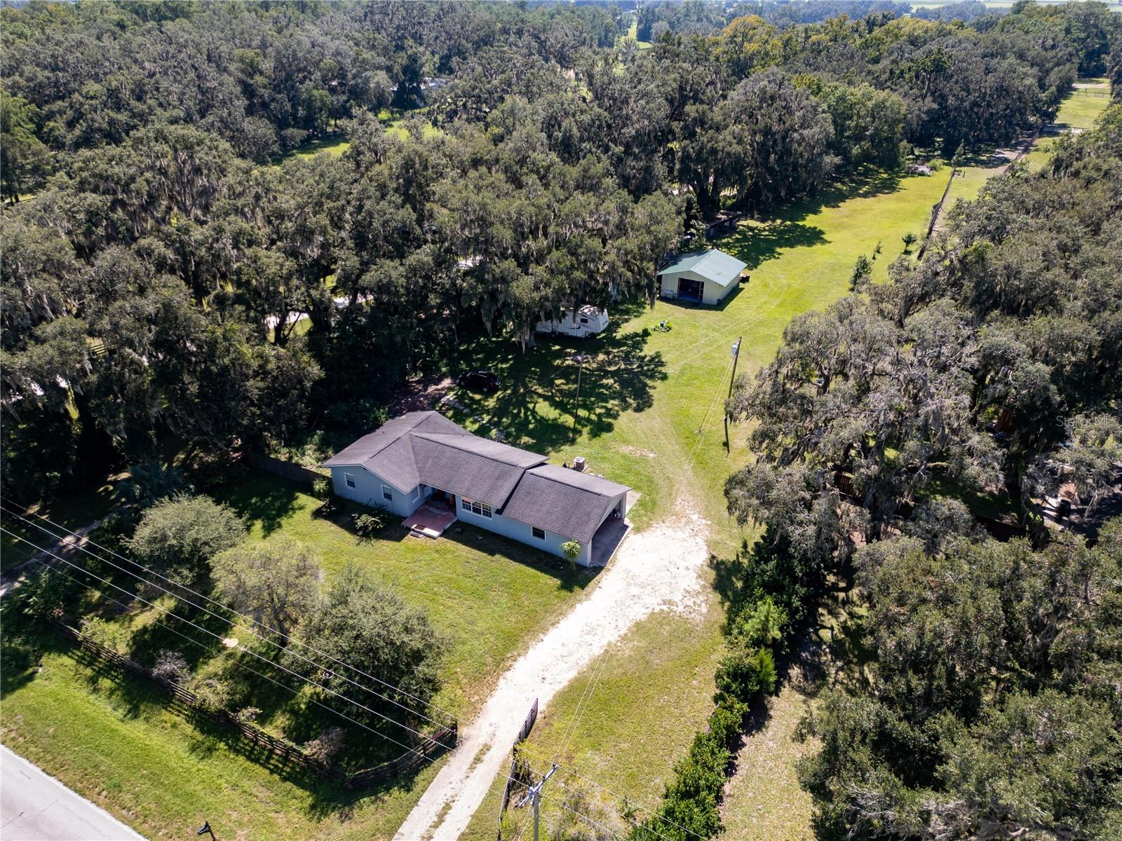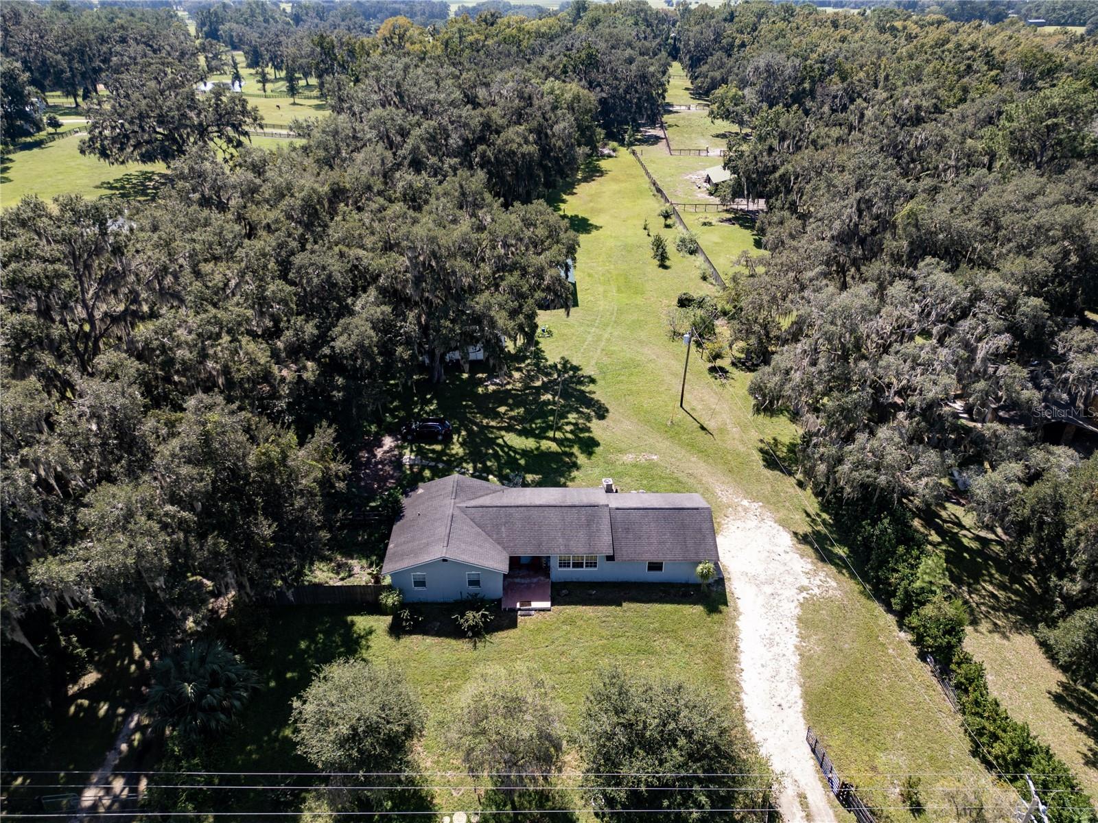 Affordable mini-farm on A-1-zoned 2 acres in NW Marion County. Solid concrete block 2BR/1BA with low-maintenance LVP flooring throughout. Property is fully fenced and animal-ready with a goat barn plus a second barn with concrete floor; easily adapted to horse stalls. Beautiful setting with ancient oaks and a producing orchard of citrus, grape, fig, lemon, pear, and navel orange. Per seller: roof approx. 13 years, HVAC 2022, well pump 2021. Quiet country living with room to garden and keep chickens, pigs, goats, or horses. No HOA and no deed restrictions. About 11 miles to the World Equestrian Center. Buyer to verify zoning, uses, and measurements.