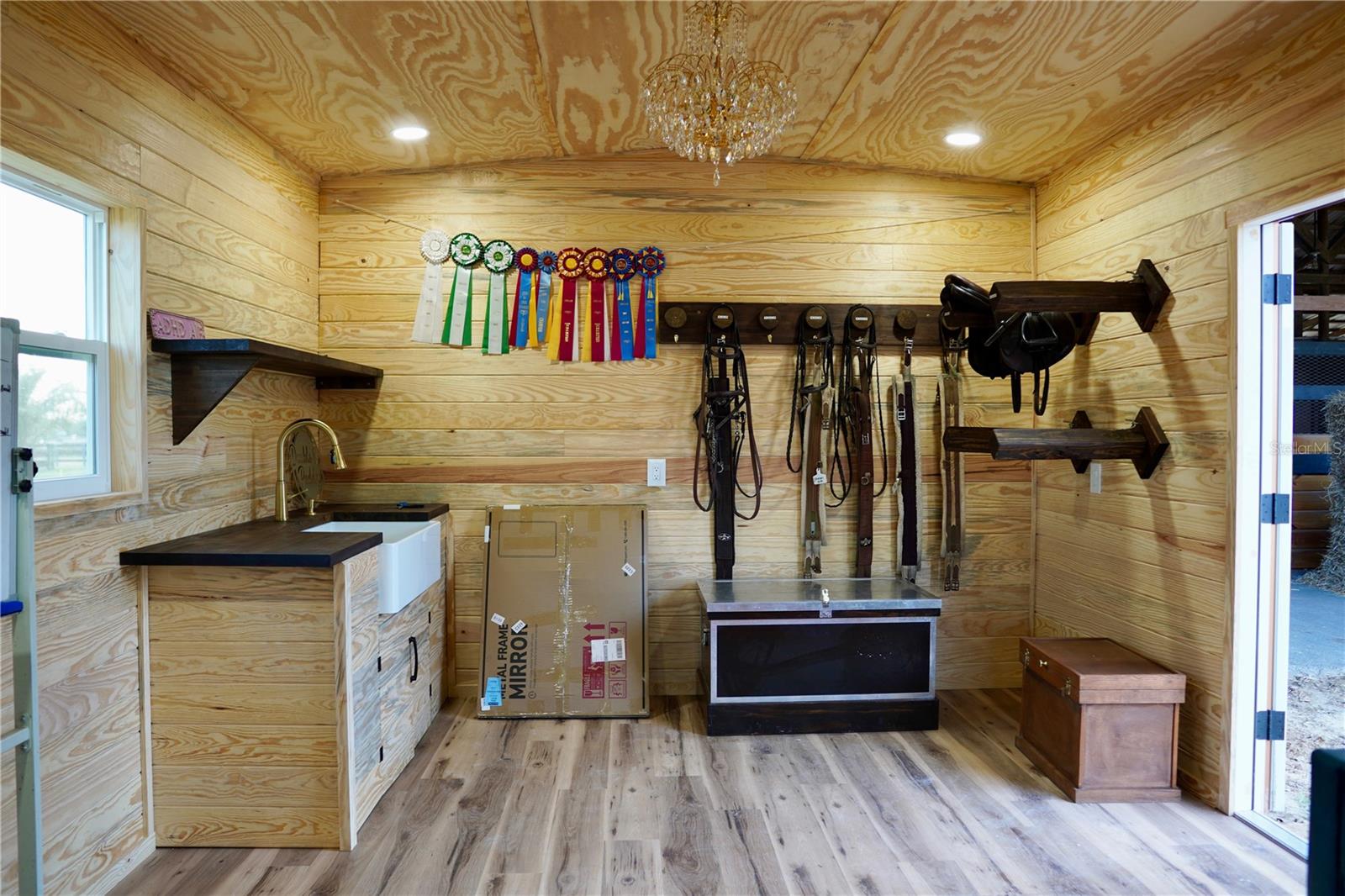 A picture-perfect equestrian estate where timeless charm meets thoughtful functionality. A paved, tree-lined drive winds past the welcoming home where the wraparound porch sets the tone for relaxed country living, inviting you to sit, unwind, and take in the peaceful views of your private 20-acre farm centrally located in Reddick, comprised of two parcels and located within the Farmland Preservation Area. Surrounded by established farms, the land is high and dry with rolling pastures, scattered oaks, and underground utilities that preserve its natural beauty. Designed with the equestrian lifestyle in mind, the property features a well-appointed barn with 19 oversized 12’ x 14’ stalls, offering ample space and comfort for horses. The barn amenities include two newly constructed tack rooms with mini-split climate systems, a feed room, bathroom, and laundry area for daily convenience. A covered service area provides two hot and cold wash stalls and three tack-up bays, creating an efficient and functional working barn. Sand riding arena and jump filed. Additional accommodations include a fully furnished one-bedroom barn apartment, ideal for guests, staff housing, or potential income-producing opportunities. The farm also features four 50-amp RV hookups, perfect for visiting riders, trainers, or extended stays during events. Numerous recent improvements further enhance the property, including three mini-split systems, a new septic system, RV hookups, newly constructed tack rooms, wash and tack stations, and a new A/C condenser, ensuring both comfort and reliability. Fully fenced and gated with brand-new fencing, the property is private and well-organized. The main residence offers a flexible and inviting layout with open-concept living spaces designed for gathering and entertaining, along with a private guest suite with its own entrance, providing ideal accommodations for visitors or extended family. There is a beautiful 2 car carport with storage rooms. A whole house generator adds to the ease and comfort. Set among the scenic countryside yet conveniently accessible to all of Ocala’s renowned equestrian venues, this exceptional farm offers the perfect blend of comfort, functionality, and refined country living.