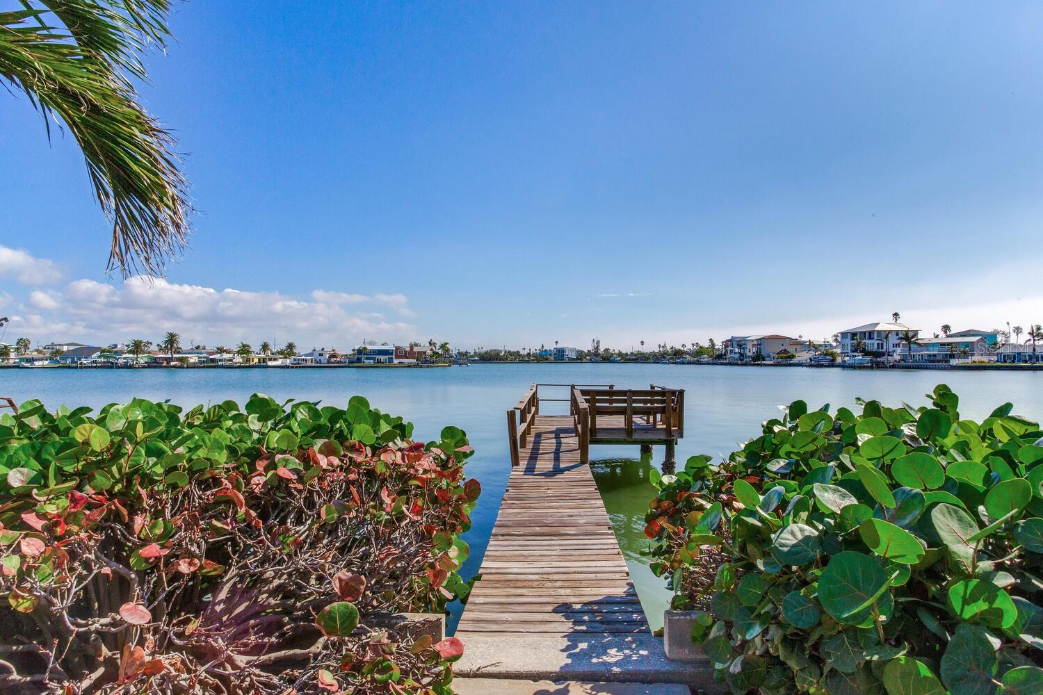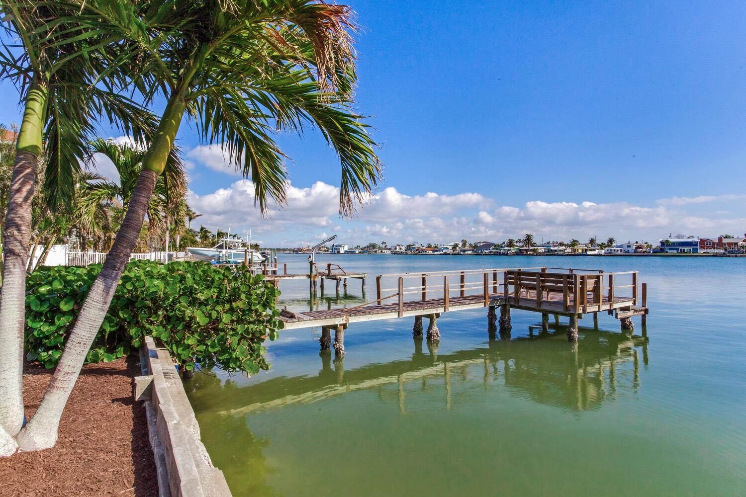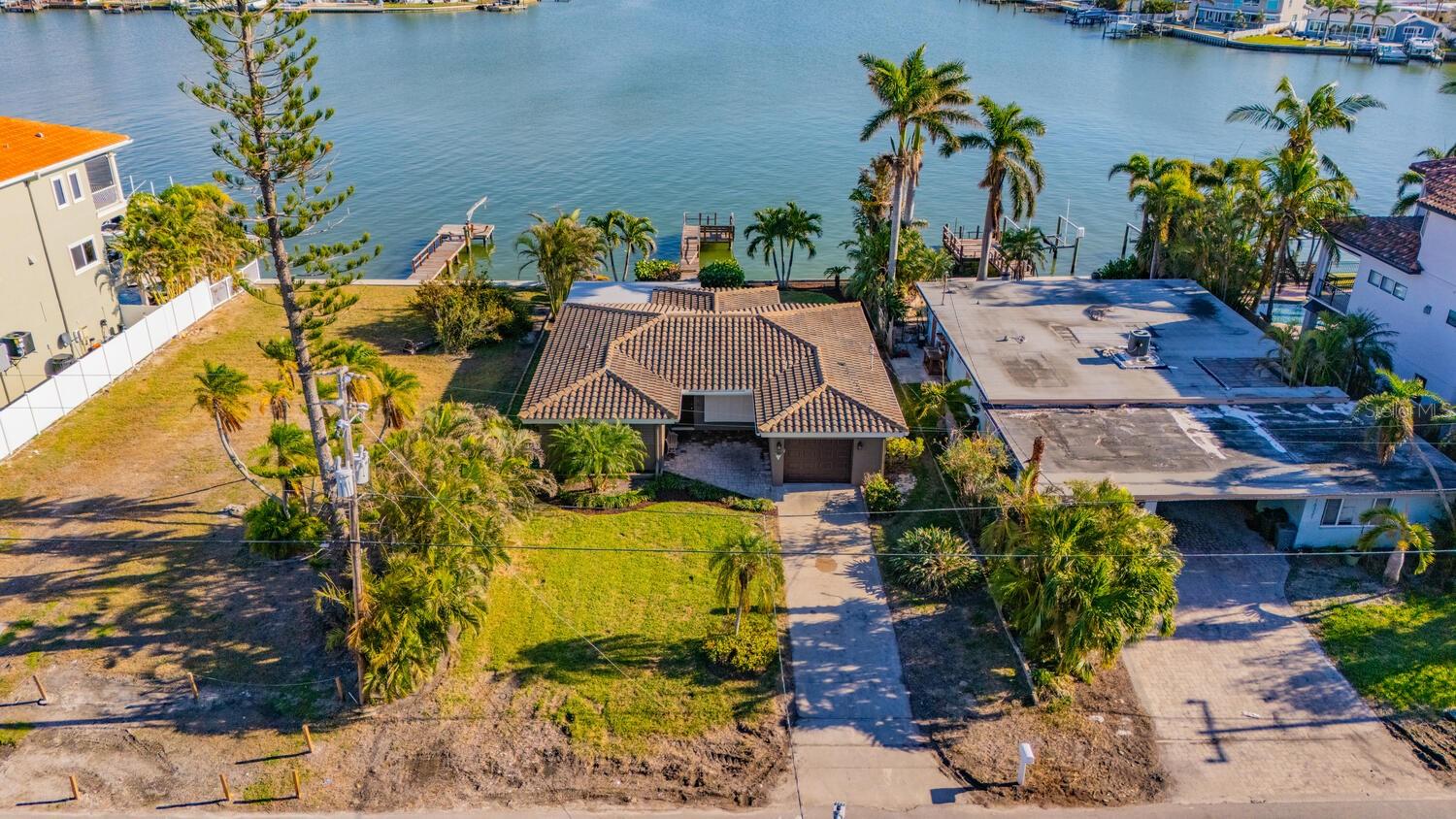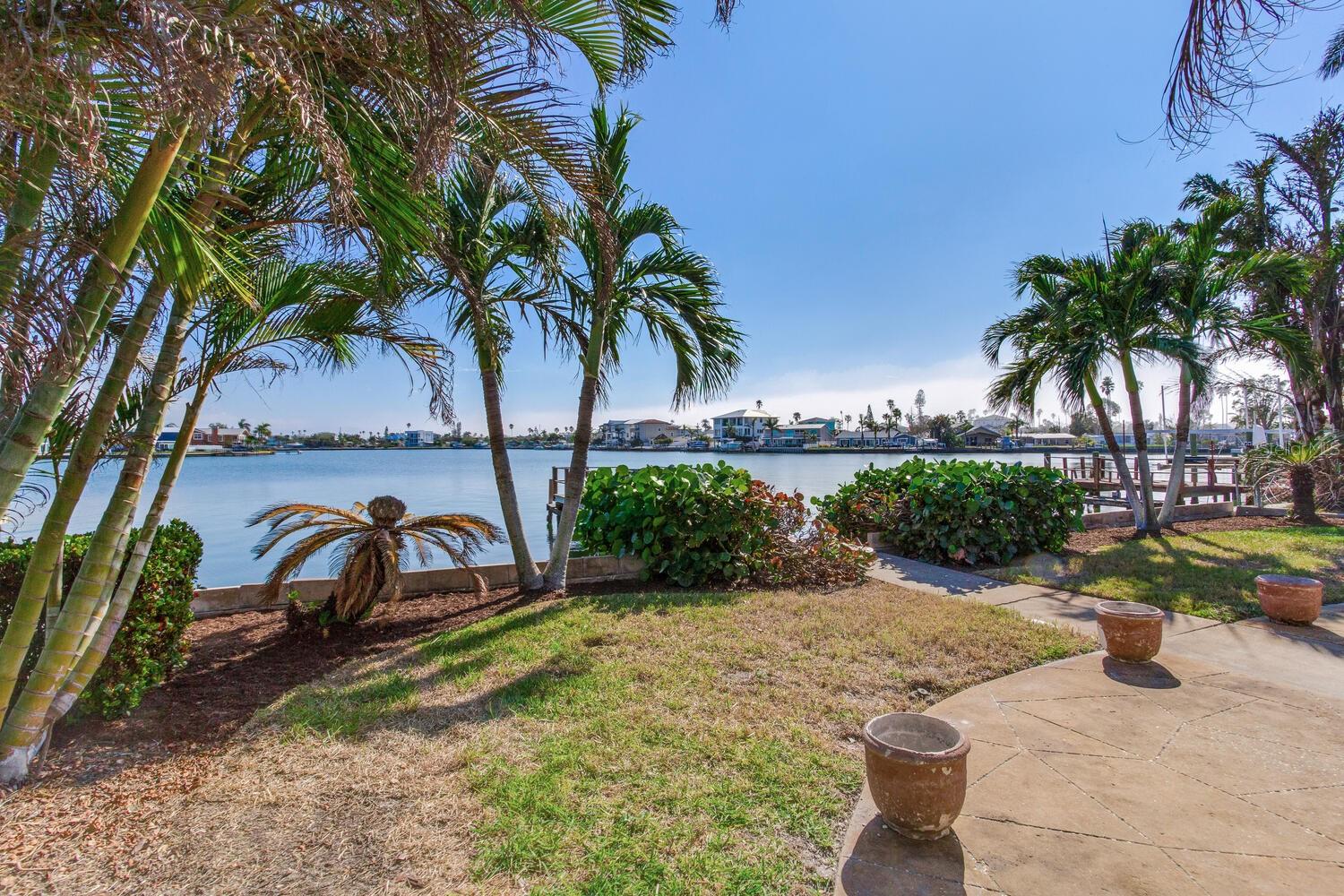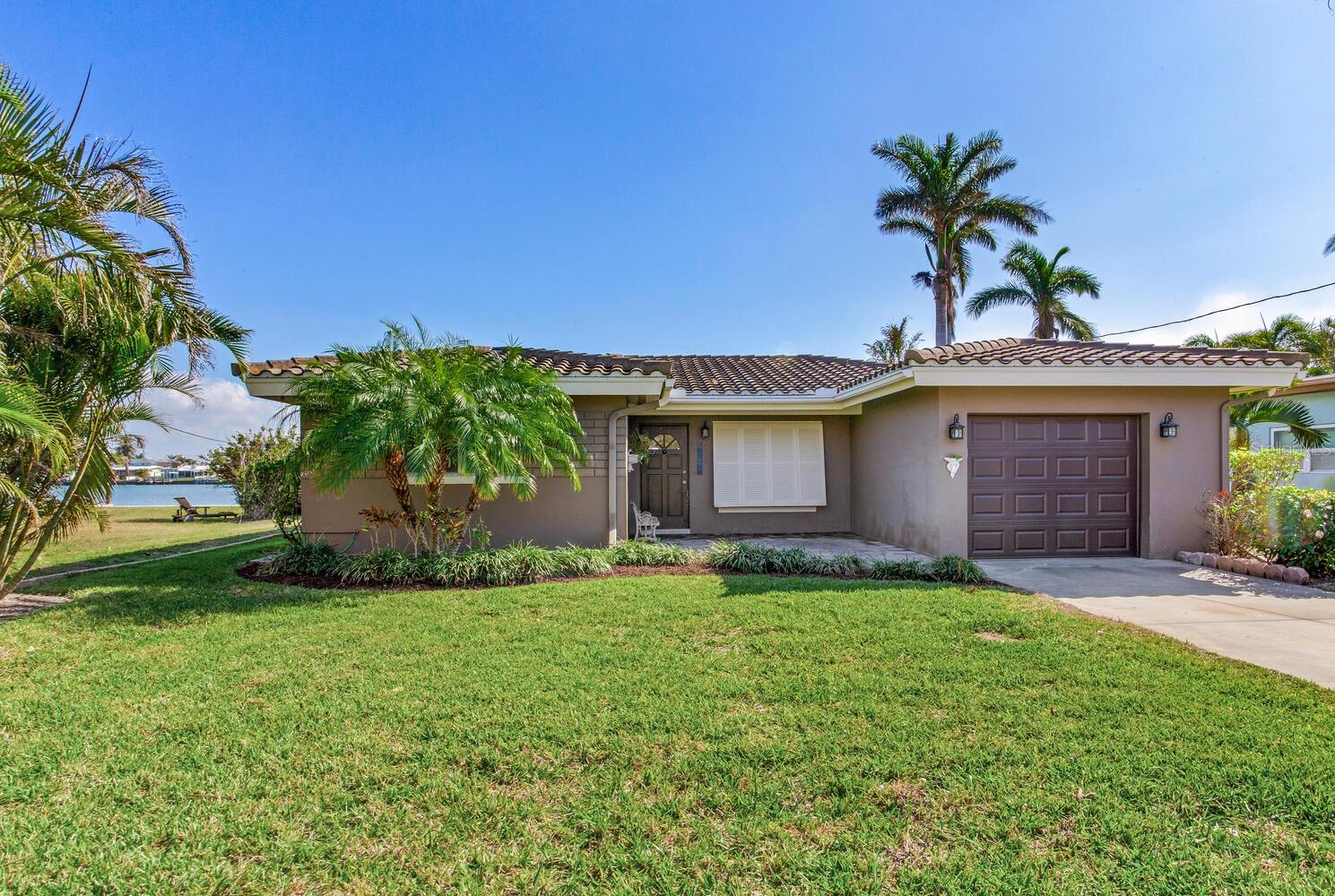 Waterfront Opportunity in Sought-After Redington Beach. Nestled on a deep water bay with southern exposure and stunning wide water views, this 3-bedroom, 2-bath home offers the ultimate Florida lifestyle—watch dolphins play right from your backyard. With 60 feet of water frontage and a grandfathered 40-foot dock, boaters will appreciate the rare access and convenience. The home’s newly painted exterior, new flat roof, new garage door, and new garage side door reflect thoughtful updates, while lush landscaping and a fully functional sprinkler system enhance the curb appeal. Inside, the open-concept layout and classic terrazzo floors provide a spacious and timeless feel. The property also includes a central AC/heat system for year-round comfort. This home has been professionally remediated after storm damage from Helene and Milton and has been officially deemed NOT substantially damaged, making it fully repairable. Electrical rough-in is completed and approved, allowing you to finish the home to your style and standards. Located in the desirable Redington Beach community, you’re just steps from deeded beach access and Friendship Park—perfect for enjoying the best of beach and bay life.