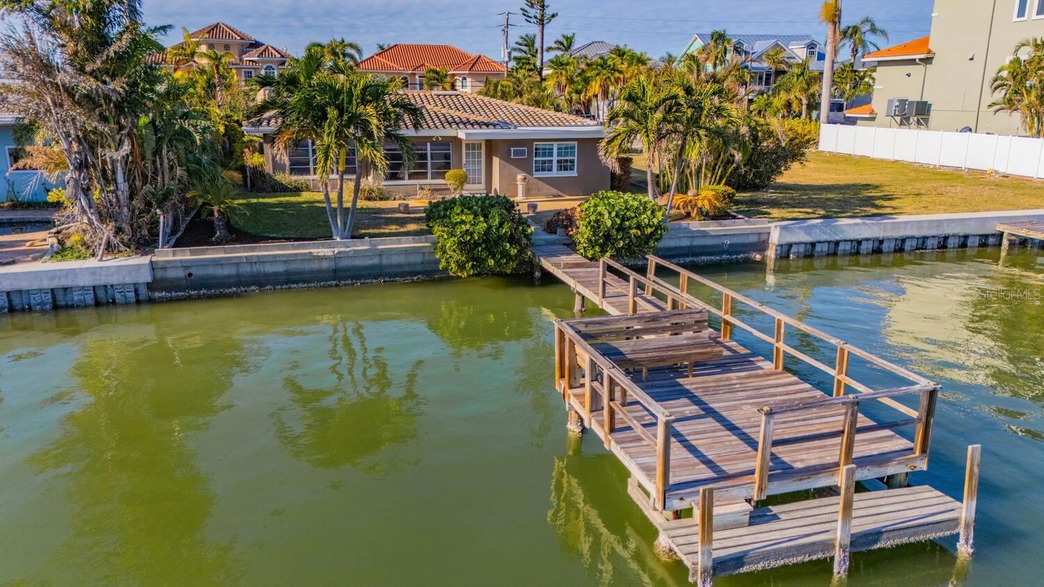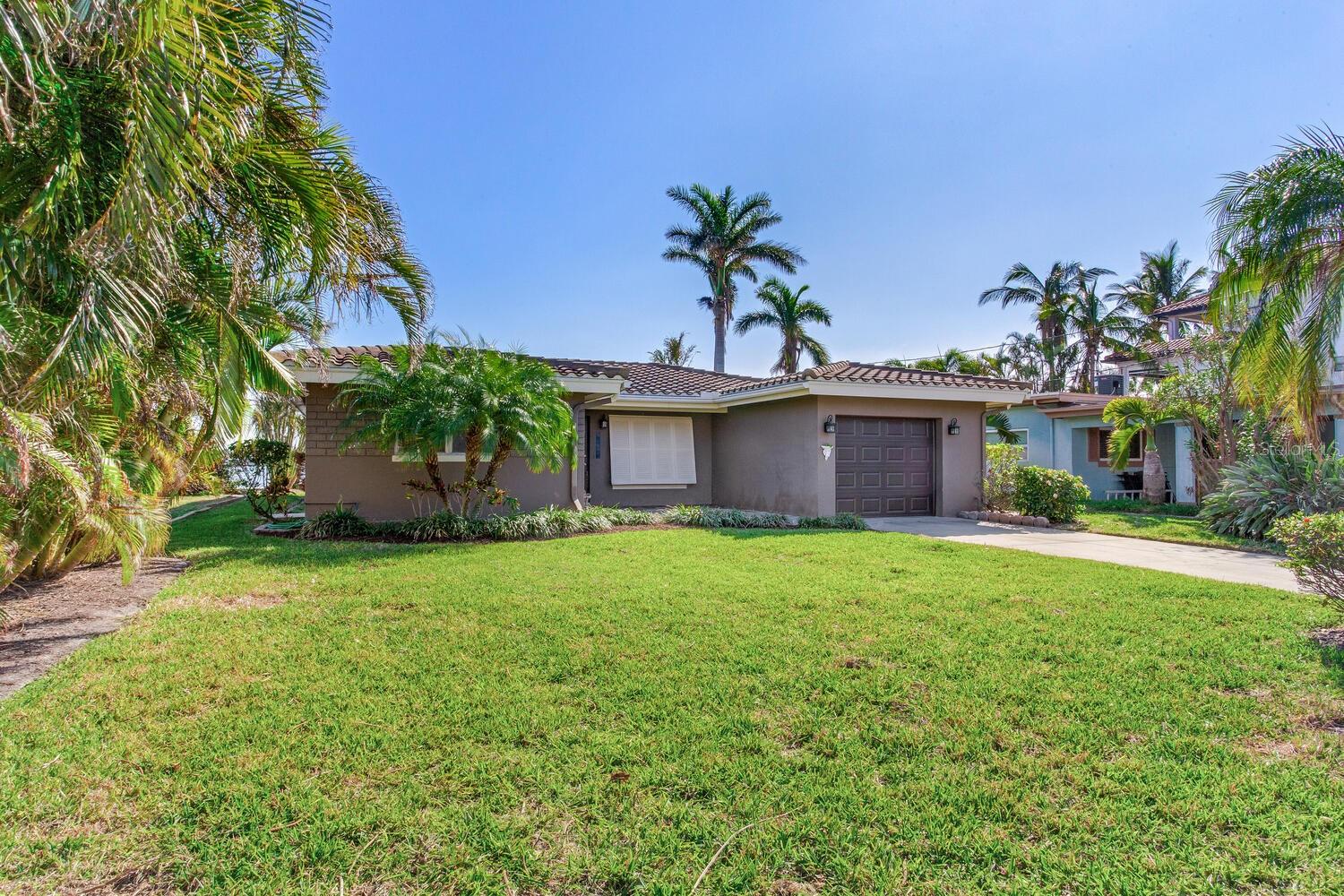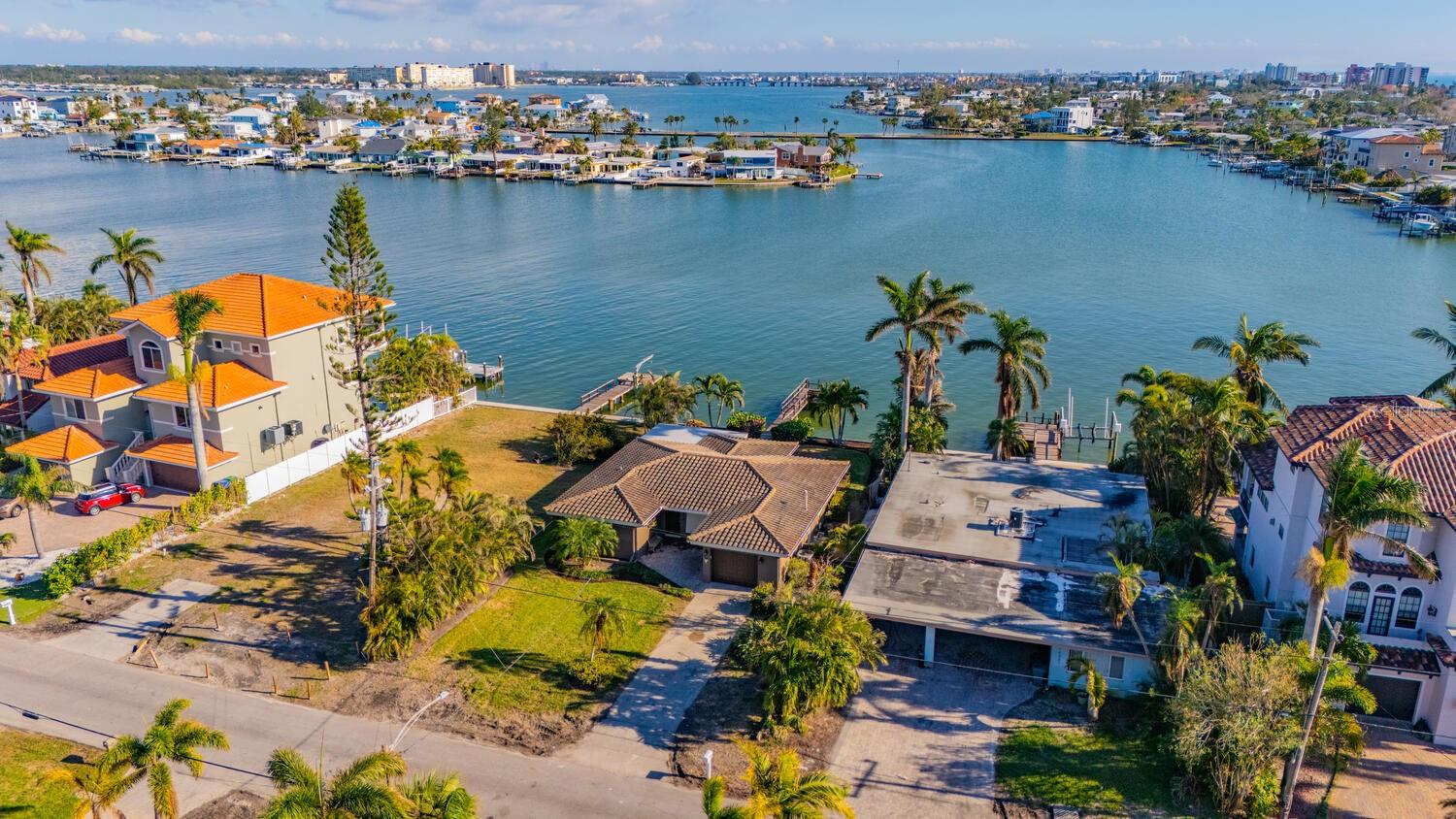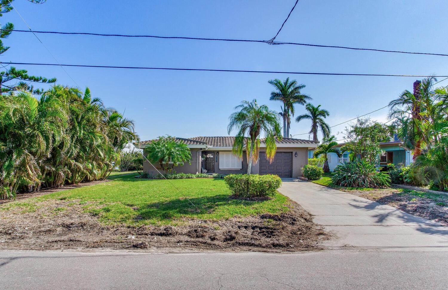 Waterfront Opportunity in Sought-After Redington Beach. Nestled on a deep water bay with southern exposure and stunning wide water views, this 3-bedroom, 2-bath home offers the ultimate Florida lifestyle—watch dolphins play right from your backyard. With 60 feet of water frontage and a grandfathered 40-foot dock, boaters will appreciate the rare access and convenience. The home’s newly painted exterior, new flat roof, new garage door, and new garage side door reflect thoughtful updates, while lush landscaping and a fully functional sprinkler system enhance the curb appeal. Inside, the open-concept layout and classic terrazzo floors provide a spacious and timeless feel. The property also includes a central AC/heat system for year-round comfort. This home has been professionally remediated after storm damage from Helene and Milton and has been officially deemed NOT substantially damaged, making it fully repairable. Electrical rough-in is completed and approved, allowing you to finish the home to your style and standards. Located in the desirable Redington Beach community, you’re just steps from deeded beach access and Friendship Park—perfect for enjoying the best of beach and bay life.