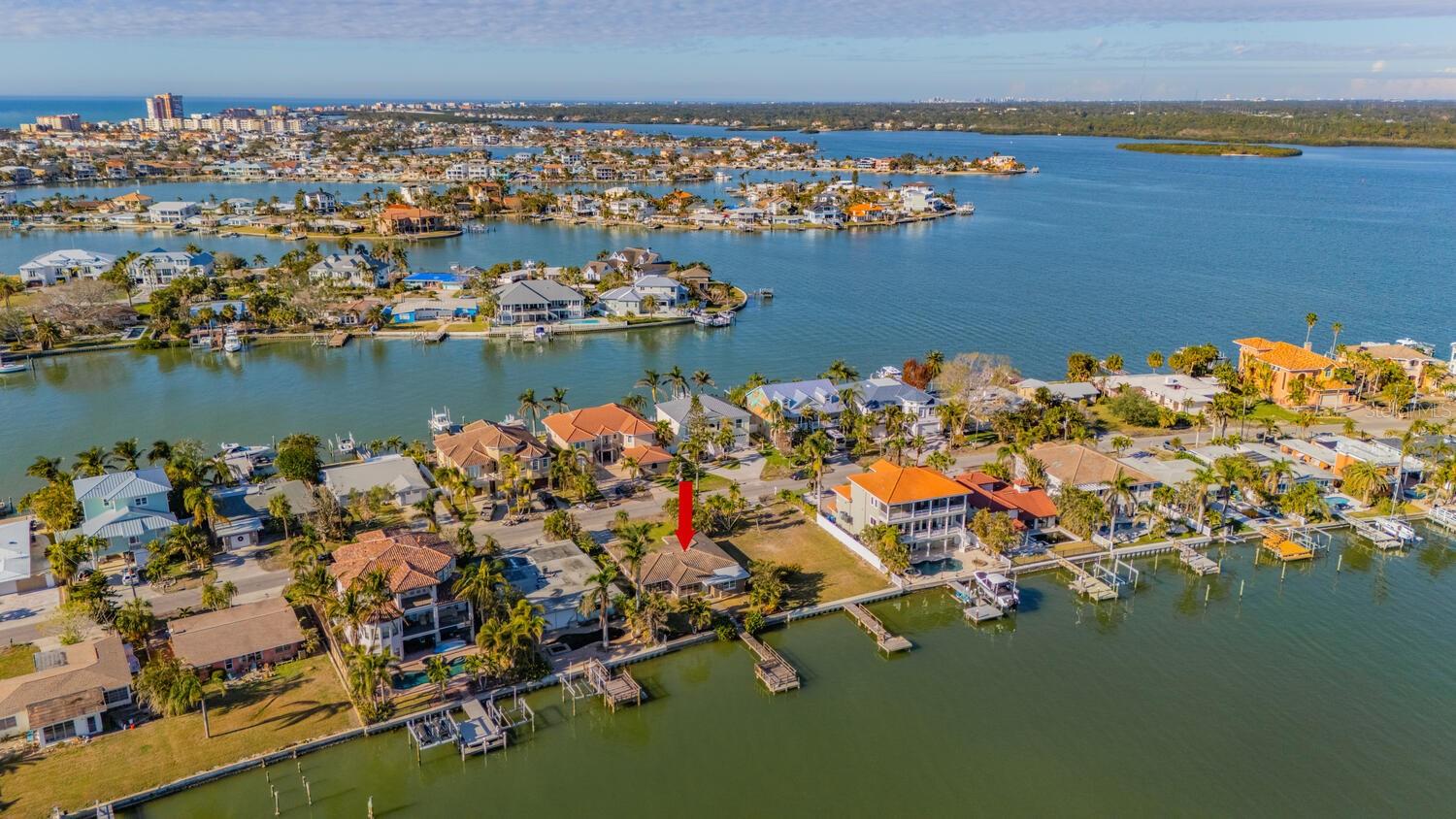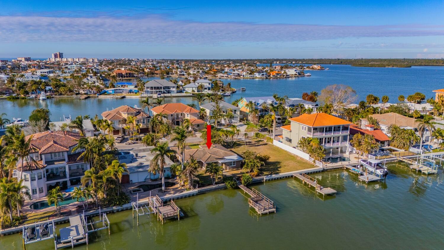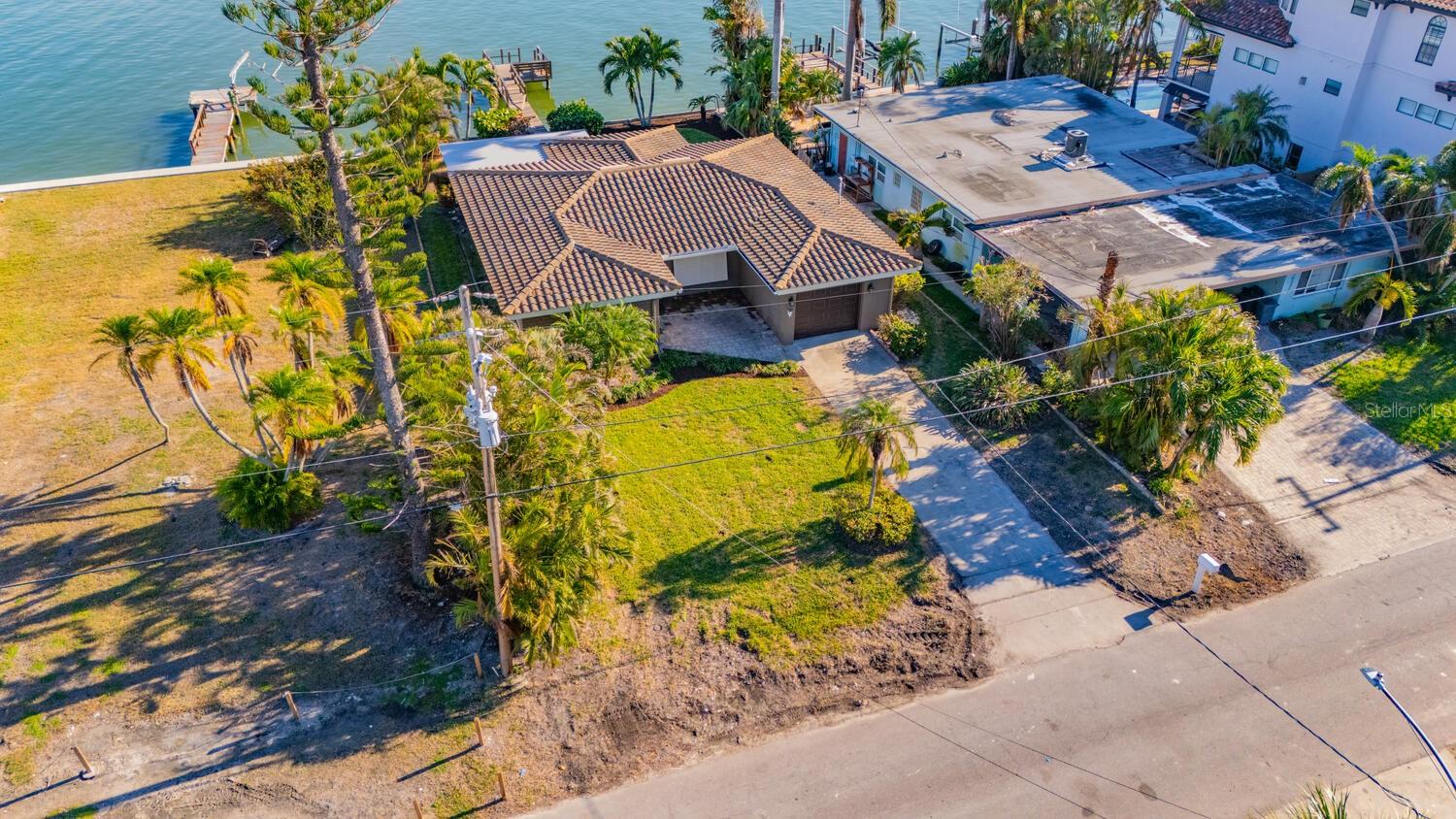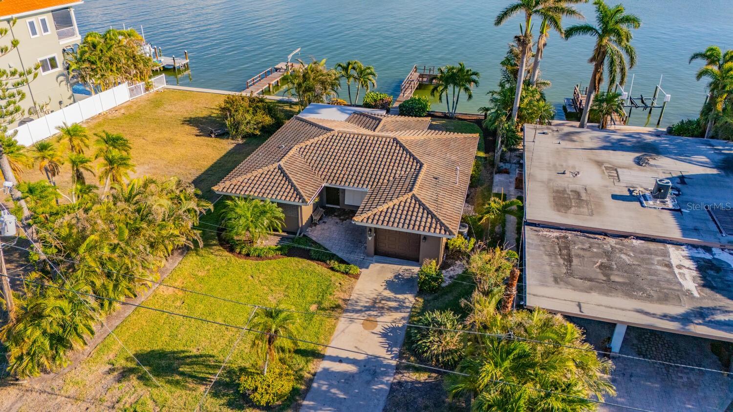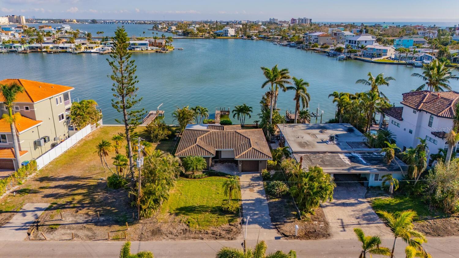 Waterfront Opportunity in Sought-After Redington Beach. Nestled on a deep water bay with southern exposure and stunning wide water views, this 3-bedroom, 2-bath home offers the ultimate Florida lifestyle—watch dolphins play right from your backyard. With 60 feet of water frontage and a grandfathered 40-foot dock, boaters will appreciate the rare access and convenience. The home’s newly painted exterior, new flat roof, new garage door, and new garage side door reflect thoughtful updates, while lush landscaping and a fully functional sprinkler system enhance the curb appeal. Inside, the open-concept layout and classic terrazzo floors provide a spacious and timeless feel. The property also includes a central AC/heat system for year-round comfort. This home has been professionally remediated after storm damage from Helene and Milton and has been officially deemed NOT substantially damaged, making it fully repairable. Electrical rough-in is completed and approved, allowing you to finish the home to your style and standards. Located in the desirable Redington Beach community, you’re just steps from deeded beach access and Friendship Park—perfect for enjoying the best of beach and bay life.