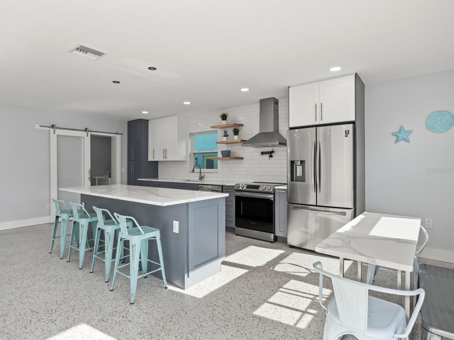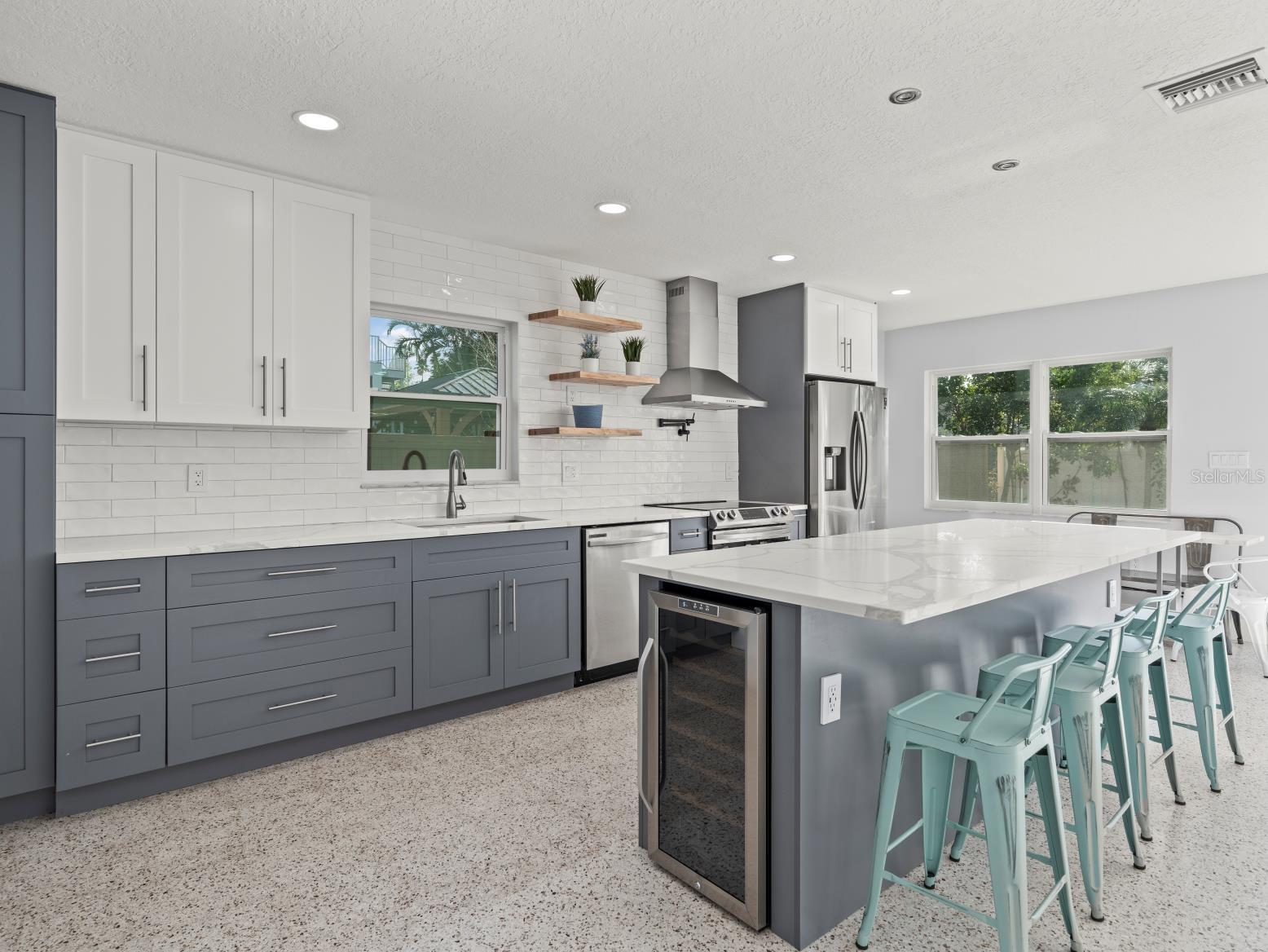 Renovated all block home, 1 block off the beach with easy beach access, new blue-tooth bathrooms, new AC, new pex plumbing, all new electric, tankless hot water system and all impact windows and sliders (kitchen). Floorplan opened up with chef's island kitchen featuring the original terrazzo floor!! (Yay !) New back deck and front sitting patio. 2 bed/ 2 baths, 1 car garage. Great investment for long or short term rentals. Resident only parking lot is located on the beach at Gulf and 160th if you choose to go the beach with your golf cart ! Access to the beach a quick 30 seconds away on 158th. Stroll to the Conch Republic, Salt Water Hippie and Salt Rock Grill. 10 minutes to Indian Rocks beach, 22 minutes to downtown St. Pete, 27 minutes to the Tampa airport.