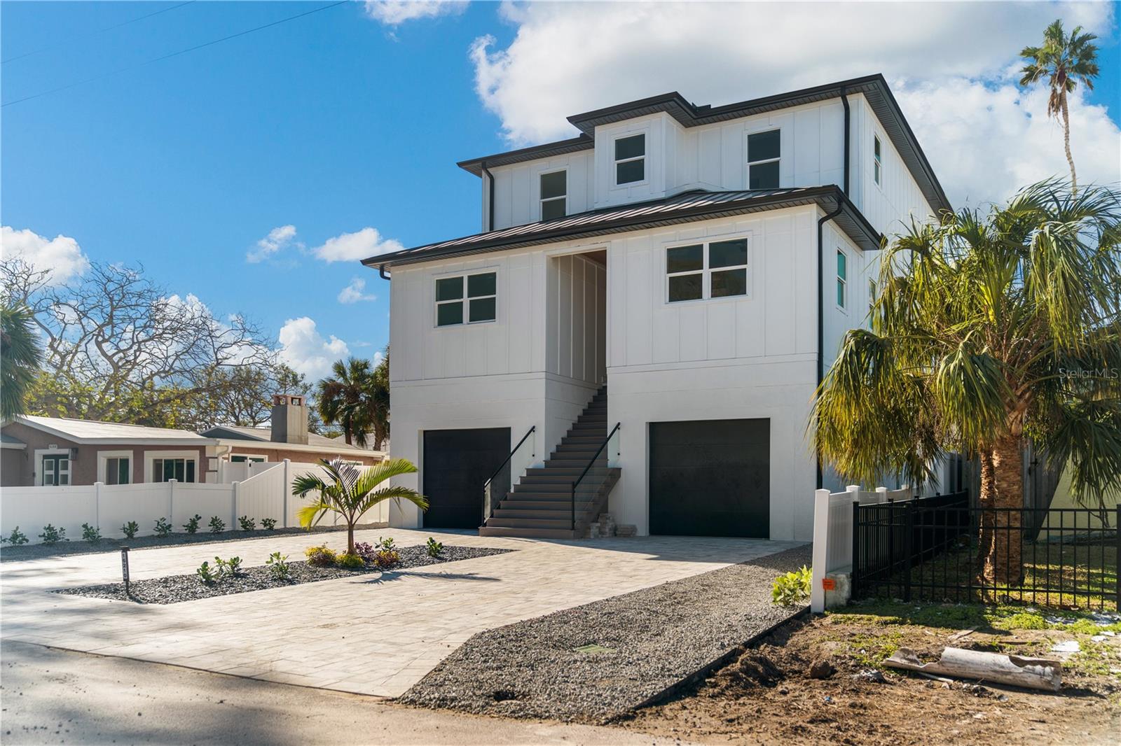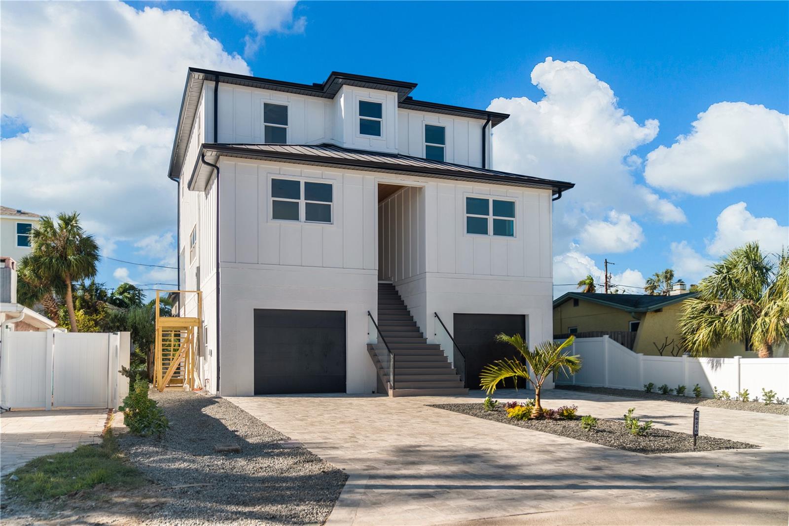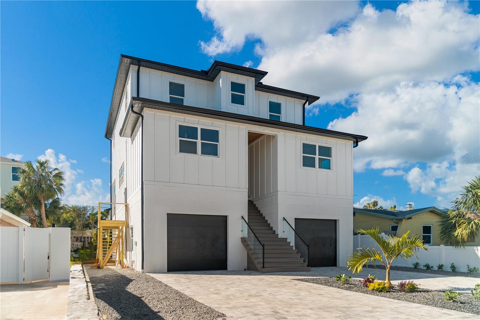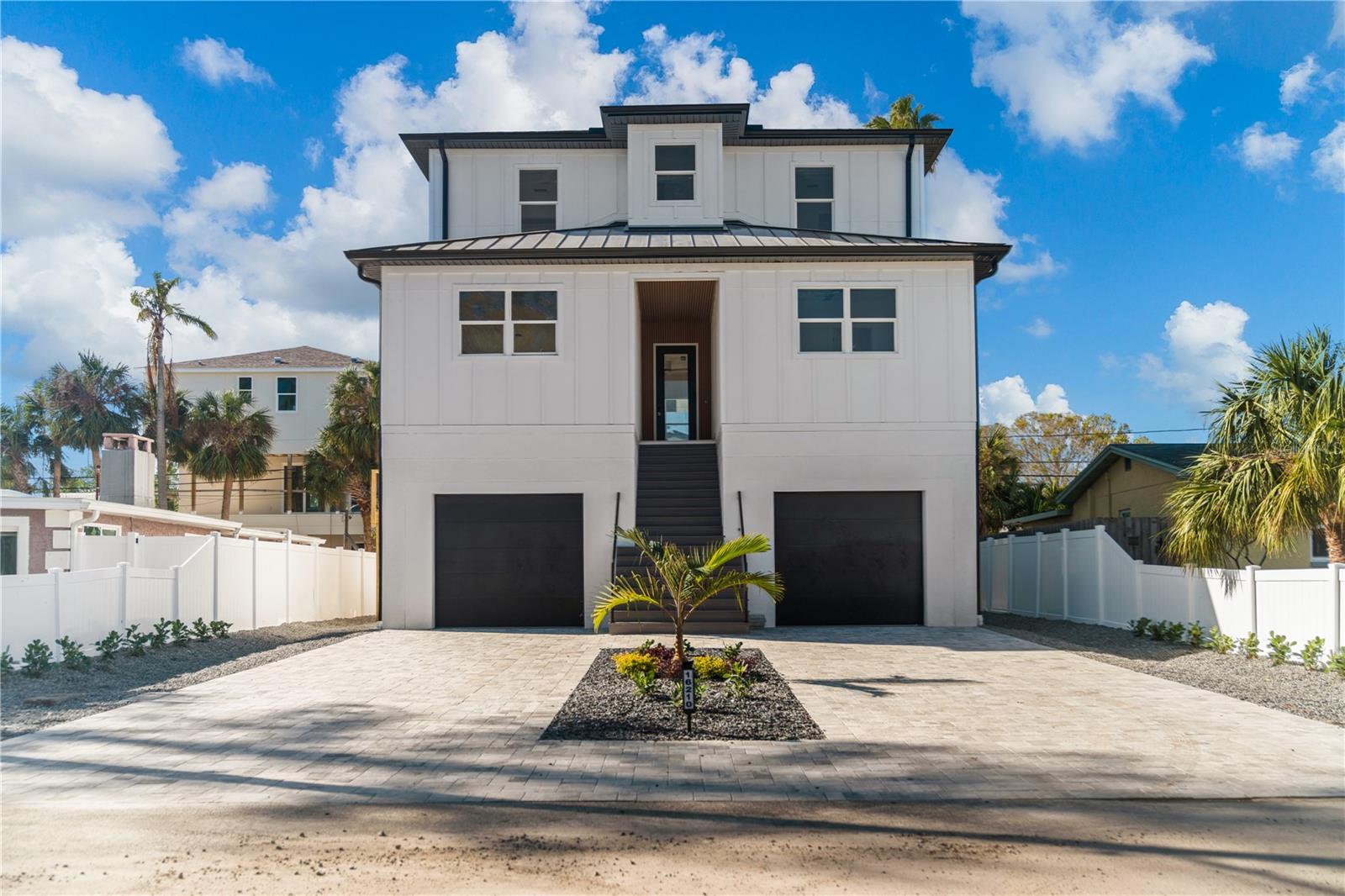 One or more photo(s) has been virtually staged. Under Construction. Offering 2,867 sf of upscale coastal living. 3 Bedroom, Den and 3 Bath Beach Home. The modern kitchen is furnished with GE Cafe Series appliances. High quality custom cabinets are throughout the home. The primary bedroom has a large walk-in custom closet. The primary en suite bathroom will be sure to make you feel pampered, with its spacious bath area. Be sure to relax in your elegant free- standing tub. Enjoy the expansive feeling with 10’ ceilings on all three floors and 8’ hurricane rated french doors in the living area. Engineered wood floors add a rich warm feeling throughout. The garage is a garage of all garages, 10 foot high ceilings, three cars+, car-rated tiled floors and insulated walls. Featuring a unique, rarely found, 38 foot screened deck with ample entertaining space The builder owns his own flooring and cabinet company. All closets have custom built-ins. An optional pool has been designed. You are just a few minute walk or bike ride to the world renowned white sands of Redington Beach. Great restaurants are nearby. Just 25 minutes to Tampa International Airport. Come live the Florida Gulf Coast Life. Sun bathing, fishing, kayaking, beach sunsets, pickleball and much more. *Some of the photos are digital renderings*