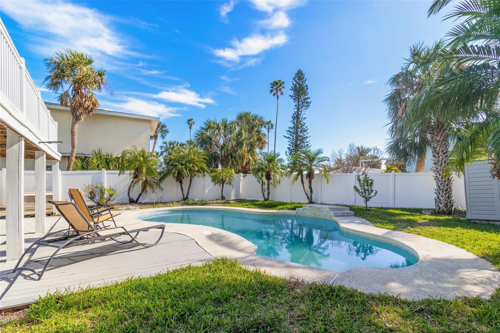 Motivated Seller! GREAT VACATION BEACH HOME! Stay high and dry in this elevated, Redington Beach pool home which was not effected by recent Hurricanes. (Recently passed 4 POINT INSPECTION ) This home is situated just blocks away from the most breathtaking SUNSET VIEWS, Gulf of Mexico, and access to the MOST GORGEOUS BEACHES in the country. This 3 bedroom, 2 bathroom has a primary bedroom with bathroom. The floor plan with vaulted ceilings has lots of natural light and sliders to the front and rear wrap around balcony which is the perfect place for relaxing. Indoor, main level laundry. Plenty of covered parking and extra storage. Metal roof completed in 2002 and custom pool done in 2000. Additional upgrades with vinyl rails, composite deck, impact windows, doors and hardy board siding and water heater in 2020. HVAC updated in 2017. EV Port for car charging. Concrete supports for pilings were added in 2021 for extra protection. New pool pump and electrical box. Paid off Solar panels added in 2021. NO HOA! Short distance to schools, shopping, and minutes away from John's Pass, St. Pete, Clearwater, restaurants, shopping, fishing and golf. Don't miss out on this Redington Beach home that's a perfect spot to enjoy the beach life and all that the Gulf has to offer!! GREAT FOR LONG TERM RENTAL INCOME OPPORTUNITIES!!!