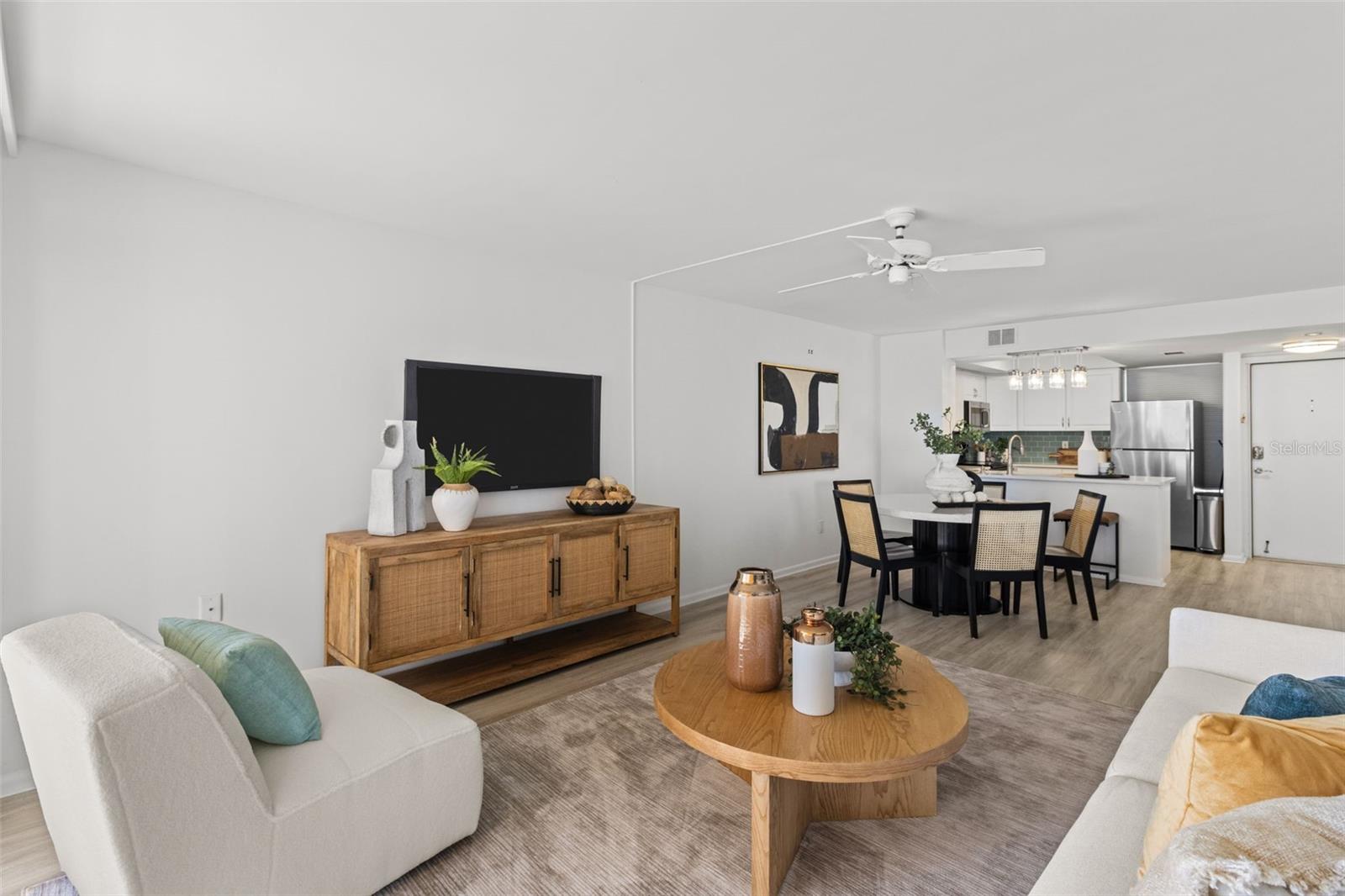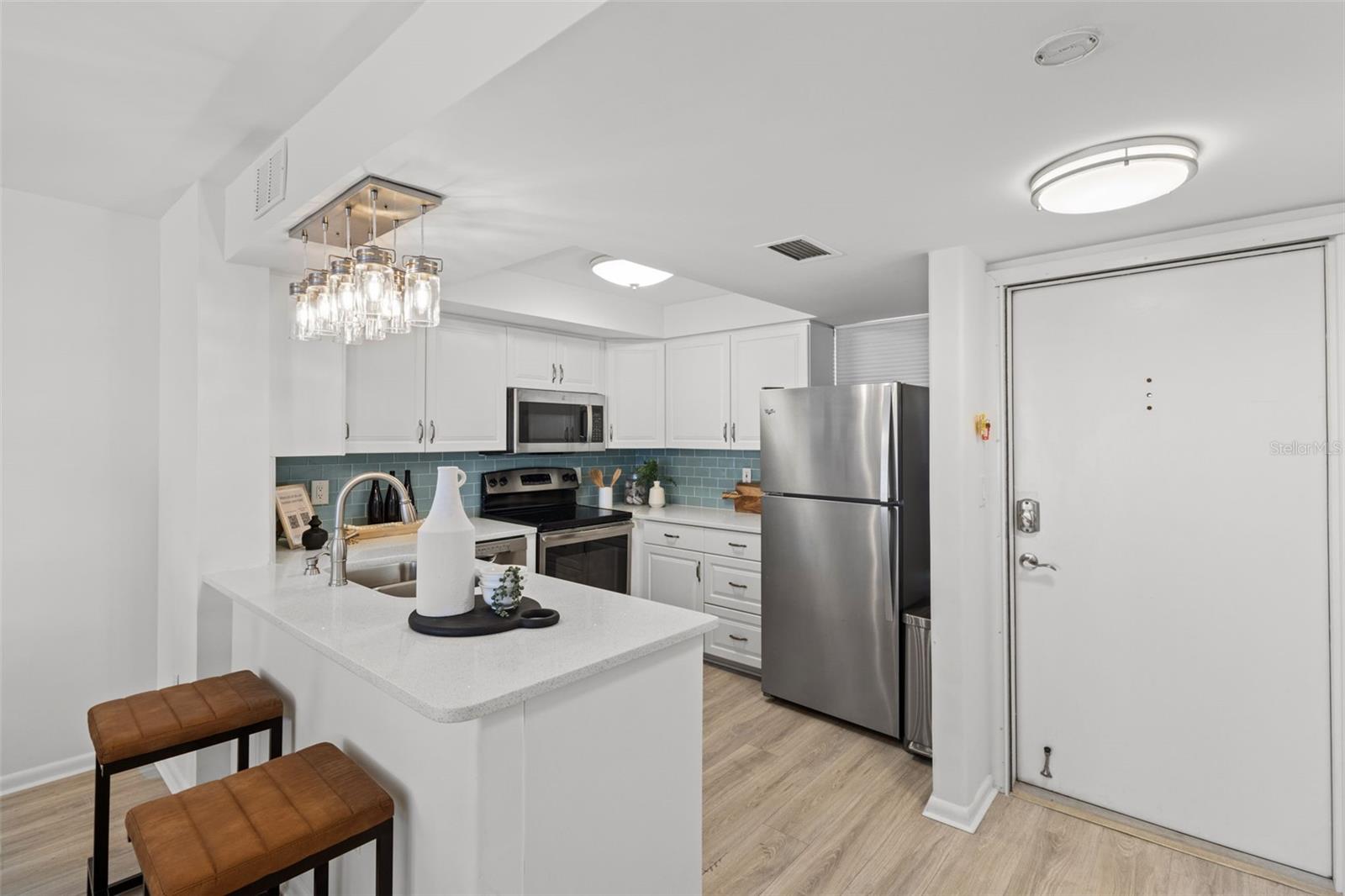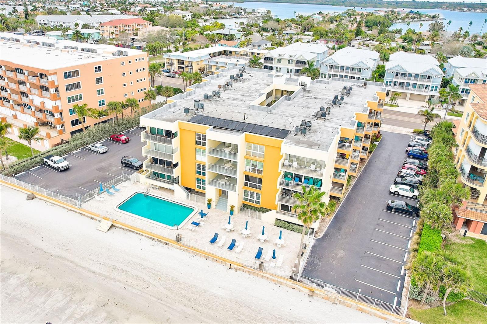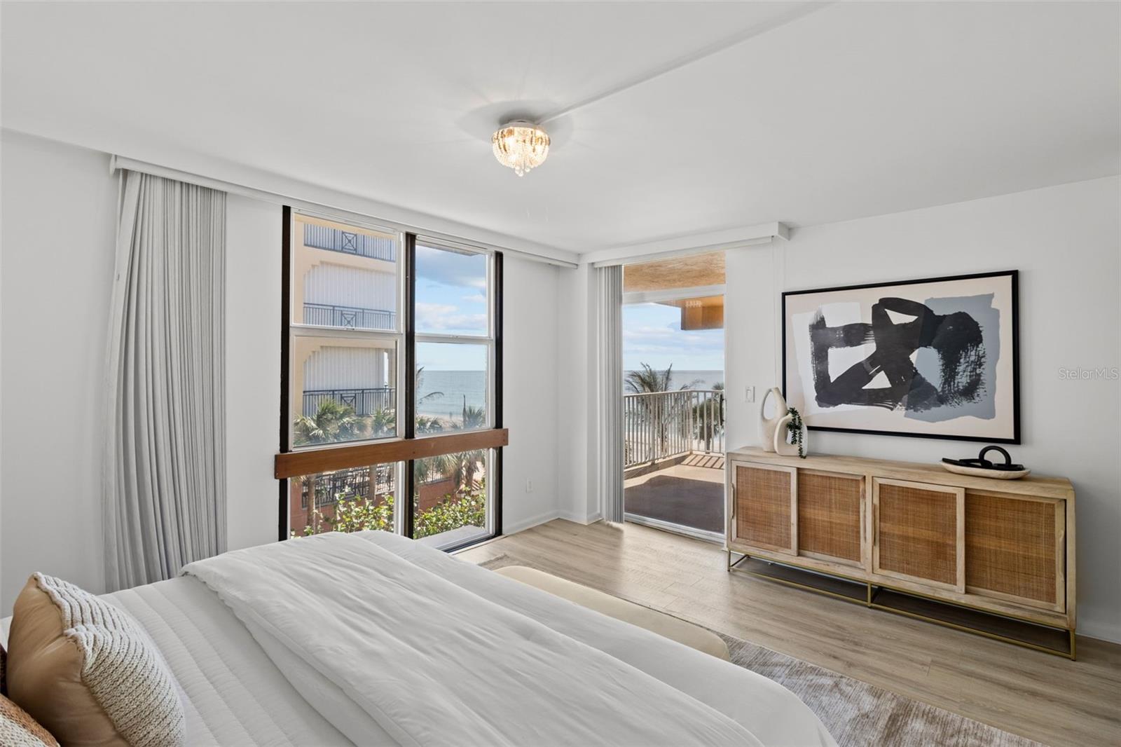 WELCOME TO YOUR SLICE OF PARADISE at this exclusive BOUTIQUE-STYLE condominium, perfectly situated with only 38 units directly on the pristine shores of the Gulf of Mexico. This stunning property has undergone a complete renovation, ensuring a modern and luxurious living experience that combines elegance with comfort. The architecture and design reflect a commitment to quality, making this a truly special place to call home. As you step inside, you are greeted by an inviting open kitchen that serves as the heart of the home. The kitchen features beautiful shaker cabinetry, sleek quartz countertops, and a charming coastal-inspired backsplash. High-end stainless steel appliances, including a convenient bar fridge, perfectly complement this stylish space, making it ideal for entertaining or enjoying a quiet meal. The seamless transition from the kitchen to the open dining area is enhanced by a sliding glass door that opens to a spacious balcony, where you can soak in the beautiful ocean views and fresh sea breeze. Comfort is paramount in this condo, highlighted by the recent installation of a brand new AC condenser unit in 2023, ensuring optimal climate control throughout the year. The master bedroom serves as a sanctuary of relaxation, boasting floor-to-ceiling windows that showcase breathtaking views of the Gulf. The en-suite bathroom is designed for luxury, equipped with a double sink vanity, a tiled walk-in shower, and a seamless glass door enclosure. Additionally, the spacious closet is thoughtfully designed with built-in shelving, providing ample storage for your wardrobe and personal belongings. Convenience continues with an adjacent storage room, outfitted with a full-size GE washer and dryer for your laundry needs. There is also dedicated space for extra storage, ensuring a clutter-free living environment tailored to your lifestyle. Whether you are seeking a serene primary residence or a lucrative investment property, this condominium offers versatile options with a 30-day minimum lease period, allowing for both long-term and short-term rentals (minimum 30-days). Don’t miss the chance to own a piece of paradise in this oceanfront gem. DON'T DELAY....SCHEDULE A SHOWING TODAY AND EXPERIENCE COASTAL LIVING AT IT’S FINEST!