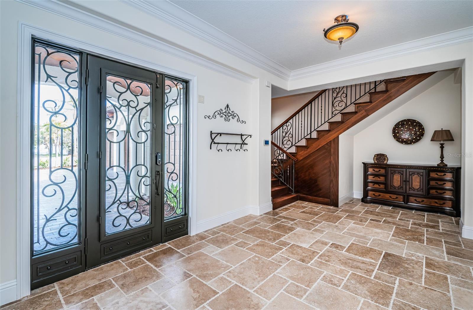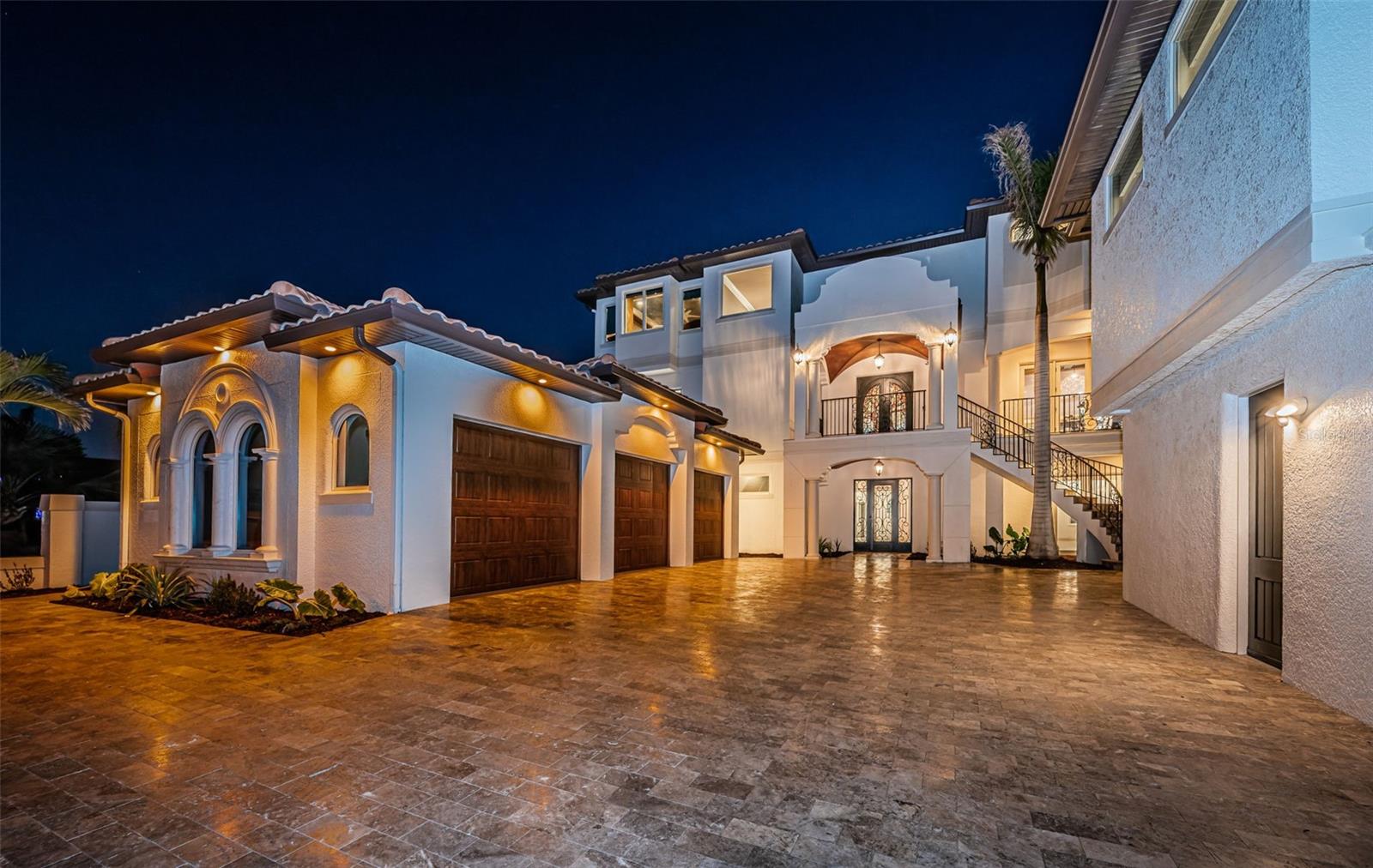 EXTRAORDINARY AND LUXURIOUS BEACHFRONT LIVING IN ONE OF THE FINEST BEACHFRONT ESTATES AVAILABLE IN TAMPA BAY! A masterful and expansive private, resort-style ocean-front estate on a wide 80 feet of pristine natural white sand beach affords endless, unobstructed views of the Gulf. Uncompromising in its architectural details and craftsmanship, this brilliant Tuscan coastal design is situated in a quiet residential area. Your majestic 11,622 total sqft under roof takes advantage of natural light and sweeping water views. Enjoy 6,528 sq ft of resplendent living area, with an additional 3,000 sq ft of superb multi-purpose lower-level space – ideal for entertainment, fitness, gaming and more. Not to be outdone, the detached guest house is perfect for overnight stays or as a nanny’s quarters. Rekindle your joy for cooking in the stunning gourmet kitchen with superb custom designer cabinetry, walk-in pantry, exquisite quartz counters, natural gas cooking, Thermador appliances, lovely island prep center and a separate island dining bar. Relax in the impressive great room with soaring 21ft-high ceilings, Venetian plaster walls, designer gas fireplace, and floor to ceiling window views of the beach/surf. Retire to the luxe owner’s suite and your private balcony with commanding panoramic views of the Gulf, built-in entertainment center, sitting area, fireplace and posh oversized walk-in closet system. Owner’s bath is a sublime, pampering retreat with sumptuous materials, beautifully-encased jetted spa tub, a dazzling walk-in shower design, dedicated cosmetics center and two gorgeous vanities. Three generously-sized guest bedrooms suites, all with water views, are elegantly-appointed with graceful full baths and two private balconies overlooking the beach. Never miss a sunset on your private 1,000 sq ft beach patio – only steps away from white, powdery sand. You'll love the 1,400 sqft of balconies, plush oversized central elevator, a spacious state of the art gas-heated salt-water swimming pool/spa with LED light show, Travertine pavers that are cool to the touch, zero maintenance pet turf and fine landscaping. Relish romantic beach walks, fishing, skimboarding and windsurfing. A grand driveway and attached garage provide parking for up to ten vehicles. This residence was engineered to exceed hurricane standards/building codes with superior all block construction, spray-foam insulation, concrete tile roof and coastal Impact turtle windows. Beautiful limestone and wood flooring, spectacular designer lighting, extraordinary ceiling contours/finishes, epoxy garage flooring, and so much more. Located only minutes away from choice restaurants, shopping, and entertainment. With two international airports within 20 miles, you will easily stay connected. One of the most desirable beachfront homes on Florida’s Gulf Coast – your oceanfront paradise awaits!