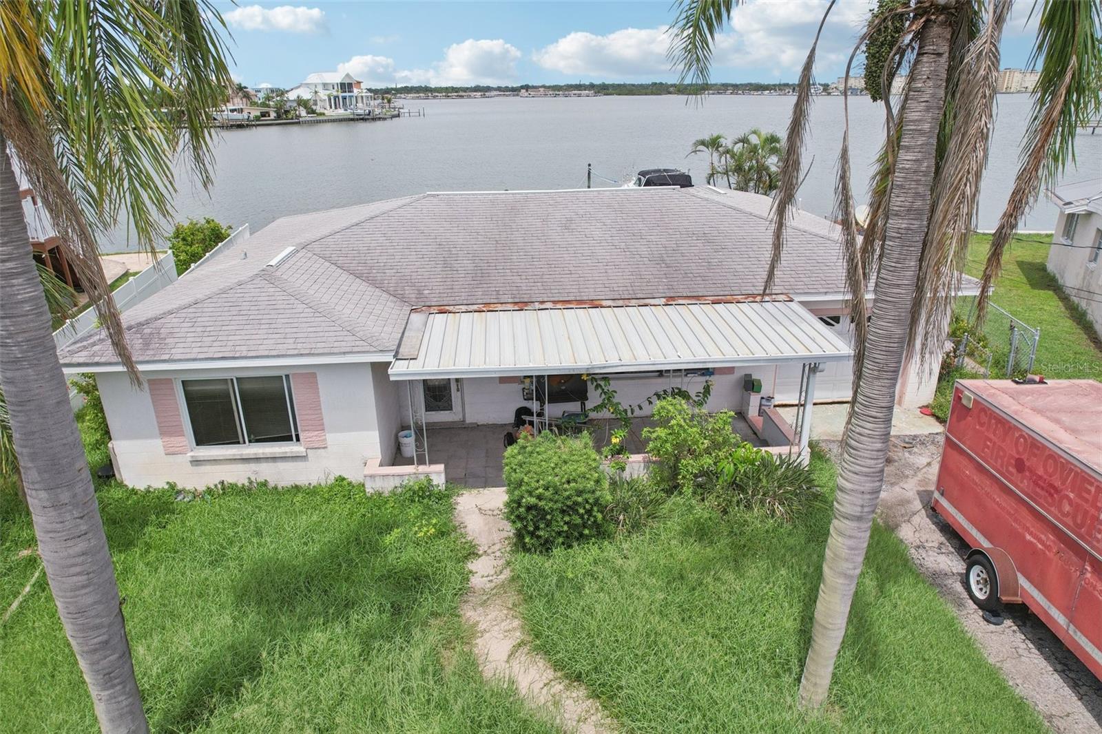 **Property being sold demolished; with permittable ready-to-build plans!** This Redington Beach home, nestled on a point lot with 87 feet of waterfrontage across nearly 8,000 square feet, offers unobstructed, breathtaking views of Boca Ciega Bay. Though significantly impacted by the 2024 hurricanes and being sold as is, its prime location is undeniable. Situated on picturesque Redington Drive, just four blocks from the beach, this property boasts yacht and sailboat parking availability. The seawall is fortified with a concrete cap, ensuring durability. Both sides of the property are securely gated and fenced through the backyard, with "wings" extending over the seawall, providing both privacy and protection. The expansive backyard also presents an ideal setting for an in-ground pool, allowing you to create your own waterfront oasis. Beyond the property's allure, Redington Beach enhances the coastal lifestyle with exclusive "residents only" Gulf-front beach access. This private amenity includes convenient parking, an outdoor shower, and comfortable seating, all for the enjoyment of its residents. The city further complements this vibrant community with access to basketball and shuffleboard courts, and a playground. This is an unparalleled opportunity to bring your vision to life and own a piece of paradise in one of the most desirable areas of the beaches.