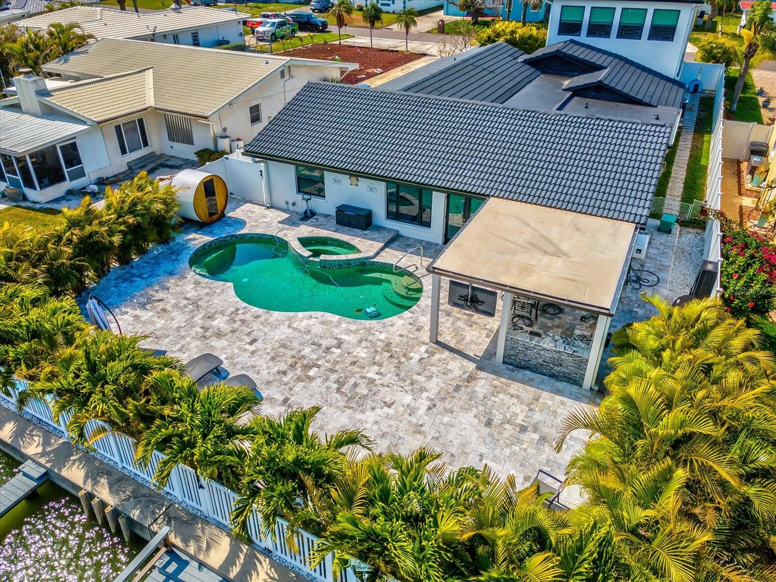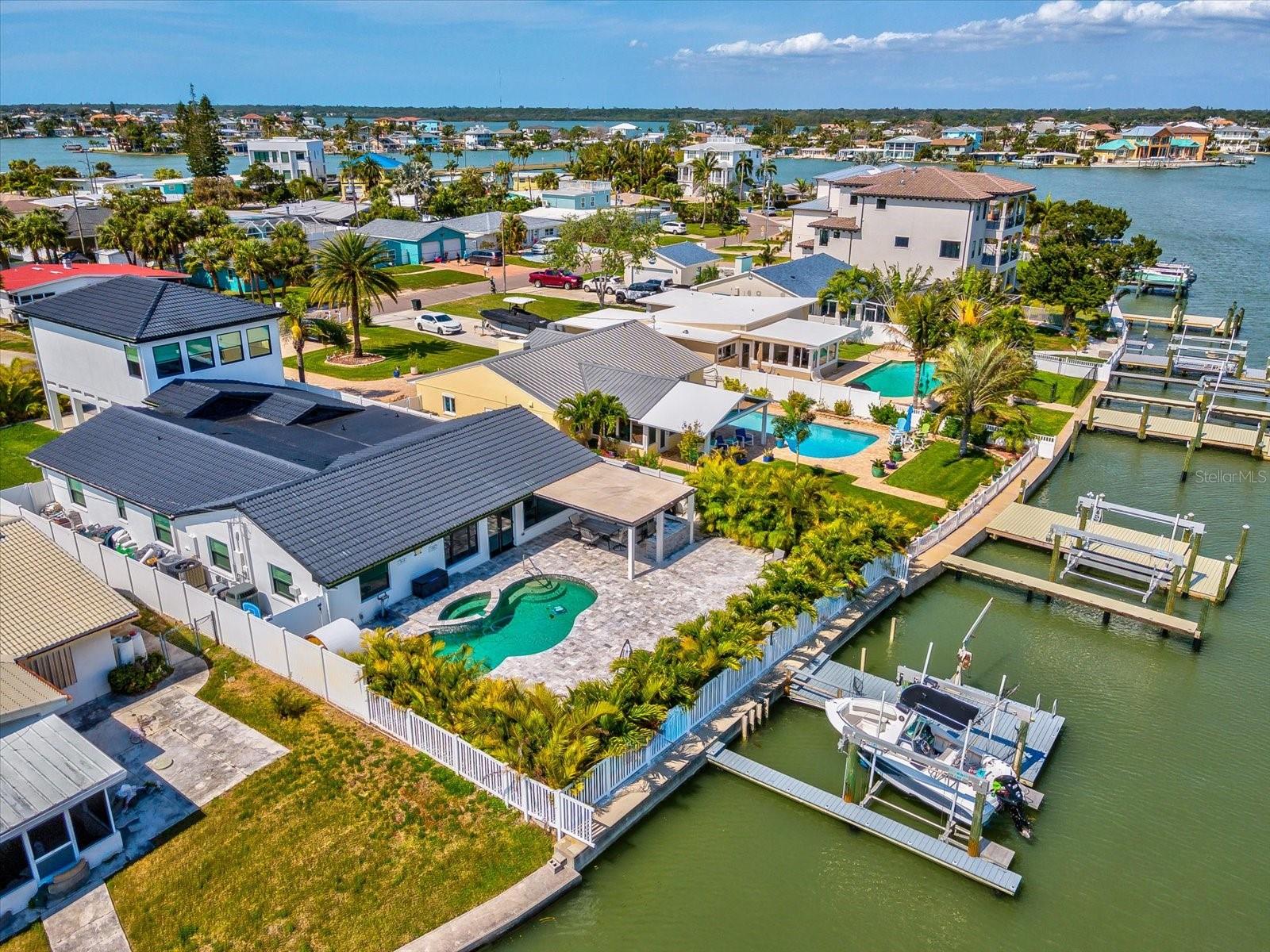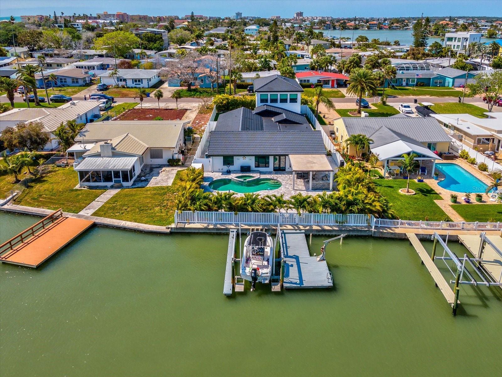Welcome to your piece of paradise! This contemporary waterfront home has been fully renovated down to the studs with over a million dollars of value added top end custom finishes and almost 1500 sq/ft of addition between a new oversized (air-conditioned) garage and living space. As you walk up to the front of the home the regal walkway and mature landscaping gives the home a contemporary yet classic feel. The luscious palms in the front of the home creates a quiet front yard oasis where you can relax and enjoy the world renowned Florida Sunshine. As you enter the home you are immediately welcomed by long views and top-quality finishes. The open floor plan gives you great views of the water and dock while the luscious landscaping provides a classic tropical Florida feel. If you like entertaining, you will not be disappointed as this house has both an interior kitchen that would make any chef proud and an outdoor summer kitchen for classic afternoon barbeques. For car enthusiasts the garage has its own temperature control and is 36 feet long. The master bedroom is conveniently on the first floor and is a private sanctuary with an on-suite bath and large walk-in closet The office, den and upstairs multipurpose room all have clean contemporary looks with floating shelves and tasteful art. Also, this is one of the last locations on the beach that is allowed to have short term rentals!! So if you are an investor or just someone purchasing a second home that is looking for some extra cash flow this is the perfect house for you! And last but far from least this house is walking distance from your own private community beach entrance and the sandy shores of Redington Beach.