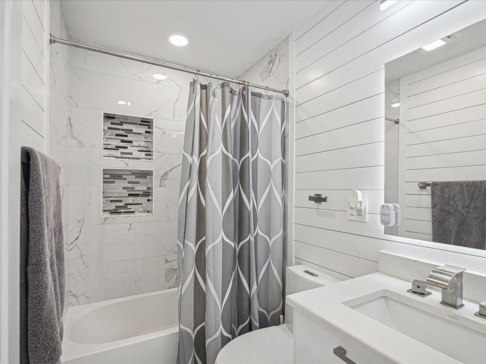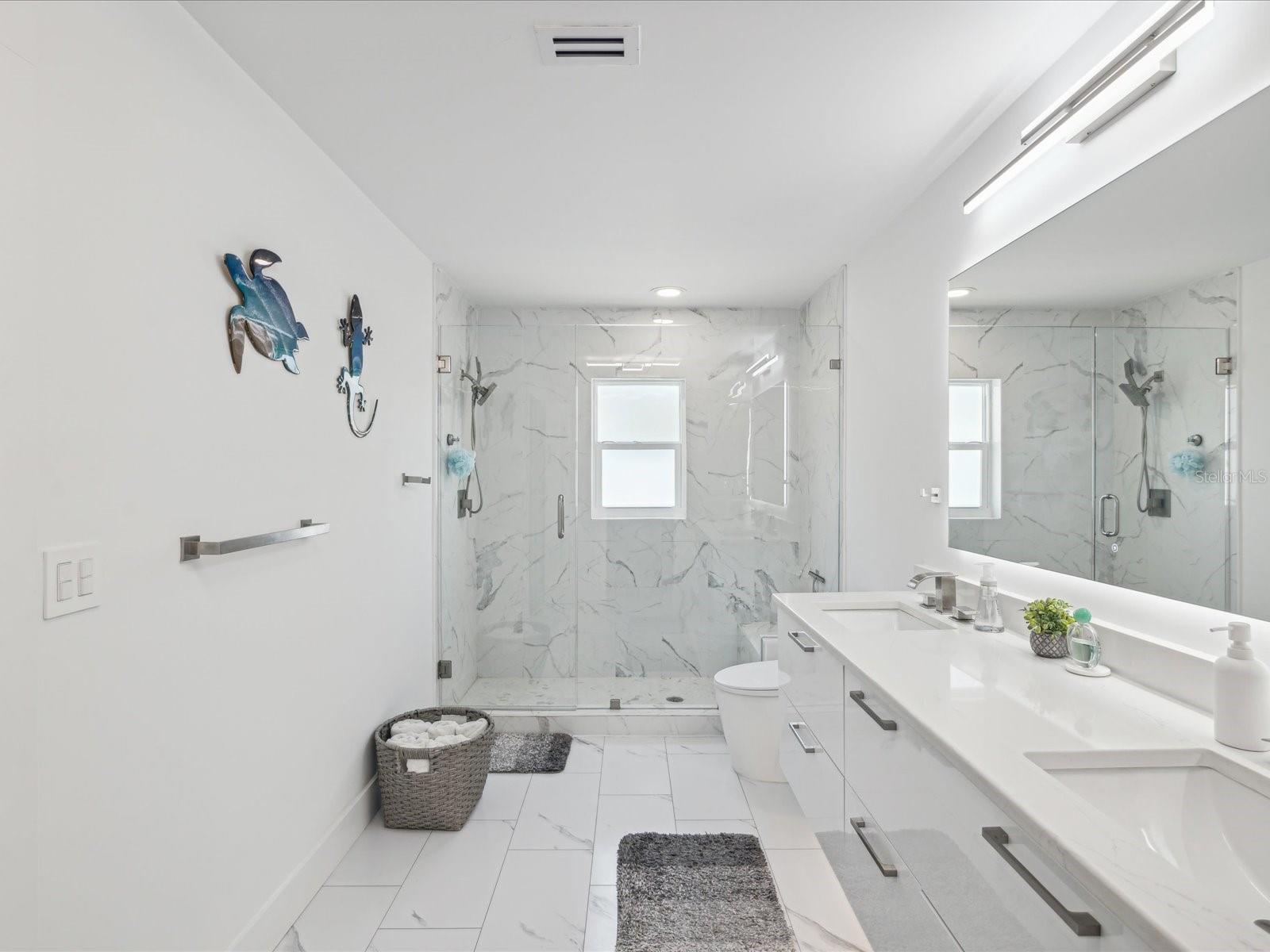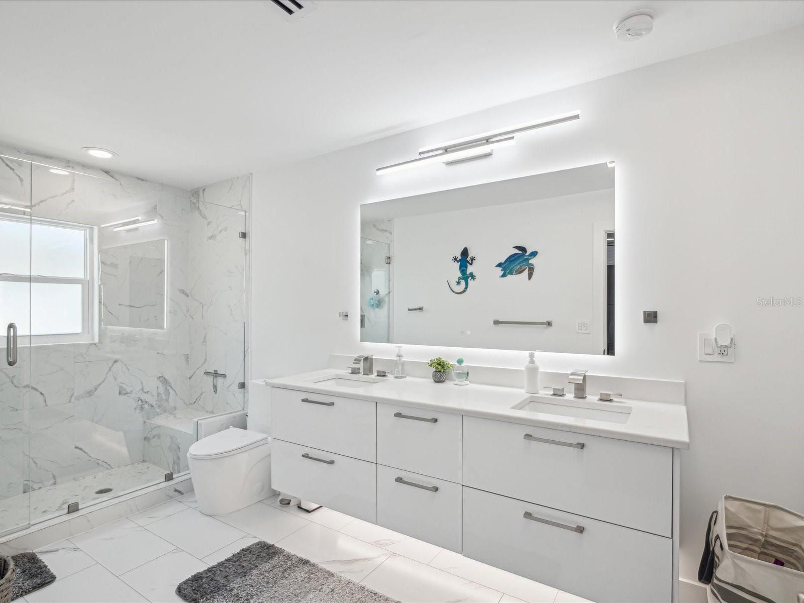 Welcome to your piece of paradise! This contemporary waterfront home has been fully renovated down to the studs with over a million dollars of value added top end custom finishes and almost 1500 sq/ft of addition between a new oversized (air-conditioned) garage and living space. As you walk up to the front of the home the regal walkway and mature landscaping gives the home a contemporary yet classic feel. The luscious palms in the front of the home creates a quiet front yard oasis where you can relax and enjoy the world renowned Florida Sunshine. As you enter the home you are immediately welcomed by long views and top-quality finishes. The open floor plan gives you great views of the water and dock while the luscious landscaping provides a classic tropical Florida feel. If you like entertaining, you will not be disappointed as this house has both an interior kitchen that would make any chef proud and an outdoor summer kitchen for classic afternoon barbeques. For car enthusiasts the garage has its own temperature control and is 36 feet long. The master bedroom is conveniently on the first floor and is a private sanctuary with an on-suite bath and large walk-in closet The office, den and upstairs multipurpose room all have clean contemporary looks with floating shelves and tasteful art. Also, this is one of the last locations on the beach that is allowed to have short term rentals!! So if you are an investor or just someone purchasing a second home that is looking for some extra cash flow this is the perfect house for you! And last but far from least this house is walking distance from your own private community beach entrance and the sandy shores of Redington Beach.