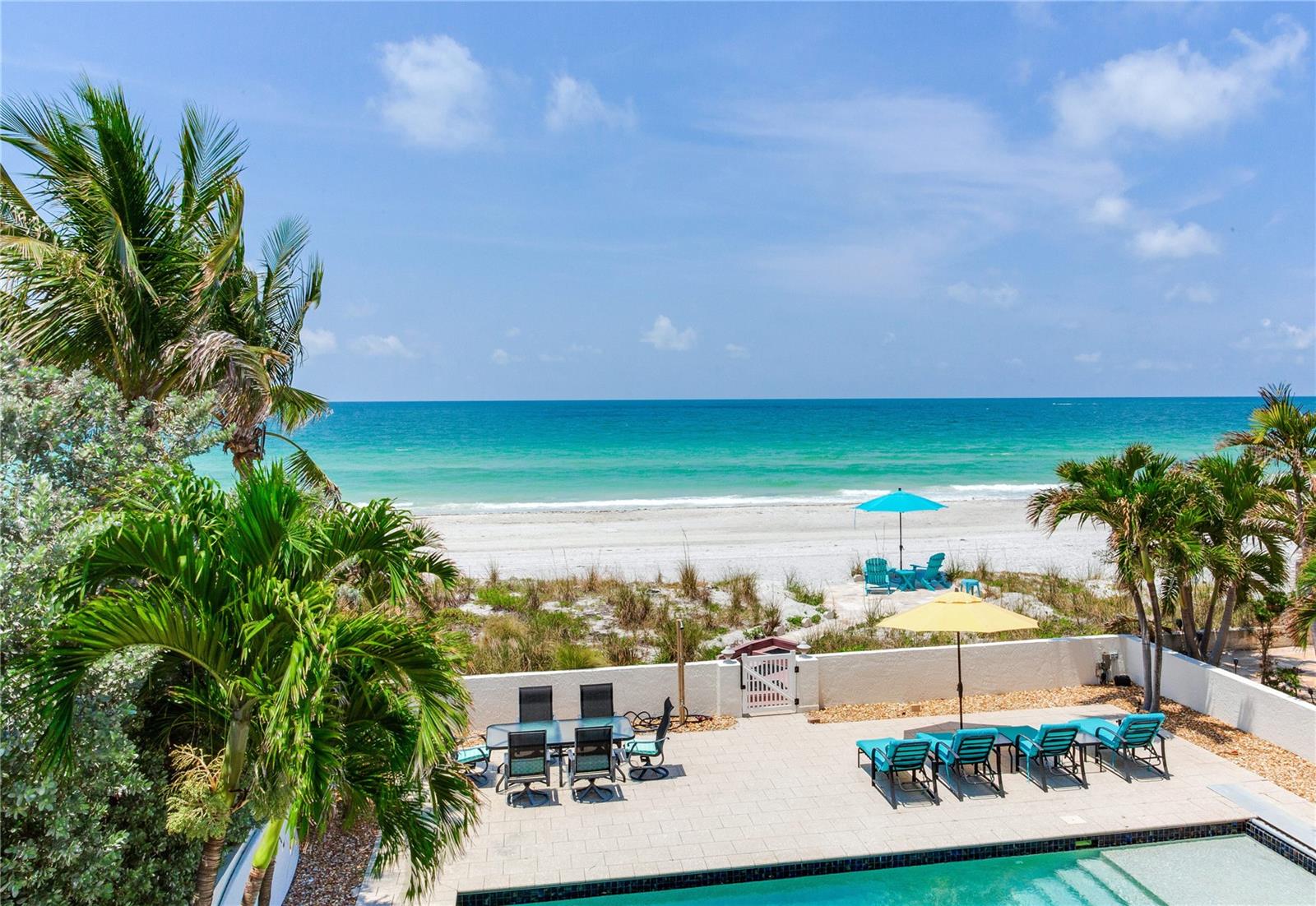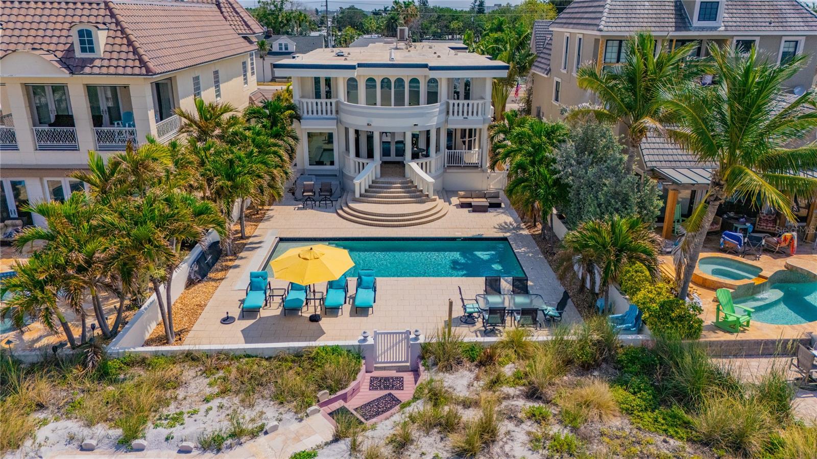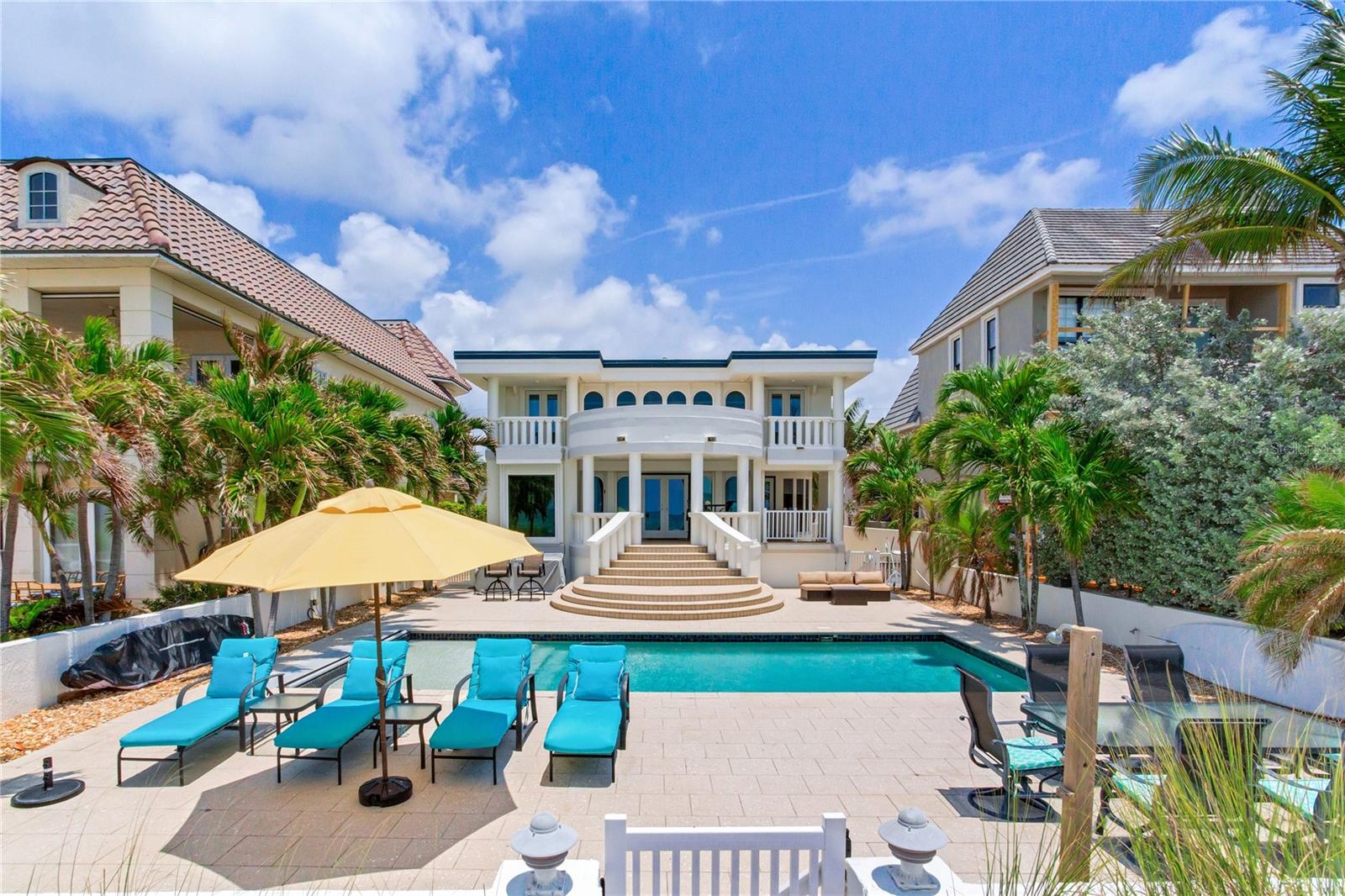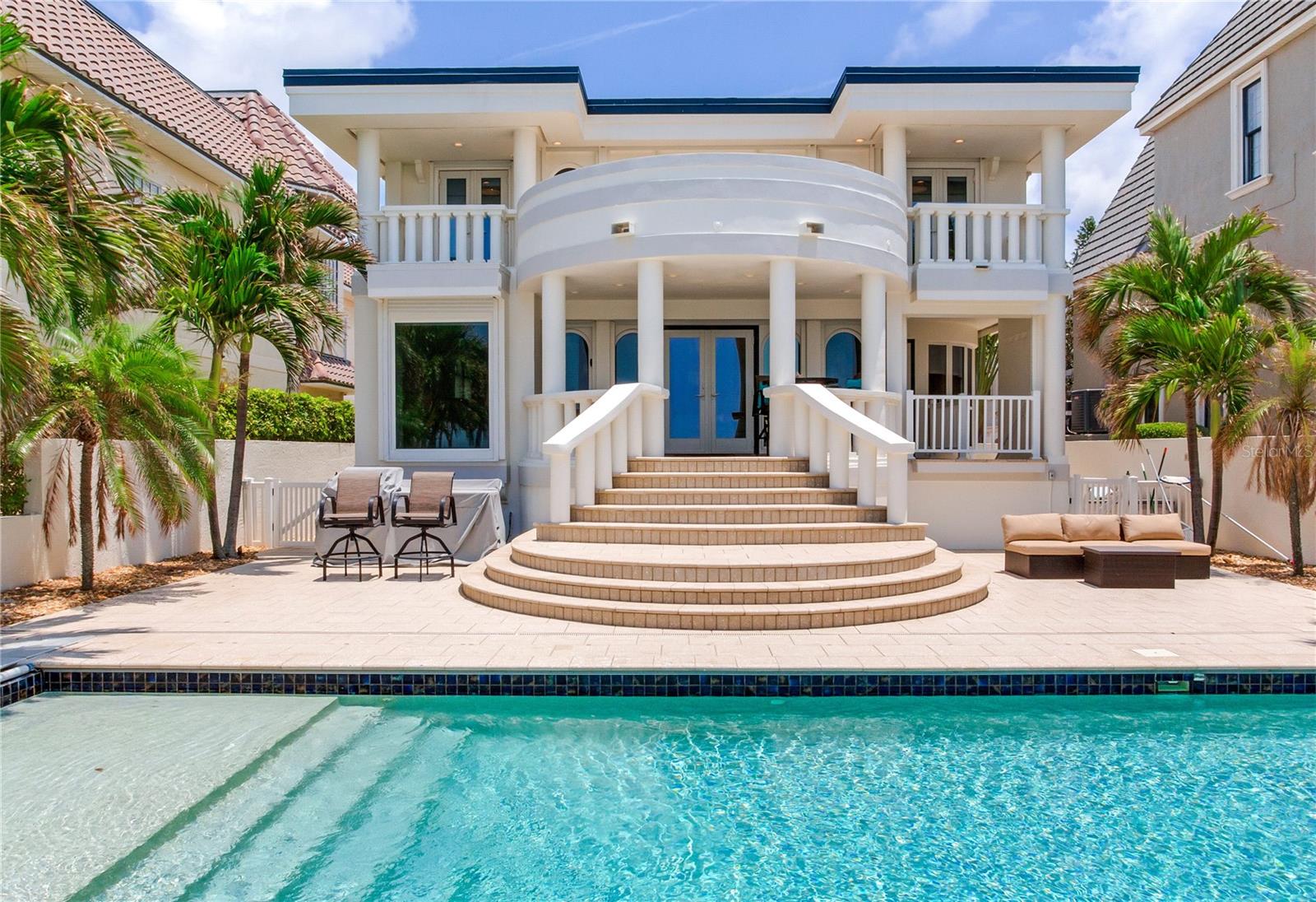 BEACHFRONT ESTATE IN REDINGTON BEACH SPRAWLING 4357 SQ FT Breathtaking describes this amazing beachfront estate directly on the white sands of Redington Beach. With 4 bedrooms and 5 ½ baths, this spacious home is the perfect vacation retreat or full-time residence. From the chef’s kitchen featuring gorgeous countertops, stainless steel appliances, a gas range, and a convection oven, to the living room with a two-story ceiling and adjoining dining room, each living space has been designed to enjoy the spectacular views of the pool, beach, and calm Gulf waters. Just off the living room, your covered lanai overlooks the breathtaking beachfront backyard. This outdoor oasis features a large pool with resistance jets and a motorized safety cover, an outdoor kitchen, and forever views of the Gulf. To round off the first floor you have two large guest rooms with ensuite bathrooms for your guests. The second-floor primary bedroom is expansive and features amazing water views, two bathrooms, two walk-in closets, and a private balcony to experience the romance of Redington Beach’s picturesque sunsets. Down the hall is another guest bedroom and access to a guest bathroom. The laundry room is located on the second floor. The oversized two-car garage leads to a large storage room that extends underneath the entire home. Come view this beautiful oasis today!