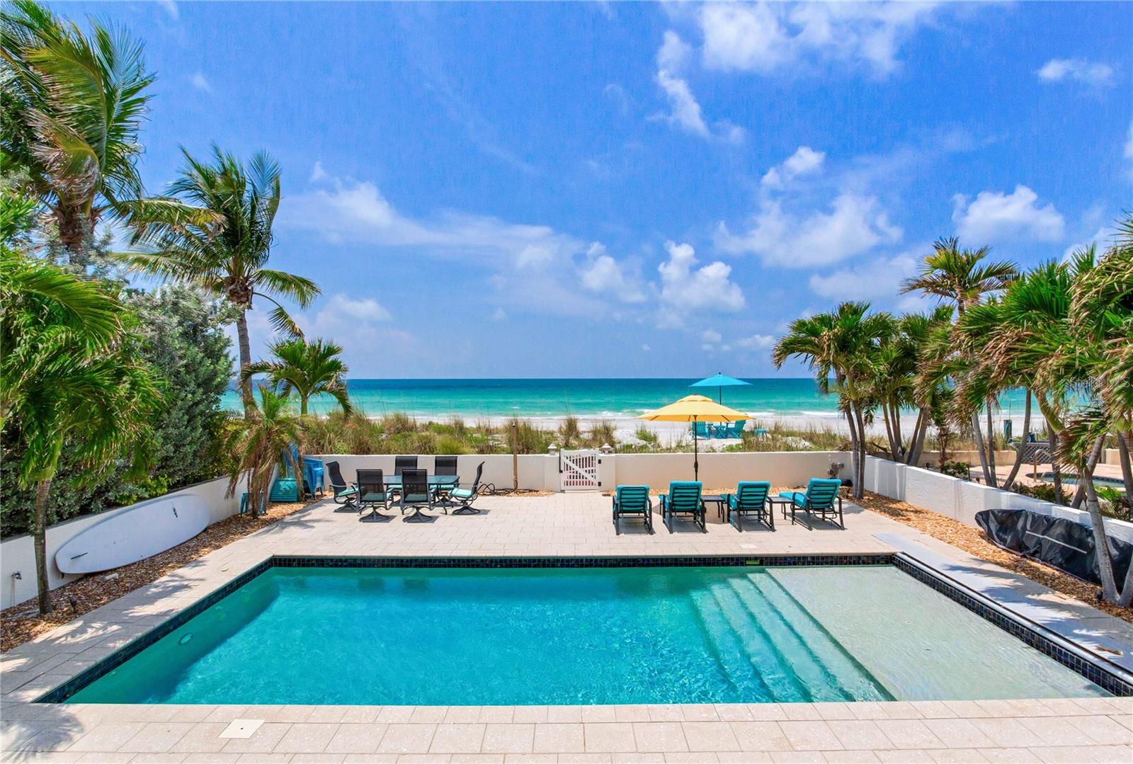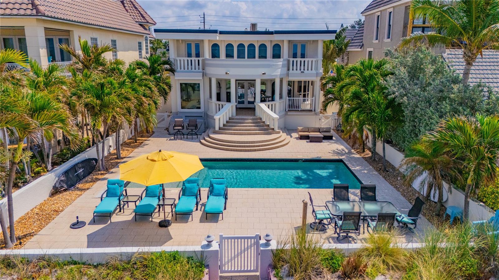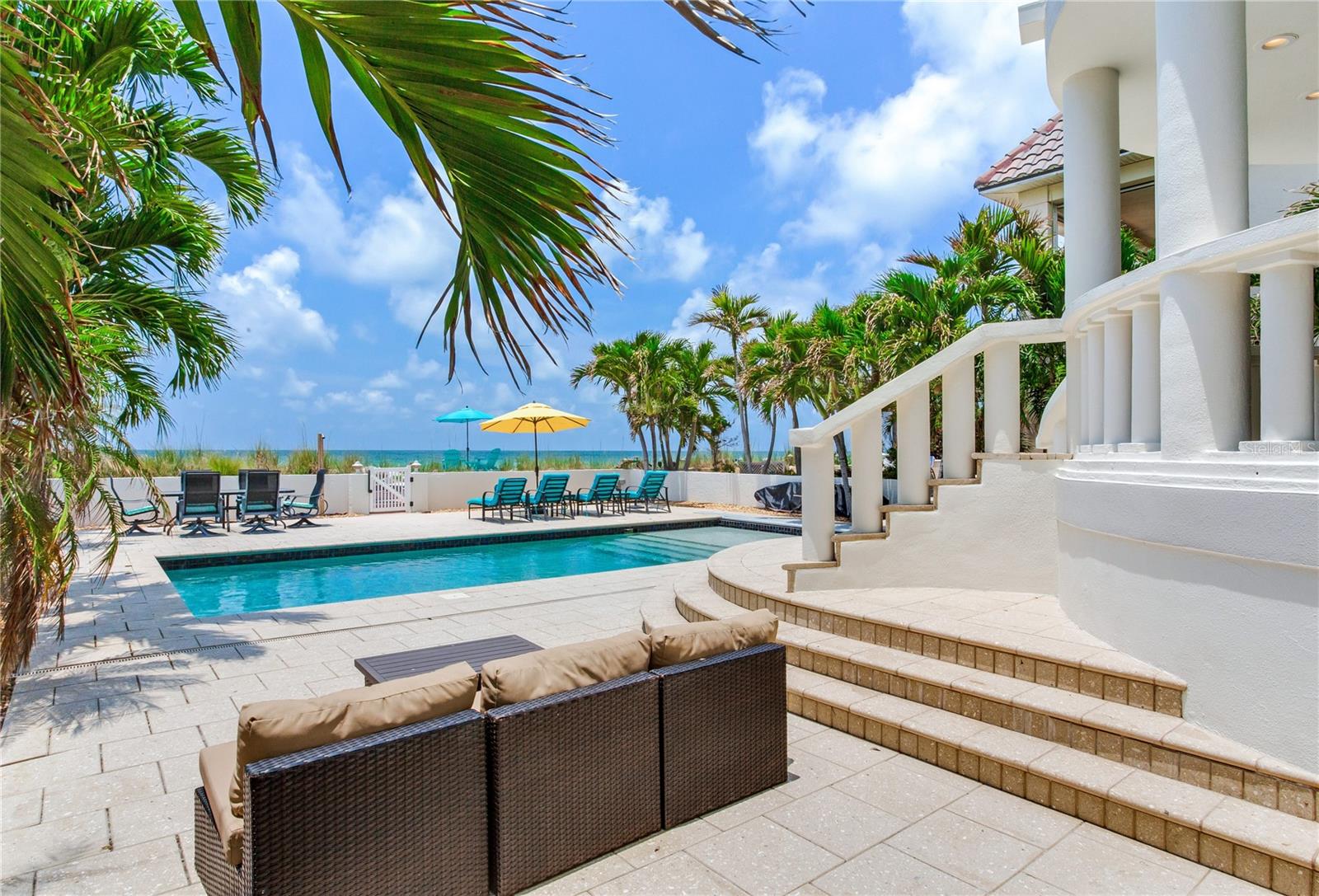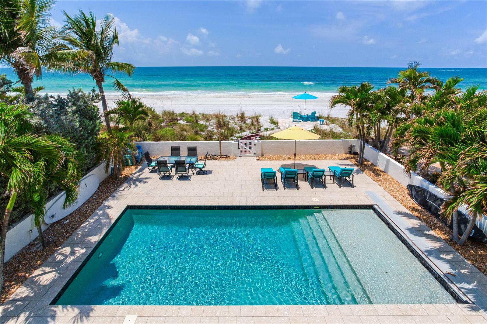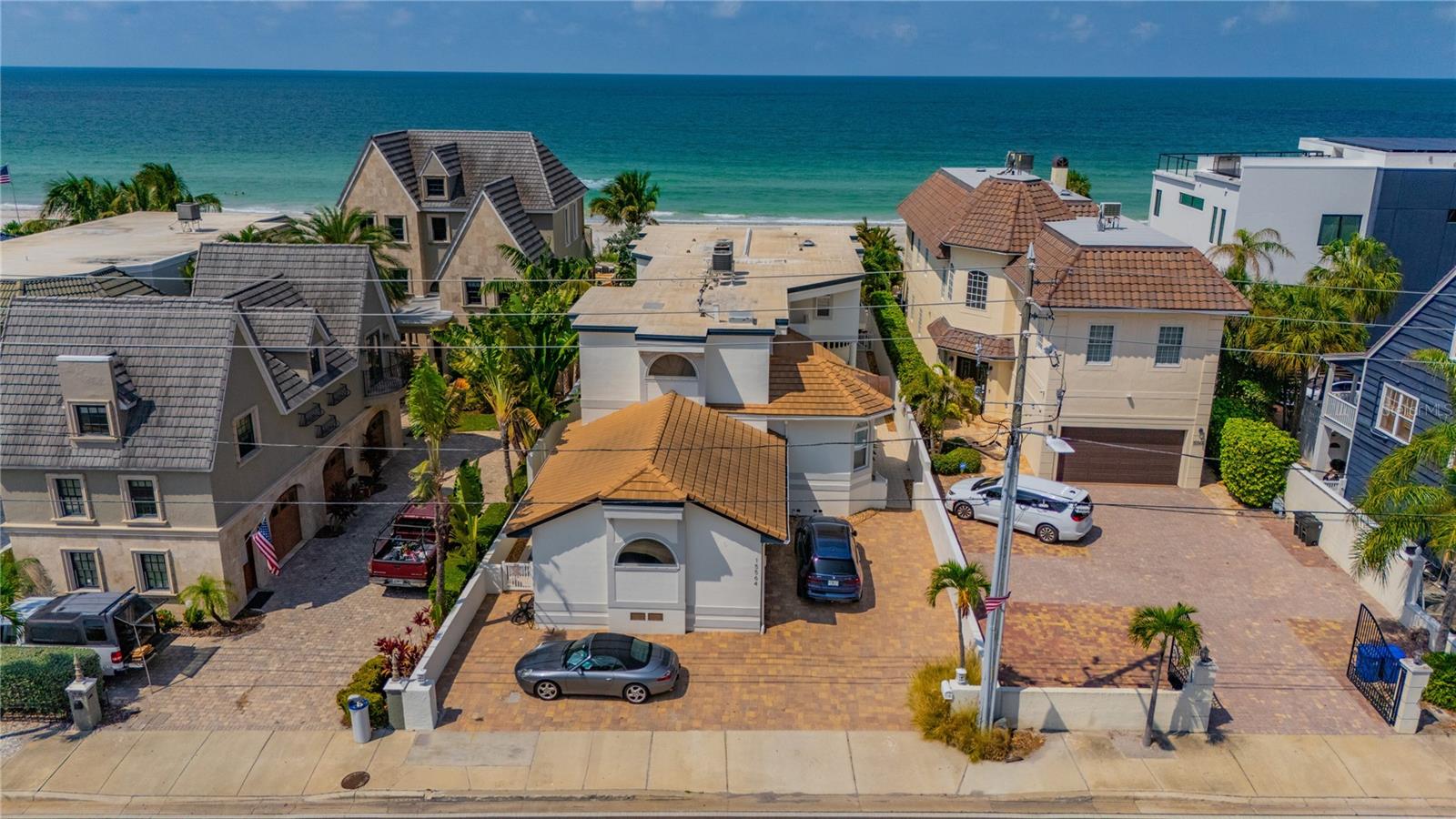 BEACHFRONT ESTATE IN REDINGTON BEACH SPRAWLING 4357 SQ FT Breathtaking describes this amazing beachfront estate directly on the white sands of Redington Beach. With 4 bedrooms and 5 ½ baths, this spacious home is the perfect vacation retreat or full-time residence. From the chef’s kitchen featuring gorgeous countertops, stainless steel appliances, a gas range, and a convection oven, to the living room with a two-story ceiling and adjoining dining room, each living space has been designed to enjoy the spectacular views of the pool, beach, and calm Gulf waters. Just off the living room, your covered lanai overlooks the breathtaking beachfront backyard. This outdoor oasis features a large pool with resistance jets and a motorized safety cover, an outdoor kitchen, and forever views of the Gulf. To round off the first floor you have two large guest rooms with ensuite bathrooms for your guests. The second-floor primary bedroom is expansive and features amazing water views, two bathrooms, two walk-in closets, and a private balcony to experience the romance of Redington Beach’s picturesque sunsets. Down the hall is another guest bedroom and access to a guest bathroom. The laundry room is located on the second floor. The oversized two-car garage leads to a large storage room that extends underneath the entire home. Come view this beautiful oasis today!