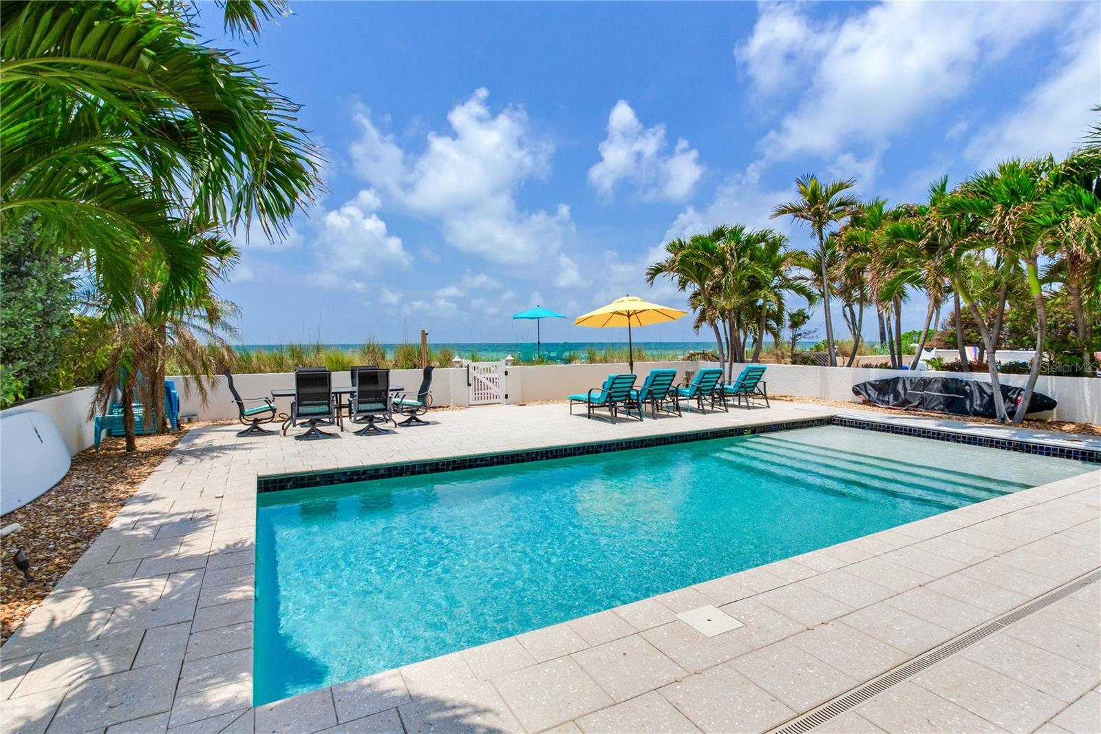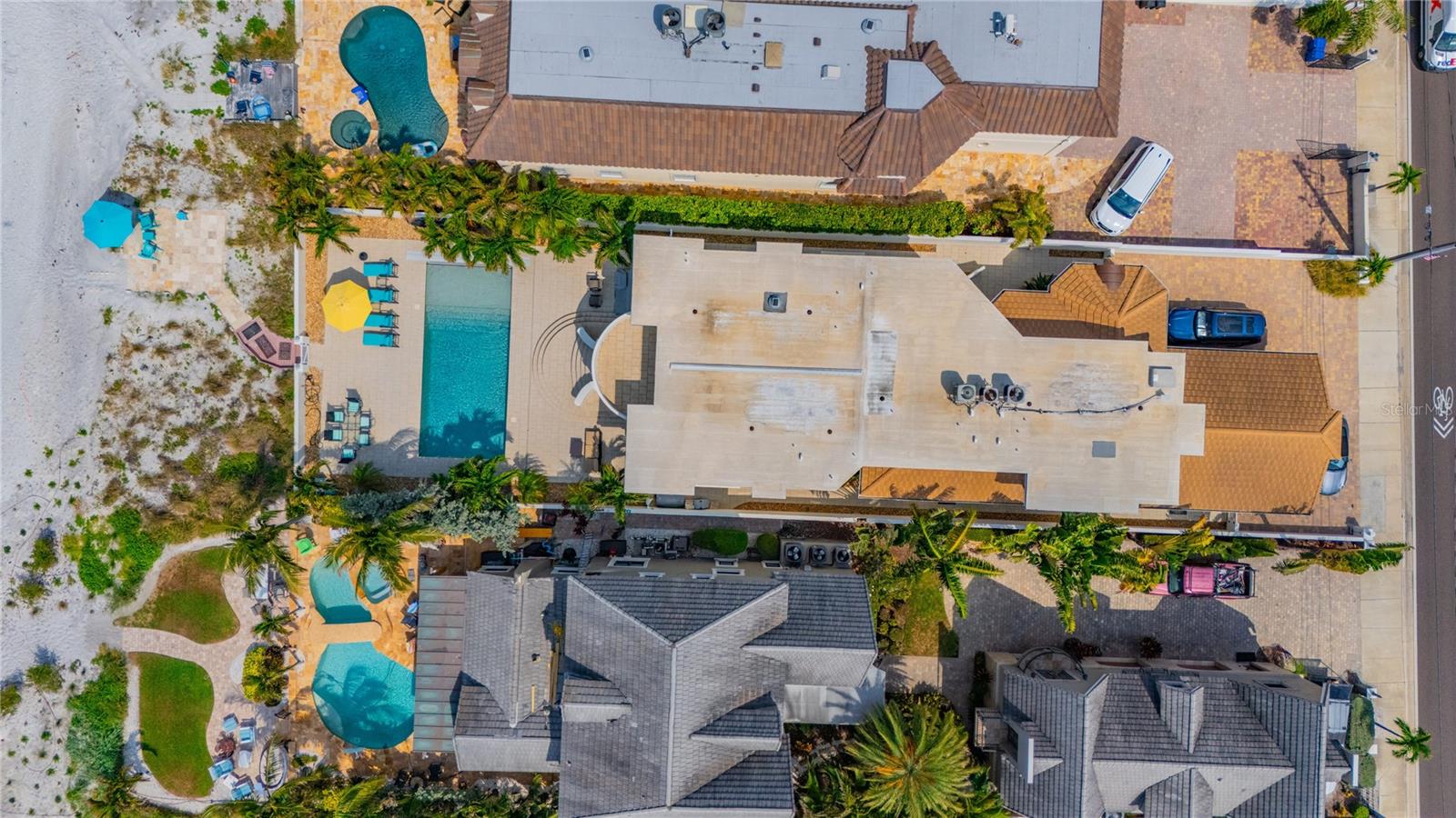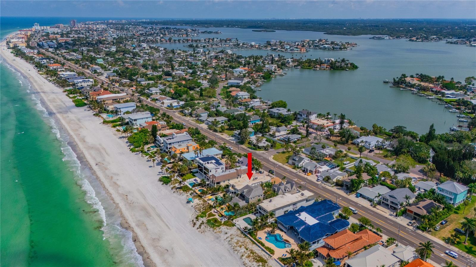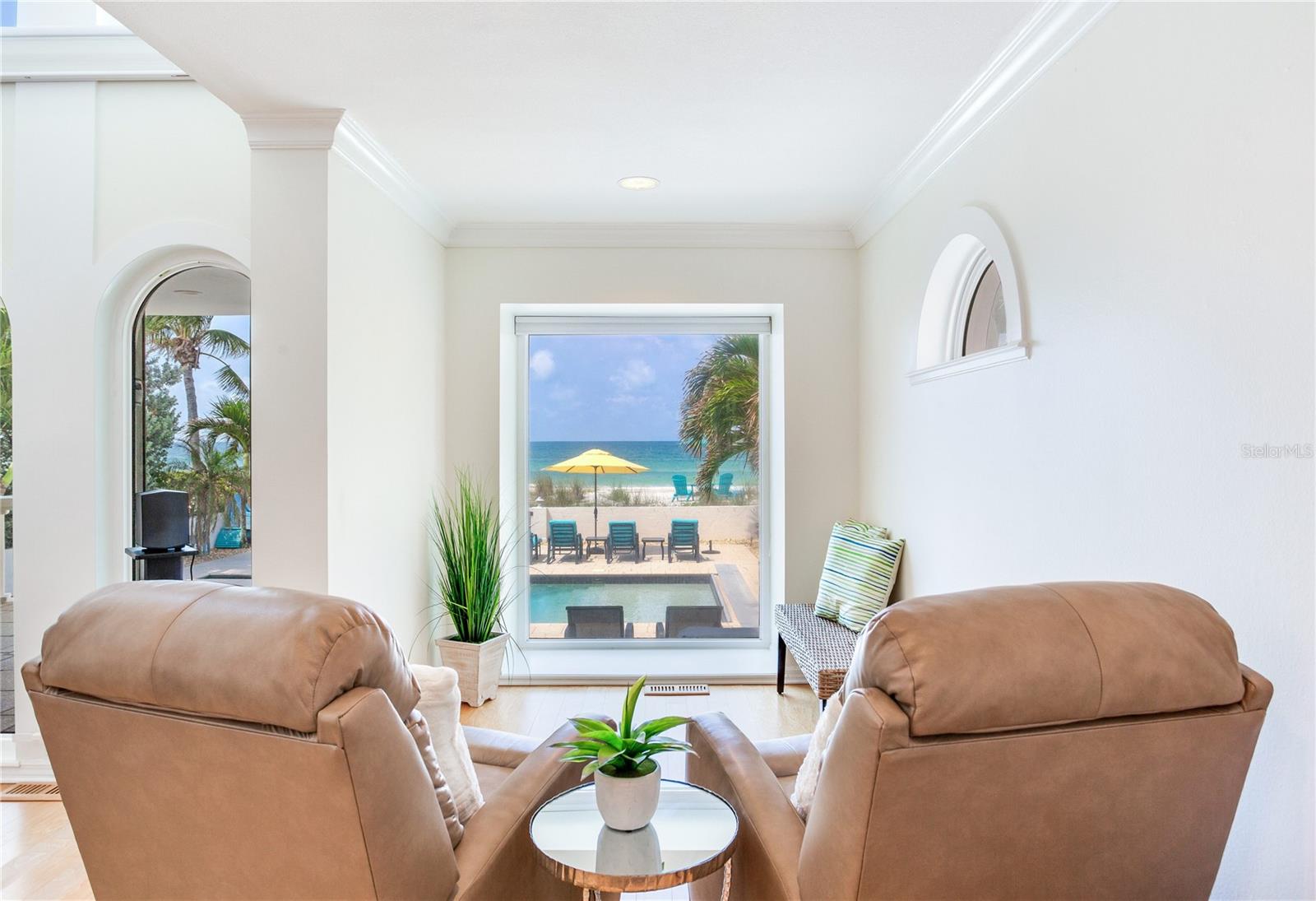 BEACHFRONT ESTATE IN REDINGTON BEACH SPRAWLING 4357 SQ FT Breathtaking describes this amazing beachfront estate directly on the white sands of Redington Beach. With 4 bedrooms and 5 ½ baths, this spacious home is the perfect vacation retreat or full-time residence. From the chef’s kitchen featuring gorgeous countertops, stainless steel appliances, a gas range, and a convection oven, to the living room with a two-story ceiling and adjoining dining room, each living space has been designed to enjoy the spectacular views of the pool, beach, and calm Gulf waters. Just off the living room, your covered lanai overlooks the breathtaking beachfront backyard. This outdoor oasis features a large pool with resistance jets and a motorized safety cover, an outdoor kitchen, and forever views of the Gulf. To round off the first floor you have two large guest rooms with ensuite bathrooms for your guests. The second-floor primary bedroom is expansive and features amazing water views, two bathrooms, two walk-in closets, and a private balcony to experience the romance of Redington Beach’s picturesque sunsets. Down the hall is another guest bedroom and access to a guest bathroom. The laundry room is located on the second floor. The oversized two-car garage leads to a large storage room that extends underneath the entire home. Come view this beautiful oasis today!
