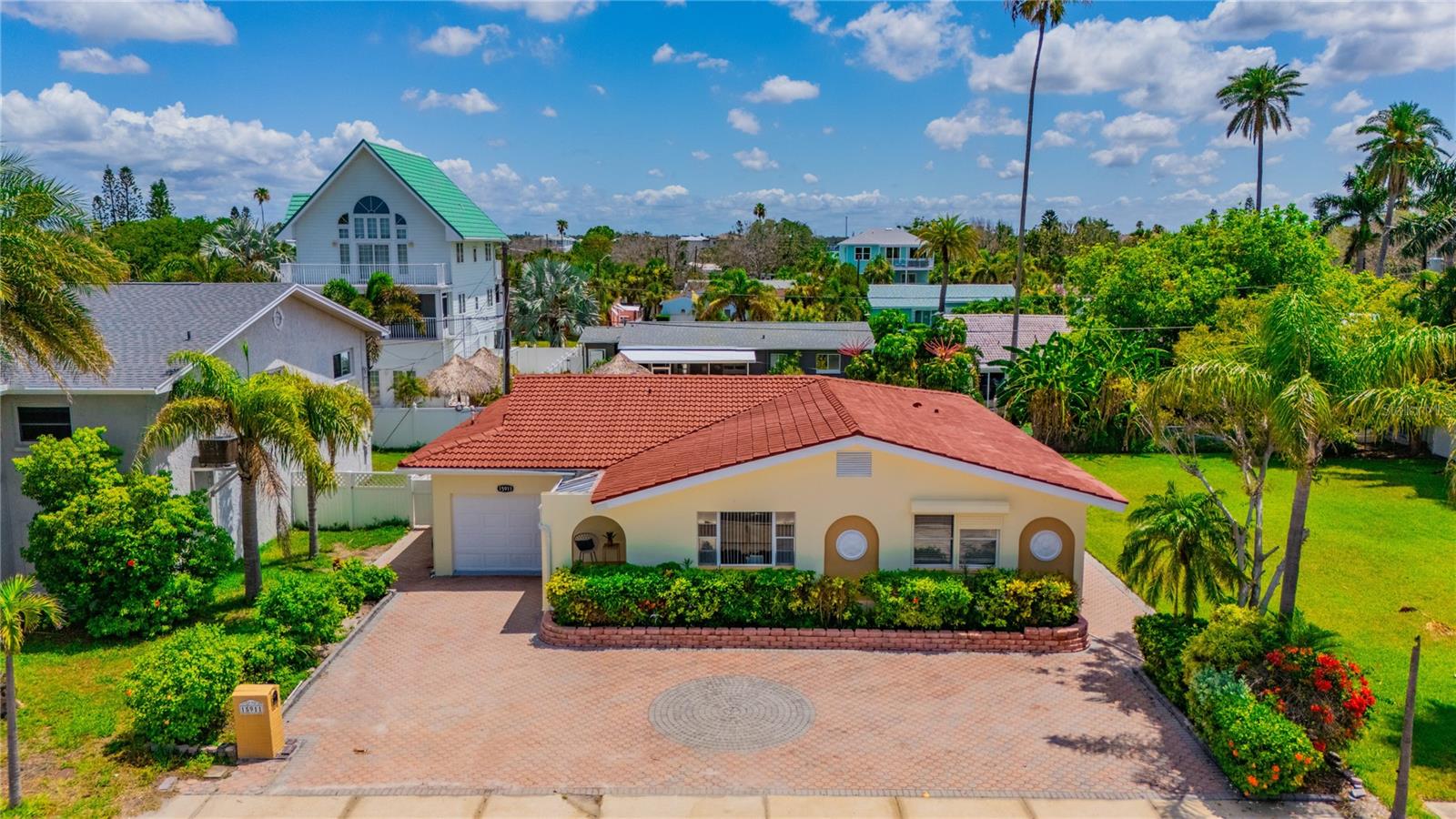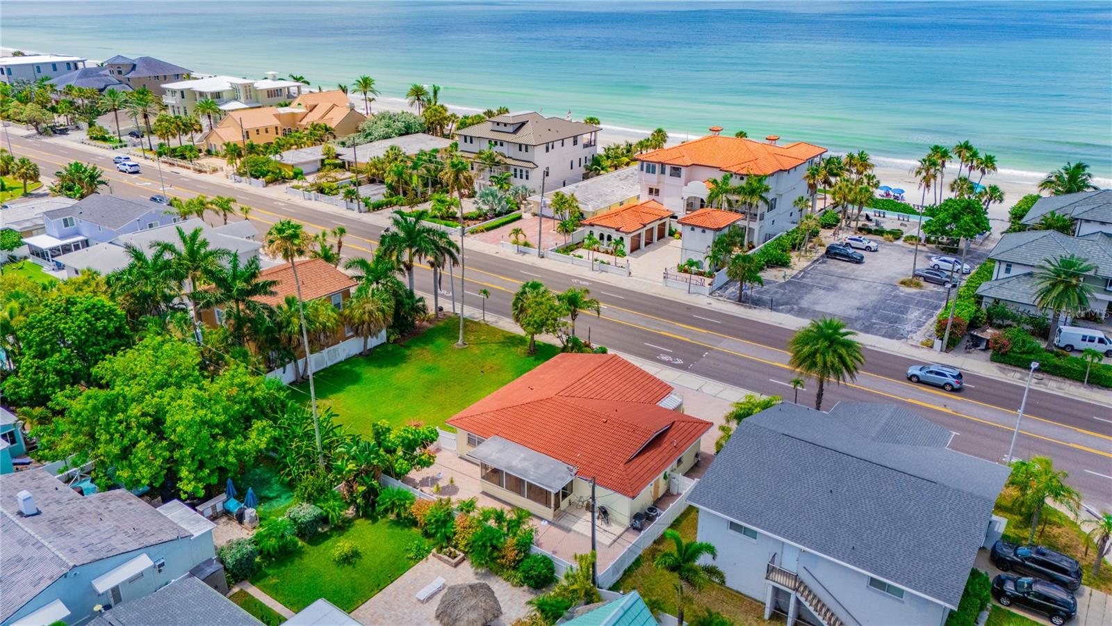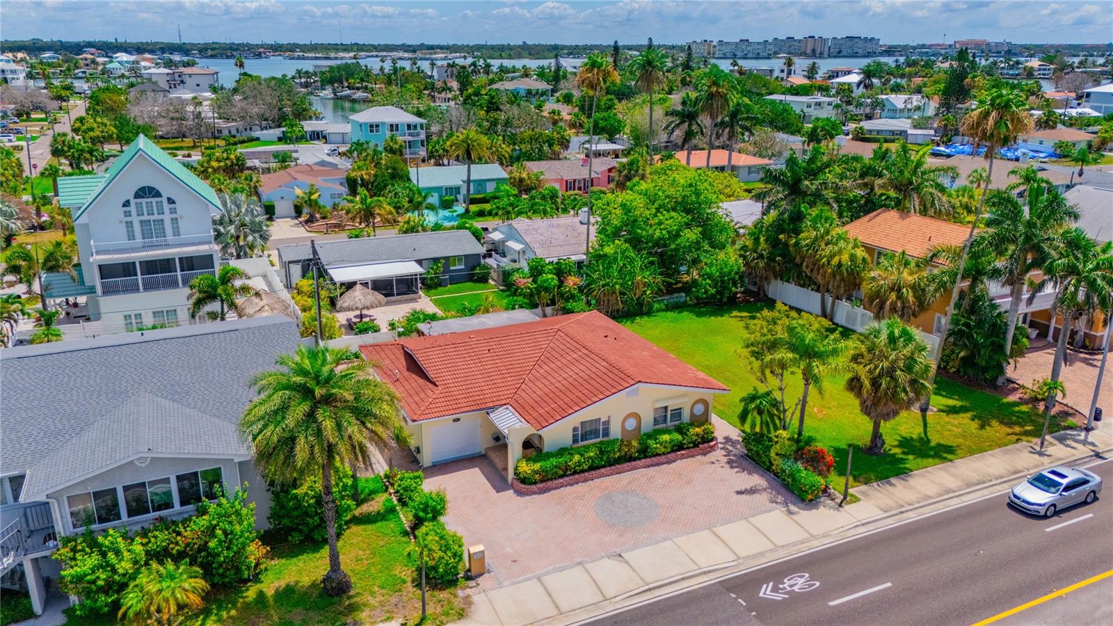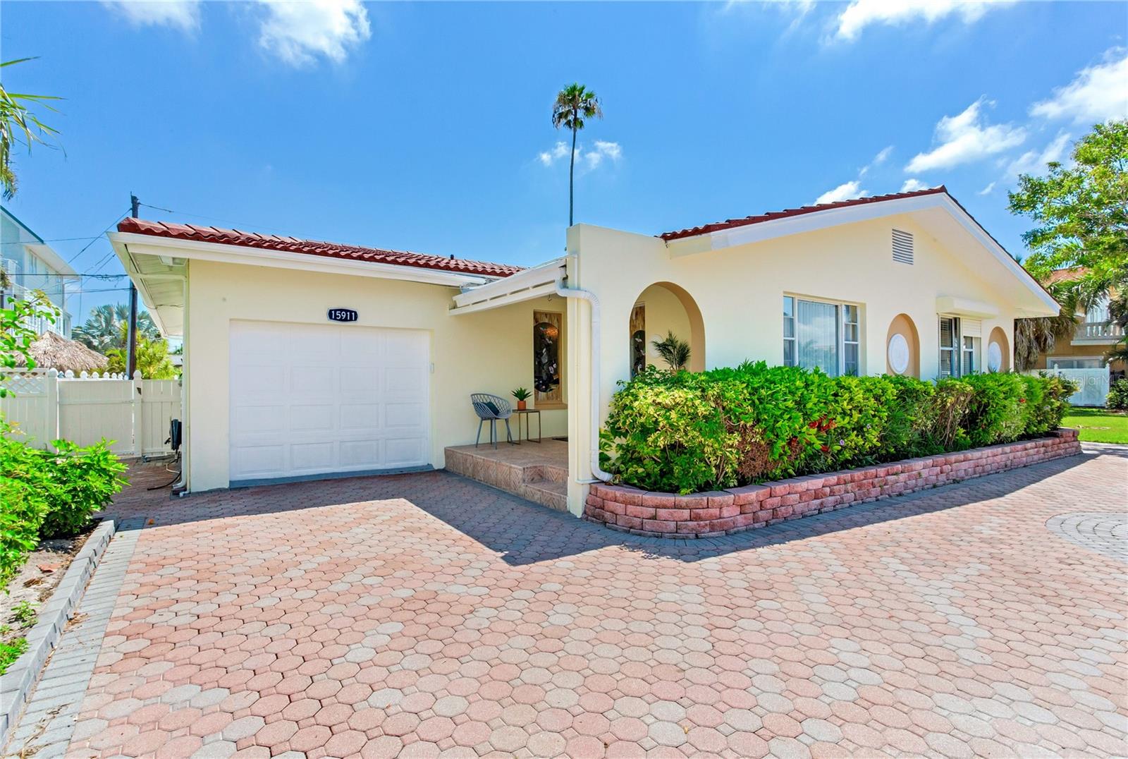 VACATION GETAWAYS OR YEAR-ROUND OCCUPANCY BEACH VIEWS 2 BEDROOM 2 BATHROOMS STEPS FROM THE BEACH. This 2 bedroom, 2 bathroom, 1612 sqft home is perfect for your weekend getaway or a smart investment. As you step inside, you are greeted by the soothing sound of waves crashing on the beach. The home is bathed in natural light, welcoming you into a spacious formal sitting area featuring a large picture window, perfect for enjoying stunning sunsets. The open floor plan is ideal for entertaining, with a kitchen that boasts ample storage and counter space, wood cabinets, and granite countertops, perfect for the family chef. The family room, situated at the back of the home, seamlessly connects to the kitchen, dining, and formal living areas, enhancing the open feel. The Primary Bedroom is a true oasis, offering water views and a beautiful en suite bathroom. It is generously sized, providing a peaceful retreat. The guest bedroom, located at the back of the home, offers privacy and access to a guest bathroom, making it ideal for visitors. Step out from the family room onto a nicely sized lanai, perfect for enjoying your morning coffee. The backyard is designed with pavers throughout, minimizing maintenance. Equipped with a oversized one car garage. This home is incredibly convenient to the beach – just a walk across the street and you're there! Experience the beach lifestyle in Redington Beach. Close to shopping and restaurants, this home is a gem that won't last long. Schedule your showing today!